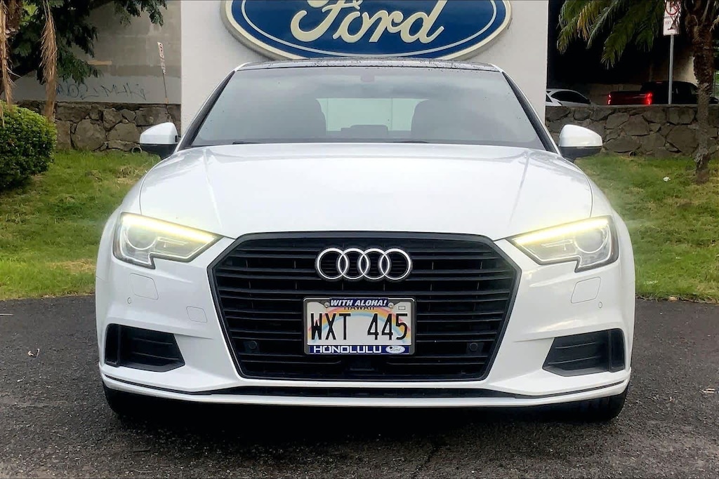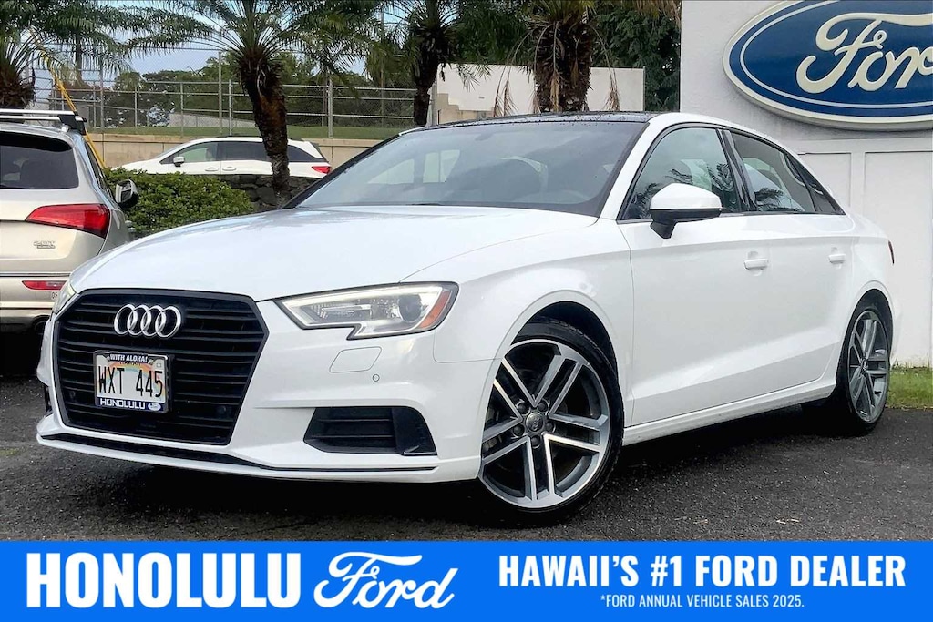 HONOLULU FORD! 808-532-1700, *DONT WAIT! CALL NOW!!, FINANCING AVAILABLE, GUARANTEED APPROVALS! LOW PAYMENTS! GREAT INTEREST RATES!, WE SHIP TO NEIGHBOR ISLANDS!, 172 POINT INSPECTION BY FACTORY TRAINED TECHNICIANS!, APPLE CAR PLAY/ANDROID AUTO, BLUETOOTH HANDS FREE CALLING, ACCIDENT FREE CARFAX!, *PANORAMIC ROOF, *LEATHER SEATS*, SUNROOF/MOONROOF, BACK-UP CAMERA, 360 SURROUND VISION CAMERA, WELL TAKEN CARE OF, PREMIUM WHEELS, NAVIGATION SYSTEM, BLIND SPOT MONITOR, READY FOR YOU TO DRIVE HOME TODAY!, Ford Blue Advantage: Blue Certified Certified, Black Leather, 10 Speakers, 4-Wheel Disc Brakes, ABS brakes, Air Conditioning, Alloy wheels, AM/FM radio: SiriusXM, Anti-whiplash front head restraints, Audi Parking System Plus, Audi Side Assist, Audi smartphone interface (Apple CarPlay/Android Auto), Automatic temperature control, Brake assist, Bumpers: body-color, Cargo Net, CD player, Delay-off headlights, Driver door bin, Driver vanity mirror, Dual front impact airbags, Dual front side impact airbags, Electronic Stability Control, Exterior Parking Camera Rear, Four wheel independent suspension, Front anti-roll bar, Front Bucket Seats, Front Center Armrest, Front dual zone A/C, Front reading lights, Heated door mirrors, Heated Front Bucket Seats, Heated front seats, High intensity discharge headlights: Xenon plus, Illuminated entry, Knee airbag, Leather Seating Surfaces, Leather Shift Knob, Leather steering wheel, Low tire pressure warning, Occupant sensing airbag, Outside temperature display, Overhead airbag, Panic alarm, Passenger door bin, Passenger vanity mirror, Power door mirrors, Power driver seat, Power moonroof, Power steering, Power windows, Radio data system, Radio: Audi Concert AM/FM/CD/SAT Player, Rain sensing wipers, Rear anti-roll bar, Rear fog lights, Rear reading lights, Rear seat center armrest, Rear window defroster, Remote keyless entry, Security system, Side & Rear Cross Traffic Assist Package, Speed control, Speed-sensing steering, Speed-Sensitive Wipers, Split folding rear seat, Sport Chassis, Steering wheel mounted audio controls, Tachometer, Telescoping steering wheel, Tilt steering wheel, Traction control, Trip computer, Turn signal indicator mirrors, Variably intermittent wipers, Wheels: 18 x 8 5-Double-Spoke-Design Bi-Color, Black Leather. Recent Arrival! Clean CARFAX. Certified. Glacier White 2020 Audi A3 2.0T Premium FrontTrak FrontTrak 7-Speed Automatic S tronic 2.0L 4-Cylinder TFSI