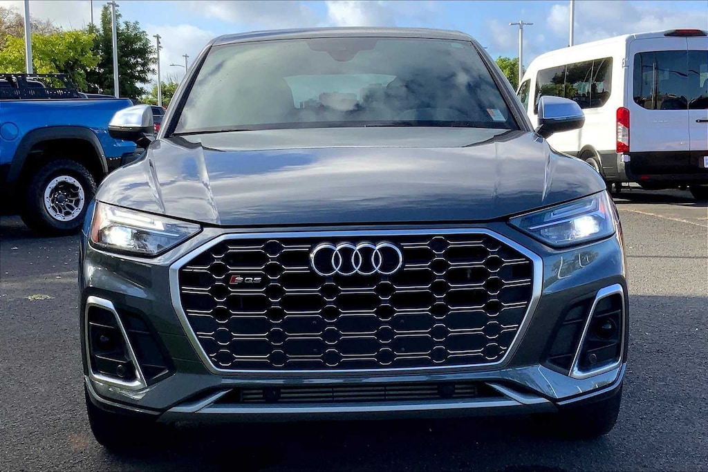 HONOLULU FORD! 808-532-1700, *DONT WAIT! CALL NOW!!, FINANCING AVAILABLE, GUARANTEED APPROVALS! LOW PAYMENTS! GREAT INTEREST RATES!, ***FORD CERTIFIED VEHICLE!! 172 POINT INSPECTION, OIL CHANGE, NEW WIPERS, NEW AIR FILTERS, FULL DET, WE SHIP TO NEIGHBOR ISLANDS!, 172 POINT INSPECTION BY FACTORY TRAINED TECHNICIANS!, STATE SAFETY INSPECTION COMPLETE!, APPLE CAR PLAY/ANDROID AUTO, BLUETOOTH HANDS FREE CALLING, ACCIDENT FREE CARFAX!, *LEATHER SEATS*, *HEATED SEATS, SUNROOF/MOONROOF, BACK-UP CAMERA, EXTRA CLEAN, WELL TAKEN CARE OF, EXCELLENT FUEL ECONOMY, PREMIUM WHEELS, EXCELLENT CONDITION!, EXCELLENT SERVICE HISTORY!!, NAVIGATION SYSTEM, BLIND SPOT MONITOR, PARKING SENSORS, UPGRADED WHEELS, TOUCH SCREEN, Ford Blue Advantage: Blue Certified Certified, 10 Speakers, 3.204 Axle Ratio, 4-Wheel Disc Brakes, ABS brakes, Adaptive suspension, Air Conditioning, Alloy wheels, AM/FM radio, AM/FM Stereo, Auto High-beam Headlights, Auto-dimming Rear-View mirror, Automatic temperature control, Brake assist, Bumpers: body-color, Compass, Delay-off headlights, Driver door bin, Driver vanity mirror, Dual front impact airbags, Dual front side impact airbags, Electronic Stability Control, Emergency communication system: Audi connect CARE, Exterior Parking Camera Rear, Four wheel independent suspension, Front anti-roll bar, Front Bucket Seats, Front Center Armrest, Front dual zone A/C, Front fog lights, Front reading lights, Garage door transmitter: HomeLink, Heated door mirrors, Heated front seats, Heated Front Sport Seats, Illuminated entry, Leather Shift Knob, Leather/Dinamica Seating Surfaces, Low tire pressure warning, Occupant sensing airbag, Outside temperature display, Overhead airbag, Overhead console, Panic alarm, Passenger door bin, Passenger vanity mirror, Power door mirrors, Power driver seat, Power Liftgate, Power passenger seat, Power steering, Power windows, Radio data system, Rain sensing wipers, Rear air conditioning, Rear anti-roll bar, Rear fog lights, Rear reading lights, Rear seat center armrest, Rear window defroster, Rear window wiper, Remote keyless entry, Security system, Speed control, Speed-sensing steering, Speed-Sensitive Wipers, Split folding rear seat, Spoiler, Sport steering wheel, Steering wheel mounted audio controls, Tachometer, Telescoping steering wheel, Tilt steering wheel, Traction control, Trip computer, Turn signal indicator mirrors, Variably intermittent wipers, Wheels: 20 10-Spoke-Star Design. Clean CARFAX. Certified. Daytona Gray Pearl Effect 2022 Audi SQ5 Sportback Premium quattro quattro 8-Speed Automatic with Tiptronic 3.0L TFSI