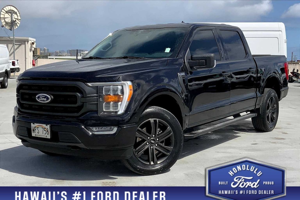 HONOLULU FORD! 808-532-1700, *DONT WAIT! CALL NOW!!, FINANCING AVAILABLE, GUARANTEED APPROVALS! LOW PAYMENTS! GREAT INTEREST RATES!, ***FORD CERTIFIED VEHICLE!! 172 POINT INSPECTION, OIL CHANGE, NEW WIPERS, NEW AIR FILTERS, FULL DET, WE SHIP TO NEIGHBOR ISLANDS!, STATE SAFETY INSPECTION COMPLETE!, APPLE CAR PLAY/ANDROID AUTO, BLUETOOTH HANDS FREE CALLING, ONE OWNER!!, ACCIDENT FREE CARFAX!, BACK-UP CAMERA, 360 SURROUND VISION CAMERA, WELL TAKEN CARE OF, PREMIUM WHEELS, REMOTE START, BLIND SPOT MONITOR, READY FOR YOU TO DRIVE HOME TODAY!, Ford Blue Certified Certified, 4WD, 10-Way Power Driver & Passenger Seats, 2-Bar Style Grille w/Chrome 2 Minor Bars, 3.31 Axle Ratio, 4-Wheel Disc Brakes, 6 Speakers, 8 Productivity Screen in Instrument Cluster, ABS brakes, Accent-Color Step Bars, Air Conditioning, Alloy wheels, AM/FM radio, Auto High-beam Headlights, Auto-Dimming Rear-View Mirror, Black 2-Bar Style Grille w/Black Surround/Accents, Body-Color Door & Tailgate Handles, Body-Color Front & Rear Bumpers, Box Side Decals, Brake assist, Bumpers: chrome, Chrome Door & Tailgate Handles w/Body-Color Bezel, Chrome Single-Tip Exhaust, Chrome Step Bars, Class IV Trailer Hitch Receiver, Cloth 40/20/40 Front Seat, Compass, Connected Built-In Navigation, Delay-off headlights, Driver door bin, Driver vanity mirror, Dual front impact airbags, Dual front side impact airbags, Dual Zone Automatic Temperature Control, Electronic Locking w/3.55 Axle Ratio, Electronic Stability Control, Emergency communication system: SYNC 4 911 Assist, Equipment Group 302A High, Extended Range 36 Gallon Fuel Tank, Exterior Parking Camera Rear, Front anti-roll bar, Front Center Armrest w/Storage, Front fog lights, Front reading lights, Front wheel independent suspension, Fully automatic headlights, Heated door mirrors, Heated Front Seats, Illuminated entry, Integrated Trailer Brake Controller, Intelligent Access w/Push Button Start, Interior Work Surface, Leather-Wrapped Steering Wheel, LED Box Lighting w/Zone Lighting, LED Reflector Headlamps, LED Sideview Mirror Spotlights, Low tire pressure warning, Occupant sensing airbag, Onboard 400W Outlet, Outside temperature display, Overhead airbag, Overhead console, Panic alarm, Passenger door bin, Passenger vanity mirror, Power door mirrors, Power Glass Heated Sideview Mirrors, Power steering, Power windows, Power-Sliding Rear Window, Pro Trailer Backup Assist, Radio data system, Radio: AM/FM SiriusXM w/360L, Radio: AM/FM Stereo w/6 Speakers, Rear reading lights, Rear step bumper, Rear Under-Seat Storage, Rear window defroster, Remote keyless entry, Remote Start System w/Remote Tailgate Release, SecuriCode Drivers Side Keyless-Entry Keypad, Security system, Speed control, Speed-sensing steering, Split folding rear seat, Steering wheel mounted audio controls, SYNC 4, SYNC 4 w/Enhanced Voice Recognition, Tachometer, Telescoping steering wheel, Tilt steering wheel, Traction control, Trailer Tow Package, Trip computer, Unique Sport Cloth 40/Console/40 Front-Seats, Variably intermittent wipers, Voltmeter, Wheels: 17 Silver Painted Aluminum, Wheels: 18 6-Spoke Machined Aluminum, Wheels: 18 Chrome-Like PVD, Wheels: 20 6-Spoke Dark Alloy Painted Aluminum, XLT Chrome Appearance Package, XLT Sport Appearance Package, 4WD. Recent Arrival! CARFAX One-Owner. Certified. Agate Black Metallic 2021 Ford F-150 XLT 4WD 10-Speed Automatic 3.5L V6 EcoBoost