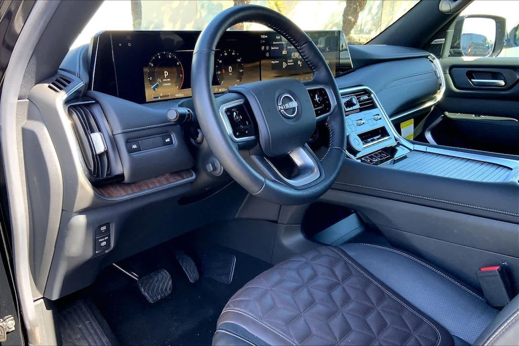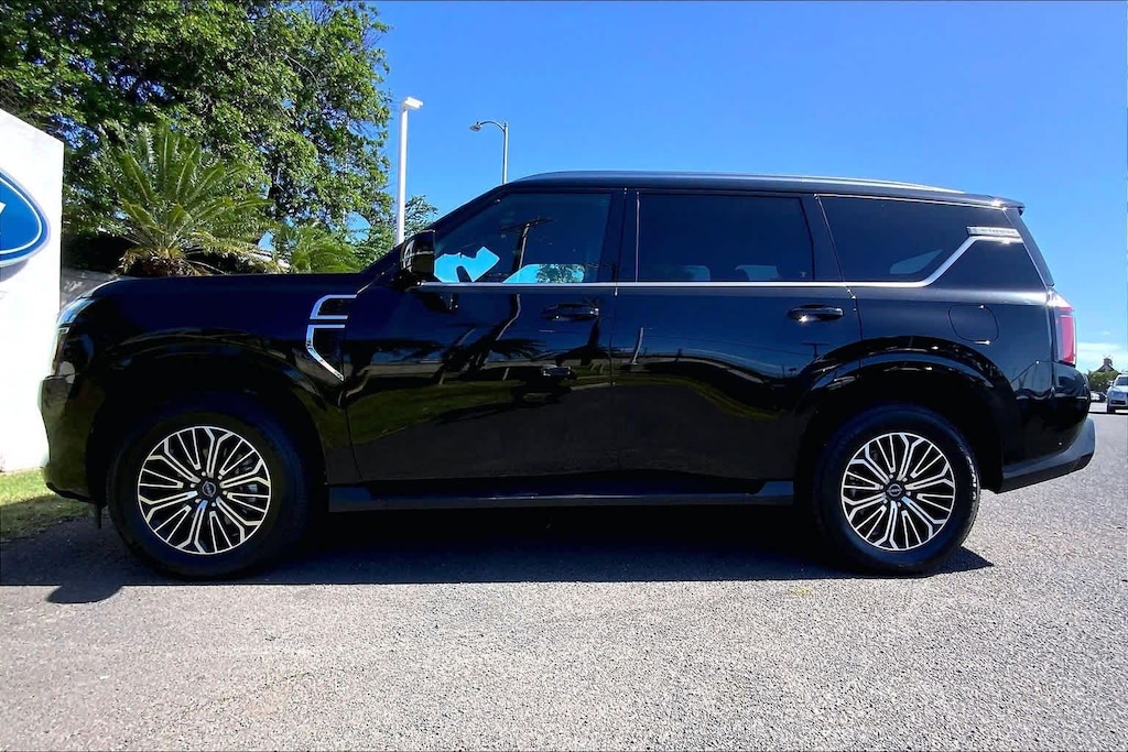 HONOLULU FORD! 808-532-1700, RARE FIND!! SAVE THOUSANDS!!! *DONT WAIT! CALL NOW!!, FINANCING AVAILABLE, GUARANTEED APPROVALS! LOW PAYMENTS! GREAT INTEREST RATES!, WE SHIP TO NEIGHBOR ISLANDS!, STATE SAFETY INSPECTION COMPLETE!, APPLE CAR PLAY/ANDROID AUTO, BLUETOOTH HANDS FREE CALLING, ONE OWNER!!, ACCIDENT FREE CARFAX!, *DRIVER AWARENESS PACKAGE*, *PANORAMIC ROOF, *LEATHER SEATS*, *HEATED SEATS, *VENTILATED/AC/COOLED SEATS, BACK-UP CAMERA, 360 SURROUND VISION CAMERA, EXTRA CLEAN, WELL TAKEN CARE OF, PREMIUM WHEELS, NAVIGATION SYSTEM, THIRD ROW SEATING, BLIND SPOT MONITOR, ADAPTIVE CRUISE CONTROL, PARKING SENSORS, TOUCH SCREEN, Ford Blue Advantage: Blue Certified Certified, 4WD, 12 Speakers, 20 Painted Alloy Wheels, 3rd row seats: split-bench, 4-Wheel Disc Brakes, ABS brakes, Air Conditioning, Alloy wheels, AM/FM radio: SiriusXM, Anti-whiplash front head restraints, Auto High-beam Headlights, Auto tilt-away steering wheel, Auto-dimming door mirrors, Auto-dimming Rear-View mirror, Auto-leveling suspension, Automatic temperature control, Brake assist, Bumpers: body-color, Carpeted Floor Mats - Captain Chairs, Climate Controlled Heated & Ventilated Front Seats, Delay-off headlights, Driver door bin, Driver vanity mirror, Dual front impact airbags, Dual front side impact airbags, Electronic Stability Control, Emergency communication system: NissanConnect Services, Four wheel independent suspension, Front anti-roll bar, Front Bucket Seats, Front Center Armrest, Front dual zone A/C, Front fog lights, Front reading lights, Fully automatic headlights, Garage door transmitter: myQ Connected Garage, Genuine wood dashboard insert, Heated door mirrors, Heated front seats, Heated rear seats, Heated steering wheel, HVAC memory, Illuminated entry, Knee airbag, Leather steering wheel, Low tire pressure warning, Memory seat, Navigation System, Occupant sensing airbag, Outside temperature display, Overhead airbag, Overhead console, Panic alarm, Passenger door bin, Passenger vanity mirror, Power door mirrors, Power driver seat, Power Liftgate, Power moonroof, Power passenger seat, Power steering, Power windows, Quilted Leather Seat Trim, Radio: NissanConnect w/SiriusXM 360L, Rain sensing wipers, Rear air conditioning, Rear anti-roll bar, Rear reading lights, Rear window defroster, Rear window wiper, Reclining 3rd row seat, Remote keyless entry, Security system, Speed control, Speed-sensing steering, Speed-Sensitive Wipers, Split folding rear seat, Spoiler, Steering wheel memory, Steering wheel mounted audio controls, Tachometer, Telescoping steering wheel, Tilt steering wheel, Traction control, Trip computer, Turn signal indicator mirrors, Variably intermittent wipers, Ventilated front seats, Voltmeter, 4WD. Recent Arrival! CARFAX One-Owner. Certified. Super Black 2025 Nissan Armada Platinum 4WD 9-Speed Automatic 3.5L DOHC