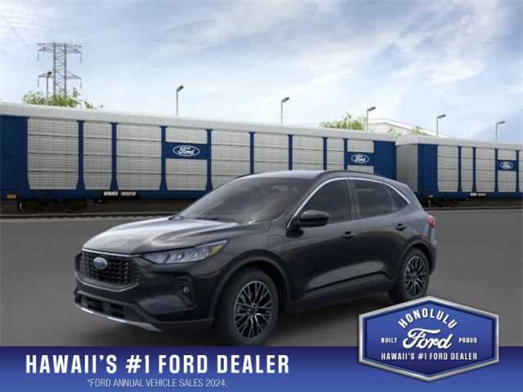 Agate Black Metallic 2025 Ford Escape Plug-In Hybrid FWD eCVT 2.5L iVCT 2.5L iVCT, eCVT, 2.91 Axle Ratio, 4-Wheel Disc Brakes, 6 Speakers, ABS brakes, Air Conditioning, Alloy wheels, AM/FM radio: SiriusXM, AM/FM Stereo, Auto High-beam Headlights, Automatic temperature control, Brake assist, Bumpers: body-color, Class II Trailer Tow Package, Compass, Delay-off headlights, Driver door bin, Driver vanity mirror, Dual front impact airbags, Dual front side impact airbags, Electronic Stability Control, Emergency communication system: SYNC 4 911 Assist, Equipment Group 700A, FordPass Connect, Four wheel independent suspension, Front anti-roll bar, Front Bucket Seats, Front Center Armrest, Front dual zone A/C, Front fog lights, Front License Plate Bracket, Front reading lights, Fully automatic headlights, Heated door mirrors, Heated front seats, Heated steering wheel, Heated Vinyl/Cloth Front Sport Contour Bucket Seats, Illuminated entry, Knee airbag, Low tire pressure warning, Navigation system: Connected Navigation, Occupant sensing airbag, Outside temperature display, Overhead airbag, Overhead console, Panic alarm, Passenger door bin, Passenger vanity mirror, Power door mirrors, Power driver seat, Power Liftgate, Power steering, Power windows, Radio data system, Rear anti-roll bar, Rear reading lights, Rear seat center armrest, Rear window defroster, Rear window wiper, Remote keyless entry, Speed control, Speed-sensing steering, Speed-Sensitive Wipers, Split folding rear seat, Spoiler, Steering wheel mounted audio controls, SYNC 4 w/Enhanced Voice Recognition, Telescoping steering wheel, Tilt steering wheel, Traction control, Trip computer, Variably intermittent wipers, Wheels: 18 Machined-Face Magnetic Aluminum, 2.5L iVCT, eCVT.