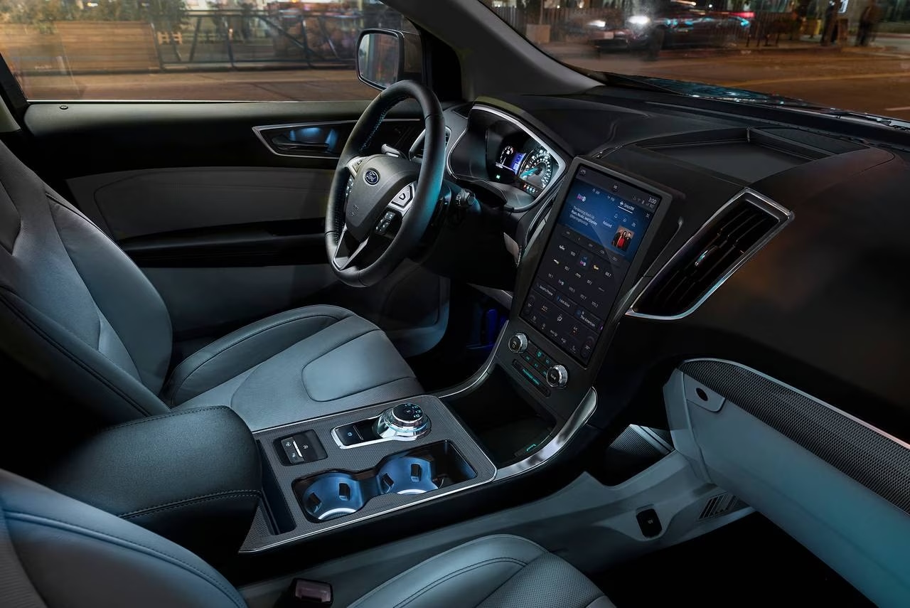 When it comes to loading up your vehicle and hitting the road, the Ford Edge® delivers five-passenger seating and up to 39.2 cubic feet of cargo space behind the rear row to help you accomplish your goals. Depending on the trims, drivers can opt for various upholstery options ranging from plush cloth or ActiveX™ seating material to soothing leather-trimmed seating. Plus, ST models come with bolstered Captain's Chairs to provide additional support around tight corners for an engaging experience.