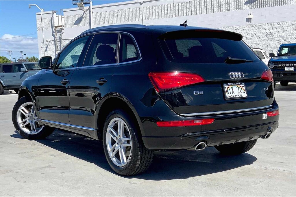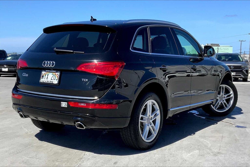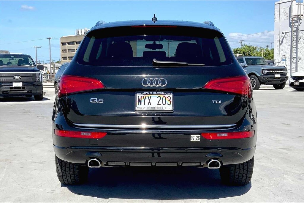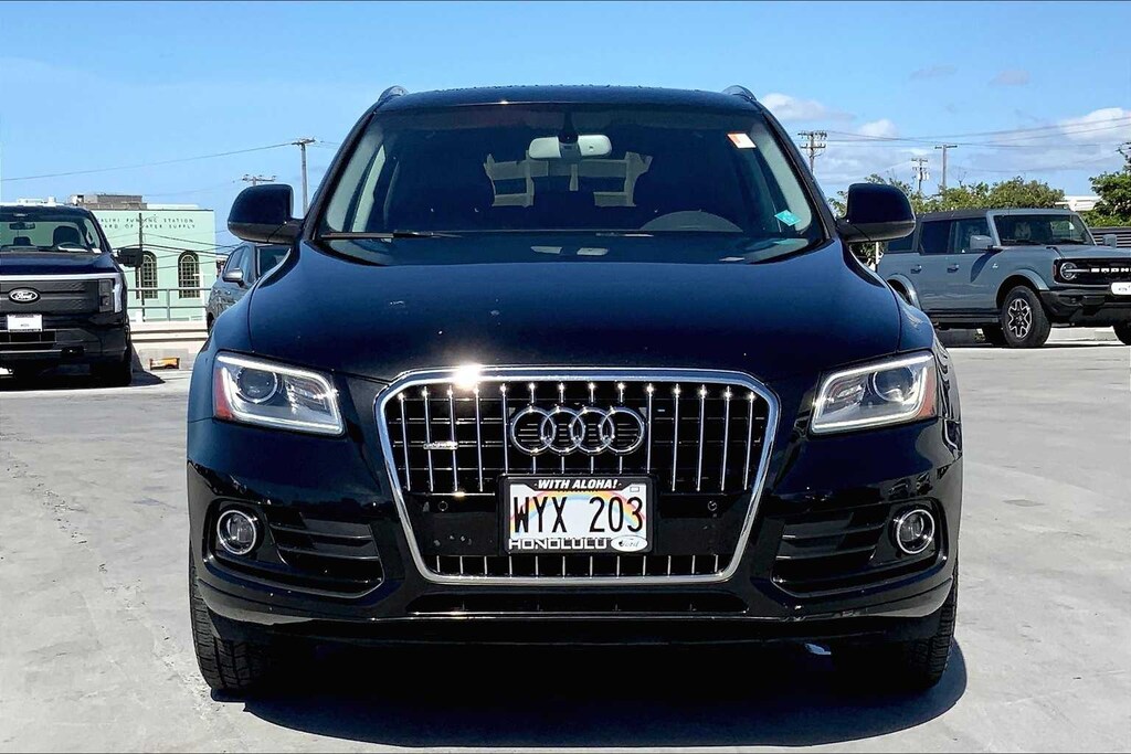 HONOLULU FORD! 808-532-1700, *DONT WAIT! CALL NOW!!, FINANCING AVAILABLE, GUARANTEED APPROVALS! LOW PAYMENTS! GREAT INTEREST RATES!, WE SHIP TO NEIGHBOR ISLANDS!, 172 POINT INSPECTION BY FACTORY TRAINED TECHNICIANS!, STATE SAFETY INSPECTION COMPLETE!, BLUETOOTH HANDS FREE CALLING, EXTRA CLEAN, WELL TAKEN CARE OF, PREMIUM WHEELS, AS-IS, WHOLESALE TO THE PUBLIC! MECHANICS SPECIAL!, EXCELLENT CONDITION!, EXCELLENT SERVICE HISTORY!!, ADAPTIVE CRUISE CONTROL, PARKING SENSORS, UPGRADED WHEELS, TOUCH SCREEN, Black Leather, 10 Speakers, 3.07 Axle Ratio, 4-Wheel Disc Brakes, ABS brakes, Air Conditioning, Alloy wheels, Aluminum Satellite Decorative Inlays, AM/FM radio, Audi Connect w/Online Services, Audi Guard Protection Kit, Audi Parking System Plus w/Rear View Camera, Audi Side Assist, Auto-dimming door mirrors, Auto-dimming Rear-View mirror, Automatic temperature control, Brake assist, Bumpers: body-color, Cargo Net, CD player, Color Driver Information System w/Trip Computer, Compass, Delay-off headlights, Driver door bin, Driver vanity mirror, Dual front impact airbags, Dual front side impact airbags, Electronic Stability Control, Four wheel independent suspension, Front anti-roll bar, Front Bucket Seats, Front Center Armrest, Front dual zone A/C, Front fog lights, Front reading lights, Garage door transmitter: HomeLink, Genuine wood console insert, Genuine wood dashboard insert, Genuine wood door panel insert, Heated door mirrors, Heated front seats, High intensity discharge headlights: Bi-xenon, Illuminated entry, Leather Seating Surfaces, Leather Shift Knob, Leather steering wheel, Low tire pressure warning, Memory seat, Occupant sensing airbag, Outside temperature display, Overhead airbag, Overhead console, Panic alarm, Passenger door bin, Passenger vanity mirror, Power door mirrors, Power driver seat, Power Front Heated Bucket Seats, Power Liftgate, Power moonroof, Power passenger seat, Power steering, Power windows, Radio data system, Radio: Audi MMI Navigation Plus System, Radio: Audi MMI Plus System w/6.5 Color Screen, Rain sensing wipers, Rear air conditioning, Rear anti-roll bar, Rear fog lights, Rear reading lights, Rear seat center armrest, Rear window defroster, Rear window wiper, Remote keyless entry, Roof rack, Security system, Speed control, Speed-sensing steering, Speed-Sensitive Wipers, Split folding rear seat, Spoiler, Steering wheel mounted audio controls, Tachometer, Technology Package, Telescoping steering wheel, Tilt steering wheel, Traction control, Trip computer, Turn signal indicator mirrors, Variably intermittent wipers, Wheels: 8.0J x 19 5-Arm Star Design, Black Leather. Recent Arrival! Black Metallic 2015 Audi Q5 3.0T Premium Plus quattro quattro 8-Speed Automatic with Tiptronic 3.0L V6 TDI Diesel Turbocharged DOHC 24V ULEV II 240hp