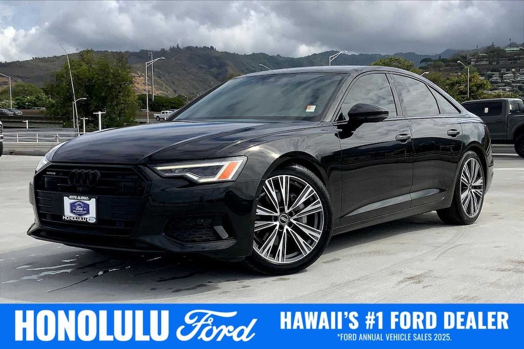 HONOLULU FORD! 808-532-1700, *DONT WAIT! CALL NOW!!, FINANCING AVAILABLE, GUARANTEED APPROVALS! LOW PAYMENTS! GREAT INTEREST RATES!, ***FORD CERTIFIED VEHICLE!! 172 POINT INSPECTION, OIL CHANGE, NEW WIPERS, NEW AIR FILTERS, FULL DET, WE SHIP TO NEIGHBOR ISLANDS!, 172 POINT INSPECTION BY FACTORY TRAINED TECHNICIANS!, STATE SAFETY INSPECTION COMPLETE!, APPLE CAR PLAY/ANDROID AUTO, ONE OWNER!!, ACCIDENT FREE CARFAX!, BACK-UP CAMERA, EXTRA CLEAN, WELL TAKEN CARE OF, EXCELLENT FUEL ECONOMY, EXCELLENT CONDITION!, EXCELLENT SERVICE HISTORY!!, BLIND SPOT MONITOR, READY FOR YOU TO DRIVE HOME TODAY!, PARKING SENSORS, UPGRADED WHEELS, TOUCH SCREEN, quattro, Black w/Leather Seating Surfaces, 10 Speakers, 4-Wheel Disc Brakes, ABS brakes, Air Conditioning, Alloy wheels, AM/FM radio: SiriusXM, Auto High-beam Headlights, Auto tilt-away steering wheel, Auto-dimming door mirrors, Auto-dimming Rear-View mirror, Automatic temperature control, Brake assist, Bumpers: body-color, Compass, Delay-off headlights, Driver door bin, Driver vanity mirror, Dual front impact airbags, Dual front side impact airbags, Electronic Stability Control, Emergency communication system: Audi connect CARE, Exterior Parking Camera Rear, Four wheel independent suspension, Front anti-roll bar, Front Bucket Seats, Front Center Armrest, Front dual zone A/C, Front fog lights, Front reading lights, Garage door transmitter: HomeLink, Genuine wood console insert, Genuine wood dashboard insert, Genuine wood door panel insert, Heated door mirrors, Heated Front Seats, Heated front seats, Illuminated entry, Knee airbag, Leather Seating Surfaces, Leather Shift Knob, Low tire pressure warning, Memory seat, Navigation system: MMI Navigation plus, Occupant sensing airbag, Outside temperature display, Overhead airbag, Overhead console, Panic alarm, Passenger door bin, Passenger vanity mirror, Power door mirrors, Power driver seat, Power moonroof, Power passenger seat, Power steering, Power windows, Radio data system, Radio: MMI Navigation Plus w/MMI Touch Response, Rain sensing wipers, Rear air conditioning, Rear anti-roll bar, Rear reading lights, Rear seat center armrest, Rear side impact airbag, Rear window defroster, Remote keyless entry, Security system, Speed control, Speed-sensing steering, Speed-Sensitive Wipers, Split folding rear seat, Steering wheel memory, Steering wheel mounted audio controls, Tachometer, Telescoping steering wheel, Tilt steering wheel, Traction control, Trip computer, Turn signal indicator mirrors, Variably intermittent wipers, Wheels: 19 Bi-Color 5-Double-Spoke-Design, quattro, Black w/Leather Seating Surfaces. Recent Arrival! CARFAX One-Owner. Clean CARFAX. Brilliant Black 2022 Audi A6 2.0T Premium Plus quattro quattro 7-Speed Automatic 2.0L 4-Cylinder TFSI