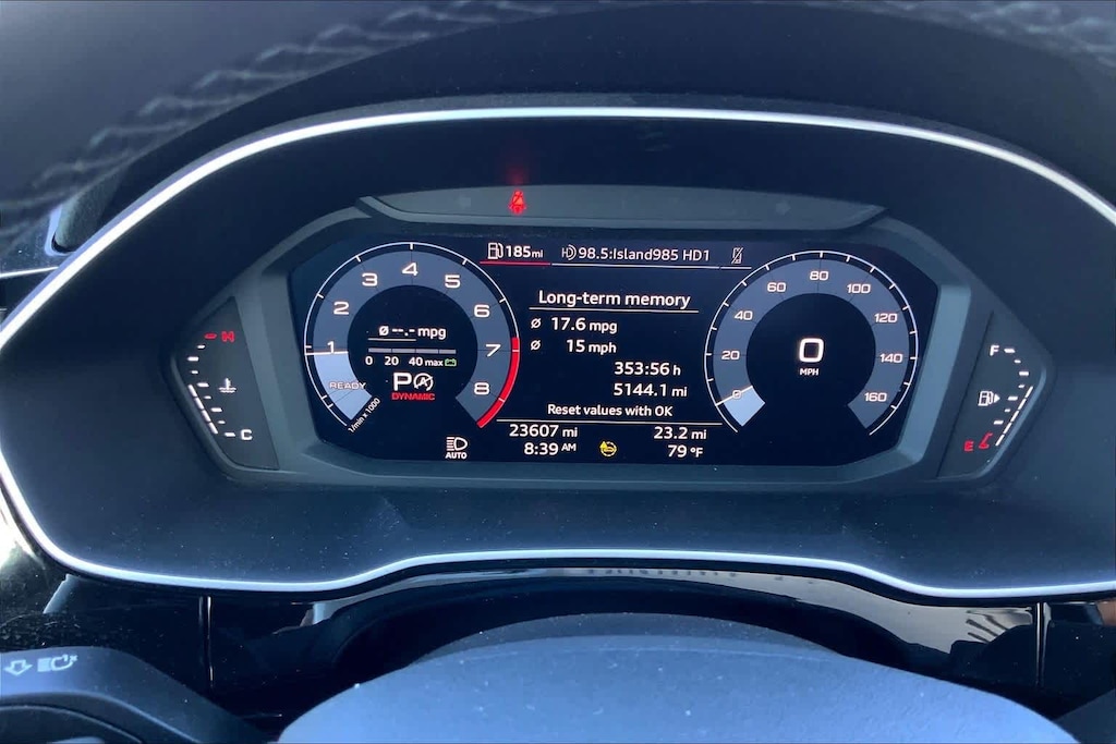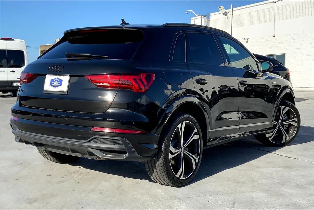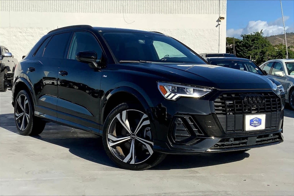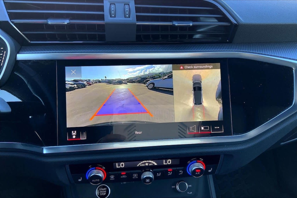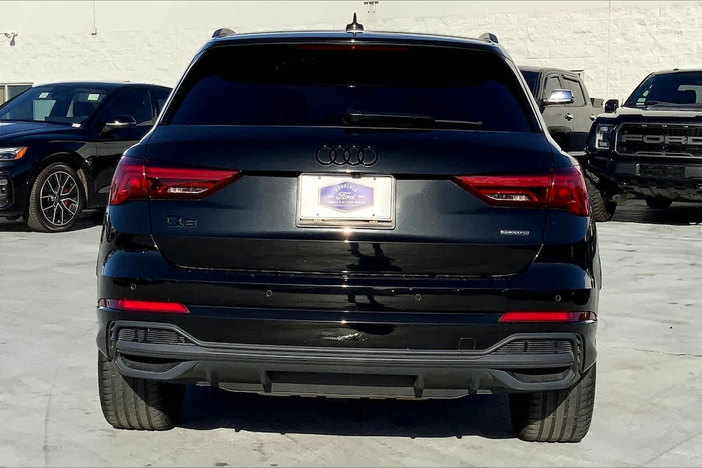10 Speakers, 20 Wheel Package, 3.533 Axle Ratio, 4-Wheel Disc Brakes, ABS brakes, Adaptive Cruise Assist w/Lane Guidance, Air Conditioning, Alarm w/Motion Sensor, Alloy wheels, AM/FM radio, Audi Advanced Key, Audi smartphone interface (Apple CarPlay/Android Auto), Auto High-beam Headlights, Auto-Dimming Power-Folding Exterior Mirrors, Automatic temperature control, Black Audi Rings & Badges, Black Optic Sport Package, Black Roof Rails, Brake assist, Brown Gray Natural Wood Inlay, Bumpers: body-color, Convenience Package, Delay-off headlights, Driver door bin, Driver Seat Memory, Driver vanity mirror, Dual front impact airbags, Dual front side impact airbags, Electronic Stability Control, Emergency communication system: Audi connect CARE, Exterior Parking Camera Rear, Four wheel independent suspension, Frameless Auto-Dimming Interior Mirror w/Compass, Front anti-roll bar, Front Bucket Seats, Front Center Armrest, Front dual zone A/C, Front fog lights, Front reading lights, Fully automatic headlights, Heated door mirrors, Heated Front Bucket Seats, Heated front seats, High-Gloss Black Exterior Elements, Illuminated entry, Knee airbag, Leather Seating Surfaces, Leather Shift Knob, Leather steering wheel, LED Interior Lighting Package, LED Interior Lighting Plus Package, Low tire pressure warning, Navigation System, Occupant sensing airbag, Outside temperature display, Overhead airbag, Overhead console, Panic alarm, Passenger door bin, Passenger vanity mirror, Power door mirrors, Power driver seat, Power Liftgate, Power moonroof: Panoramic, Power passenger seat, Power steering, Power windows, Premium Plus Package, Radio data system, Radio: Audi Sound System, Rain sensing wipers, Rear air conditioning, Rear anti-roll bar, Rear fog lights, Rear reading lights, Rear seat center armrest, Rear window defroster, Rear window wiper, Remote keyless entry, SiriusXM w/360L, Speed control, Speed-sensing steering, Split folding rear seat, Spoiler, Sport Front Seats, Stainless Steel Trunk Sill, Steering wheel mounted audio controls, Tachometer, Telescoping steering wheel, Tilt steering wheel, Top View Camera System, Traction control, Trip computer, Turn signal indicator mirrors, Variably intermittent wipers, Wheels: 18 5-V-Spoke-S Design, Wheels: 19 5-Double-Arm Design, Wheels: 20 5-Double-Spoke Rotor Design, Wireless Phone Charging Pad. Recent Arrival! Clean CARFAX. Black Metallic 2023 Audi Q3 Premium Plus S Line quattro quattro 8-Speed Automatic with Tiptronic 2.0L 4-Cylinder TFSI