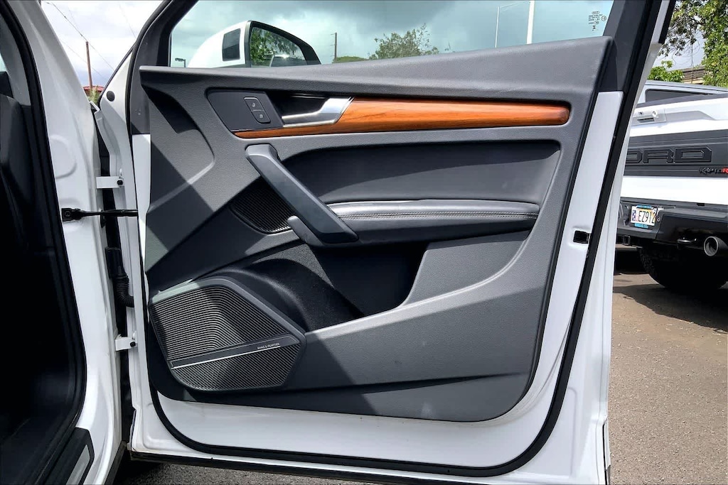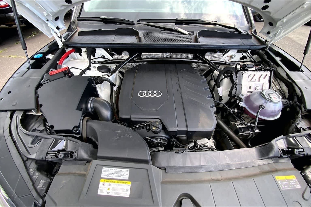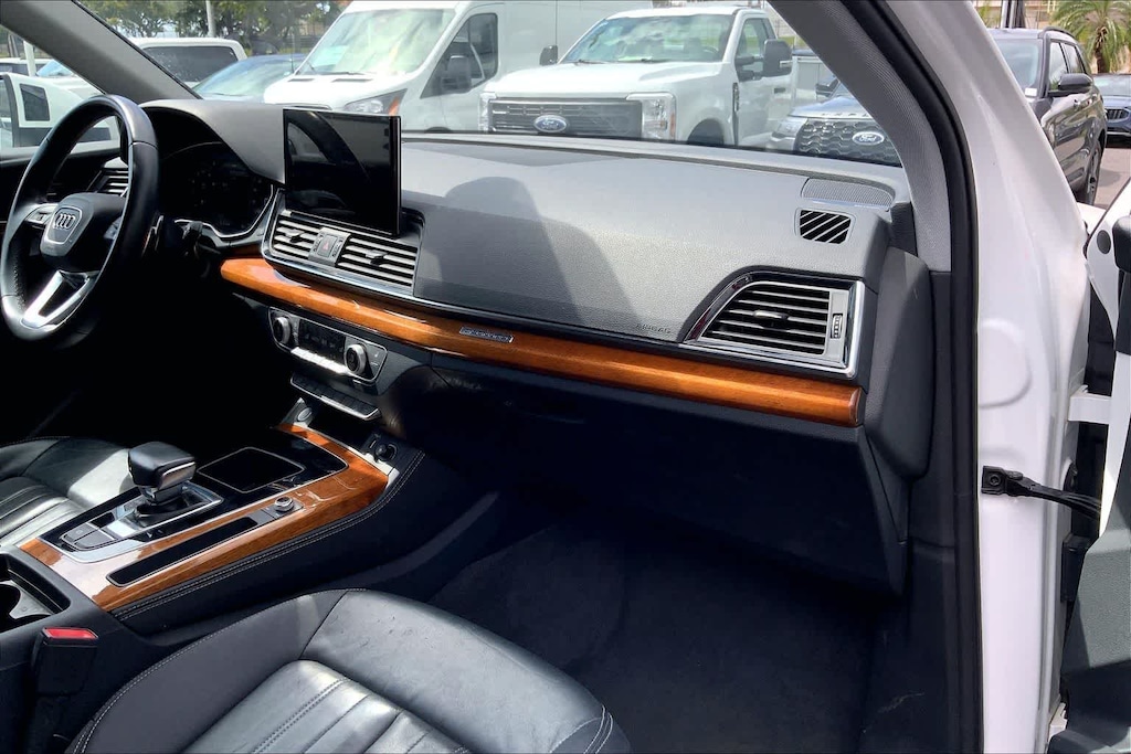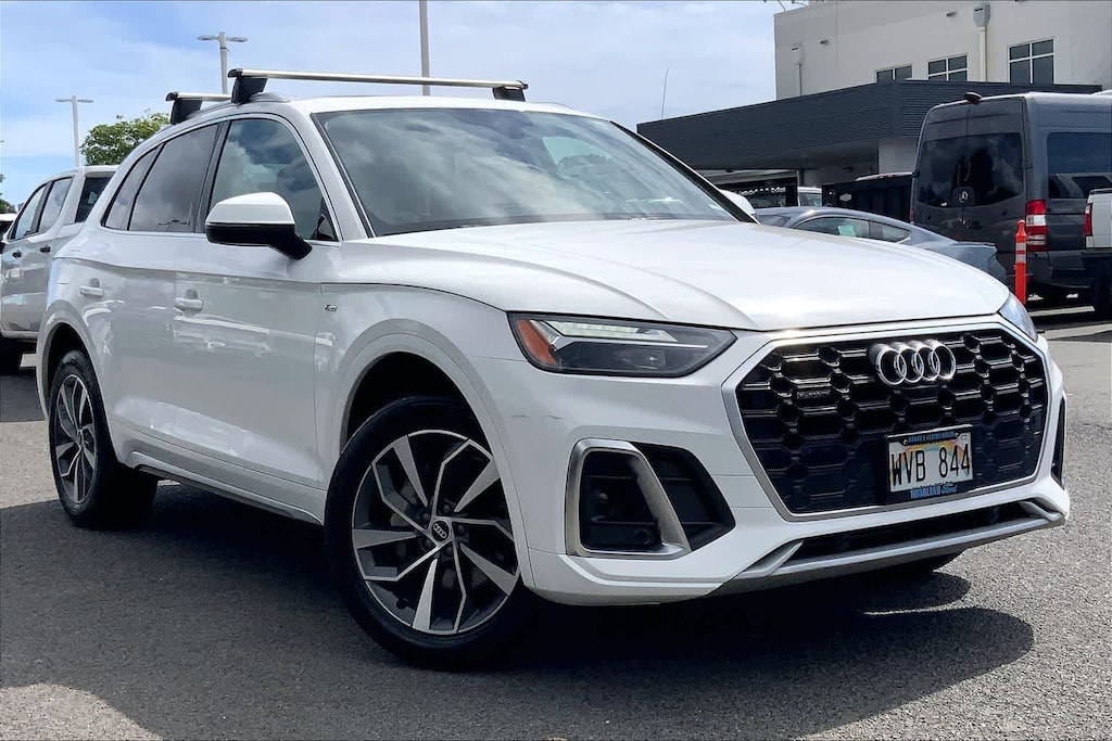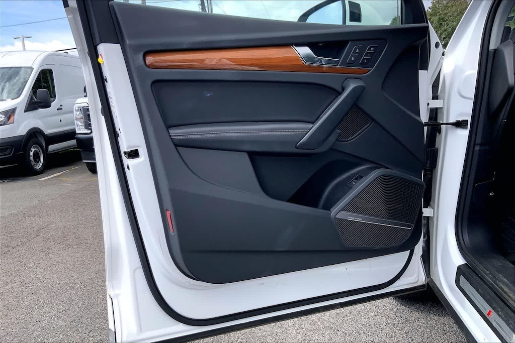 STATE SAFETY INSPECTION COMPLETE!, APPLE CAR PLAY/ANDROID AUTO, BLUETOOTH HANDS FREE CALLING, ONE OWNER!!, ACCIDENT FREE CARFAX!, *PANORAMIC ROOF, *LEATHER SEATS*, *HEATED SEATS, *VENTILATED/AC/COOLED SEATS, BACK-UP CAMERA, 360 SURROUND VISION CAMERA, EXTRA CLEAN, WELL TAKEN CARE OF, EXCELLENT FUEL ECONOMY, PREMIUM WHEELS, EXCELLENT CONDITION!, EXCELLENT SERVICE HISTORY!!, ADAPTIVE CRUISE CONTROL, PARKING SENSORS, UPGRADED WHEELS, TOUCH SCREEN, Black w/Leather Seating Surfaces, 10 Speakers, 4-Wheel Disc Brakes, 5.302 Axle Ratio, ABS brakes, Air Conditioning, Alloy wheels, AM/FM radio, Auto-dimming Rear-View mirror, Automatic temperature control, Brake assist, Bumpers: body-color, Compass, Delay-off headlights, Driver door bin, Driver vanity mirror, Dual front impact airbags, Dual front side impact airbags, Electronic Stability Control, Emergency communication system: Audi connect CARE, Exterior Parking Camera Rear, Four wheel independent suspension, Front anti-roll bar, Front Bucket Seats, Front Center Armrest, Front dual zone A/C, Front fog lights, Front reading lights, Garage door transmitter: HomeLink, Genuine wood console insert, Genuine wood dashboard insert, Genuine wood door panel insert, Heated 8-Way Power Front Bucket Seats, Heated door mirrors, Heated front seats, Illuminated entry, Leather Seating Surfaces, Leather Shift Knob, Low tire pressure warning, Occupant sensing airbag, Outside temperature display, Overhead airbag, Overhead console, Panic alarm, Passenger door bin, Passenger vanity mirror, Power door mirrors, Power driver seat, Power Liftgate, Power passenger seat, Power steering, Power windows, Radio data system, Radio: Audi Sound System, Rain sensing wipers, Rear air conditioning, Rear anti-roll bar, Rear fog lights, Rear reading lights, Rear seat center armrest, Rear window defroster, Rear window wiper, Remote keyless entry, Roof rack, Security system, Speed control, Speed-sensing steering, Speed-Sensitive Wipers, Split folding rear seat, Spoiler, Steering wheel mounted audio controls, Tachometer, Telescoping steering wheel, Tilt steering wheel, Traction control, Trip computer, Turn signal indicator mirrors, Variably intermittent wipers, Wheels: 18 5-Arm-Turbine Design, 4-Wheel Drive/All-Wheel Drive, Black w/Leather Seating Surfaces. Recent Arrival! CARFAX One-Owner. Clean CARFAX. Glacier White Metallic 2023 Audi Q5 45 S line Premium quattro quattro 7-Speed Automatic S tronic 2.0L Turbocharged