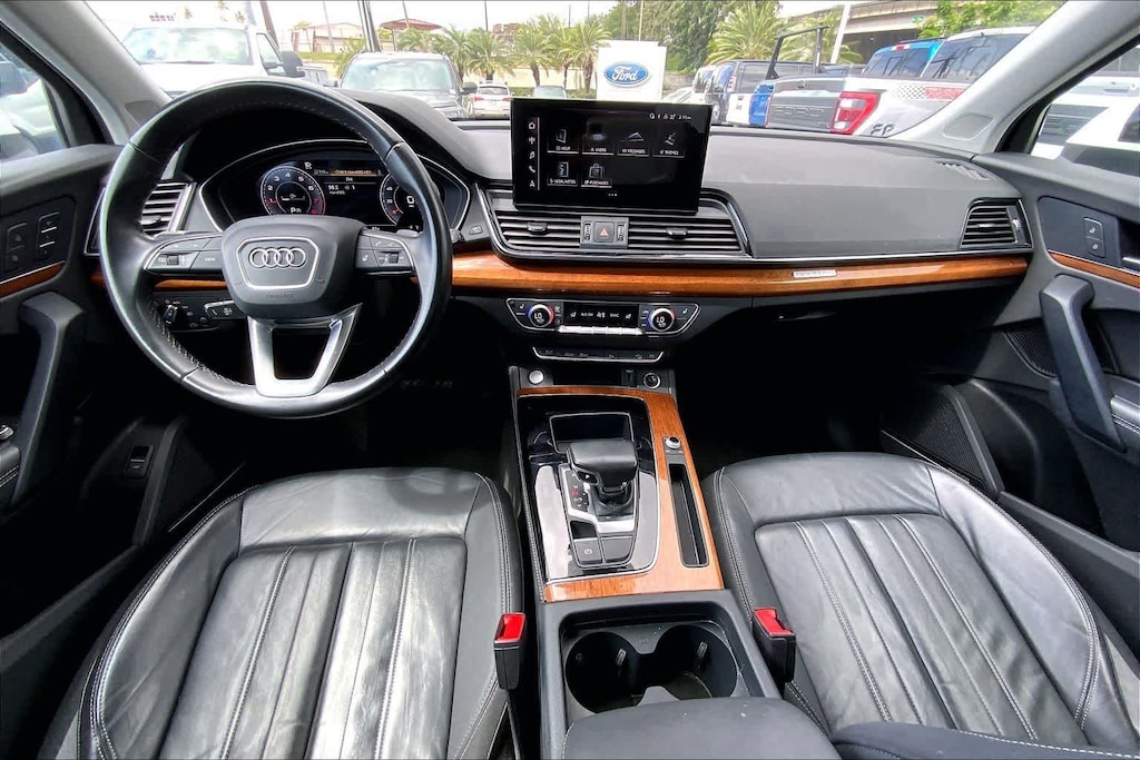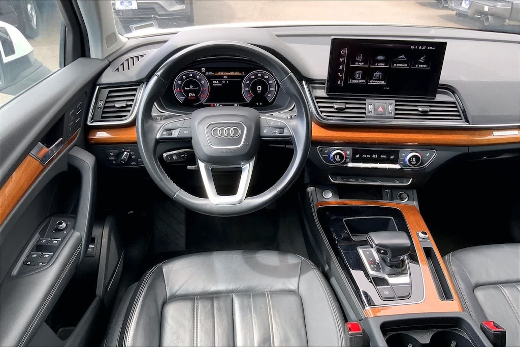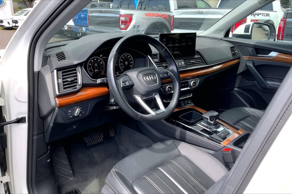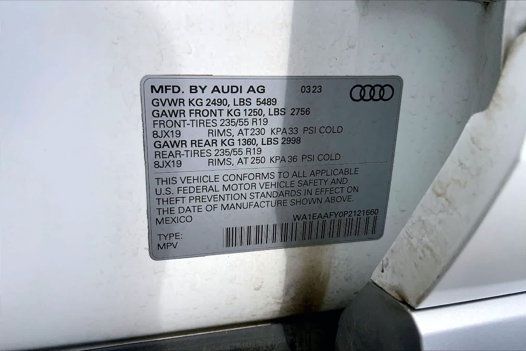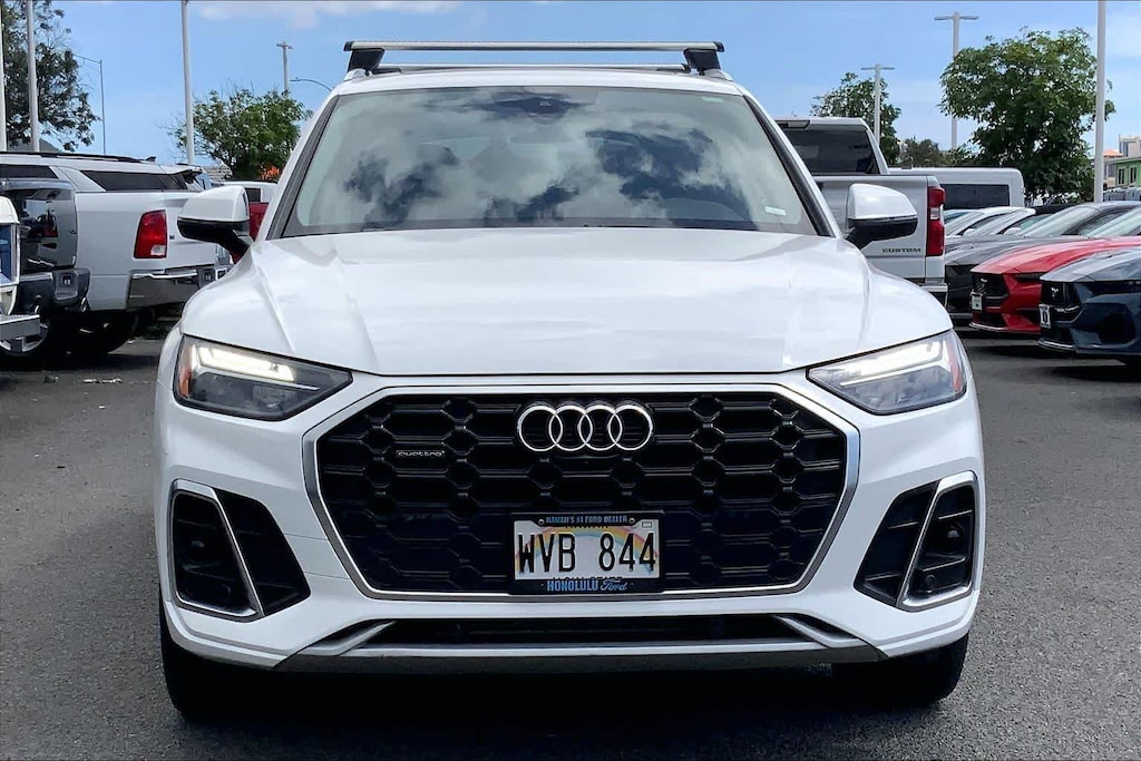 STATE SAFETY INSPECTION COMPLETE!, APPLE CAR PLAY/ANDROID AUTO, BLUETOOTH HANDS FREE CALLING, ONE OWNER!!, ACCIDENT FREE CARFAX!, *PANORAMIC ROOF, *LEATHER SEATS*, *HEATED SEATS, *VENTILATED/AC/COOLED SEATS, BACK-UP CAMERA, 360 SURROUND VISION CAMERA, EXTRA CLEAN, WELL TAKEN CARE OF, EXCELLENT FUEL ECONOMY, PREMIUM WHEELS, EXCELLENT CONDITION!, EXCELLENT SERVICE HISTORY!!, ADAPTIVE CRUISE CONTROL, PARKING SENSORS, UPGRADED WHEELS, TOUCH SCREEN, Black w/Leather Seating Surfaces, 10 Speakers, 4-Wheel Disc Brakes, 5.302 Axle Ratio, ABS brakes, Air Conditioning, Alloy wheels, AM/FM radio, Auto-dimming Rear-View mirror, Automatic temperature control, Brake assist, Bumpers: body-color, Compass, Delay-off headlights, Driver door bin, Driver vanity mirror, Dual front impact airbags, Dual front side impact airbags, Electronic Stability Control, Emergency communication system: Audi connect CARE, Exterior Parking Camera Rear, Four wheel independent suspension, Front anti-roll bar, Front Bucket Seats, Front Center Armrest, Front dual zone A/C, Front fog lights, Front reading lights, Garage door transmitter: HomeLink, Genuine wood console insert, Genuine wood dashboard insert, Genuine wood door panel insert, Heated 8-Way Power Front Bucket Seats, Heated door mirrors, Heated front seats, Illuminated entry, Leather Seating Surfaces, Leather Shift Knob, Low tire pressure warning, Occupant sensing airbag, Outside temperature display, Overhead airbag, Overhead console, Panic alarm, Passenger door bin, Passenger vanity mirror, Power door mirrors, Power driver seat, Power Liftgate, Power passenger seat, Power steering, Power windows, Radio data system, Radio: Audi Sound System, Rain sensing wipers, Rear air conditioning, Rear anti-roll bar, Rear fog lights, Rear reading lights, Rear seat center armrest, Rear window defroster, Rear window wiper, Remote keyless entry, Roof rack, Security system, Speed control, Speed-sensing steering, Speed-Sensitive Wipers, Split folding rear seat, Spoiler, Steering wheel mounted audio controls, Tachometer, Telescoping steering wheel, Tilt steering wheel, Traction control, Trip computer, Turn signal indicator mirrors, Variably intermittent wipers, Wheels: 18 5-Arm-Turbine Design, 4-Wheel Drive/All-Wheel Drive, Black w/Leather Seating Surfaces. Recent Arrival! CARFAX One-Owner. Clean CARFAX. Glacier White Metallic 2023 Audi Q5 45 S line Premium quattro quattro 7-Speed Automatic S tronic 2.0L Turbocharged