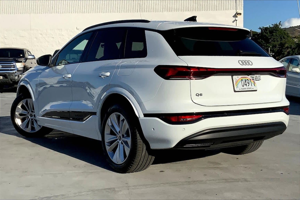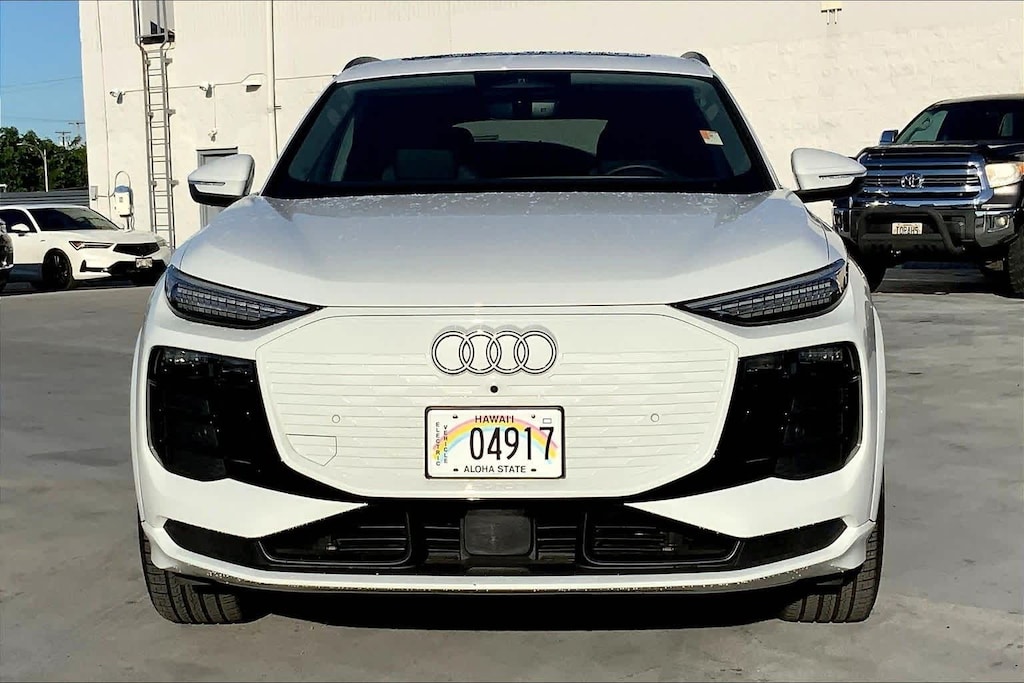 HONOLULU FORD! 808-532-1700, *DONT WAIT! CALL NOW!!, FINANCING AVAILABLE, GUARANTEED APPROVALS! LOW PAYMENTS! GREAT INTEREST RATES!, ***FORD CERTIFIED VEHICLE!! 172 POINT INSPECTION, OIL CHANGE, NEW WIPERS, NEW AIR FILTERS, FULL DET, WE SHIP TO NEIGHBOR ISLANDS!, 172 POINT INSPECTION BY FACTORY TRAINED TECHNICIANS!, STATE SAFETY INSPECTION COMPLETE!, APPLE CAR PLAY/ANDROID AUTO, BLUETOOTH HANDS FREE CALLING, ONE OWNER!!, ACCIDENT FREE CARFAX!, EXTRA CLEAN, WELL TAKEN CARE OF, EXCELLENT FUEL ECONOMY, EXCELLENT CONDITION!, EXCELLENT SERVICE HISTORY!!, ADAPTIVE CRUISE CONTROL, PARKING SENSORS, UPGRADED WHEELS, TOUCH SCREEN, 10 Speakers, 20 Wheel Package, 4-Wheel Disc Brakes, ABS brakes, Adaptive Cruise Assist, Air Conditioning, Alloy wheels, Animation for Headlights & Taillights, Audi Beam-Rings, Audi Guard Protection Kit, Augmented Reality Head-Up Display, Auto High-beam Headlights, Auto-dimming door mirrors, Auto-dimming Rear-View mirror, Automatic temperature control, Bang & Olufsen 3D Sound System, Bang & Olufsen Front Headrest Speakers, Black Warm Weather Package, Brake assist, Bumpers: body-color, Comfort Pre-Conditioning, Compass, Delay-off headlights, Driver door bin, Driver vanity mirror, Dual front impact airbags, Dual front side impact airbags, Dynamic Interaction Light, Electronic Stability Control, Emergency communication system: Audi connect CARE (limited time subscription - acceptance of terms required), Exterior Parking Camera Rear, Four wheel independent suspension, Front anti-roll bar, Front Bucket Seats, Front Center Armrest, Front dual zone A/C, Front reading lights, Fully automatic headlights, Garage door transmitter: HomeLink, Genuine wood dashboard insert, Headlight Washers, Heated door mirrors, Heated Front Seats, Heated front seats, Heated Rear Seats, Heated Steering Wheel, Illuminated entry, Leather Seating Surfaces, Leather steering wheel, LED Headlights Plus, LED Interior Lighting Plus Package, Low tire pressure warning, Manual Rear Side Window Sunshades, Memory seat, Navigation system: MMI Navigation plus, Occupant sensing airbag, Outside temperature display, Overhead airbag, Overhead console, Panic alarm, Panoramic Sunroof, Passenger door bin, Passenger vanity mirror, Power door mirrors, Power driver seat, Power Liftgate, Power passenger seat, Power steering, Power windows, Premium Plus, Radio data system, Radio: Audi Sound System, Rain sensing wipers, Rear air conditioning, Rear anti-roll bar, Rear reading lights, Rear seat center armrest, Rear side impact airbag, Rear window defroster, Rear window wiper, Remote keyless entry, Security system, Speed control, Speed-sensing steering, Split folding rear seat, Spoiler, Steering wheel memory, Steering wheel mounted audio controls, Stone Gray Birch Linear Natural Wood Inlays, Telescoping steering wheel, Tilt steering wheel, Top View Camera System, Traction control, Trip computer, Turn signal indicator mirrors, USB Power Delivery (2x60W Front & 2x100W Rear), Variably intermittent wipers, Ventilated Front Sport Seats, Wheels: 19 5-Double-Arm-Flag Design, Wheels: 20 5-Double-Arm Falx Design. Recent Arrival! Clean CARFAX. Glacier White 2025 Audi Q6 e-tron Premium Plus RWD Single-Speed Automatic Electric Motor