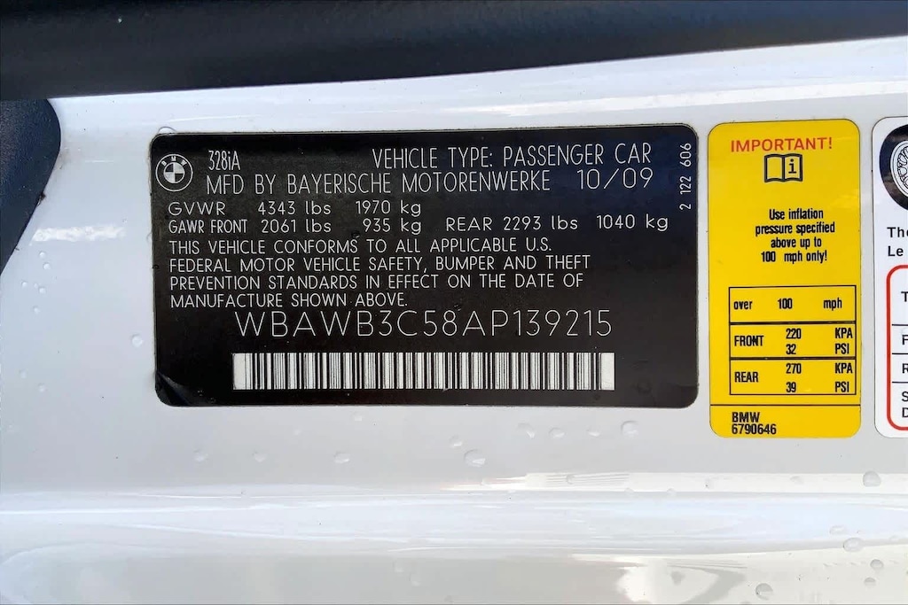 HONOLULU FORD! 808-532-1700, *DONT WAIT! CALL NOW!!, FINANCING AVAILABLE, GUARANTEED APPROVALS! LOW PAYMENTS! GREAT INTEREST RATES!, WE SHIP TO NEIGHBOR ISLANDS!, 172 POINT INSPECTION BY FACTORY TRAINED TECHNICIANS!, STATE SAFETY INSPECTION COMPLETE!, ACCIDENT FREE CARFAX!, *LEATHER SEATS*, *HEATED SEATS, BACK-UP CAMERA, EXTRA CLEAN, WELL TAKEN CARE OF, EXCELLENT FUEL ECONOMY, EXCELLENT CONDITION!, EXCELLENT SERVICE HISTORY!!, PARKING SENSORS, 17 Light-Alloy Star Spoke (Style 157) Wheels, 4-Wheel Disc Brakes, 6 Speakers, ABS brakes, Air Conditioning, Alloy wheels, AM/FM radio, Anti-Theft AM/FM Stereo CD/MP3 Player, Anti-whiplash front head restraints, Automatic temperature control, BMW Assist w/Bluetoothî, Brake assist, Bumpers: body-color, CD player, Delay-off headlights, Driver door bin, Driver vanity mirror, Dual front impact airbags, Dual front side impact airbags, Electronic Stability Control, Four wheel independent suspension, Front anti-roll bar, Front Bucket Seats, Front Center Armrest, Front dual zone A/C, Front fog lights, Front reading lights, Fully automatic headlights, Genuine wood console insert, Genuine wood dashboard insert, Genuine wood door panel insert, Heated door mirrors, High intensity discharge headlights: Bi-xenon, Illuminated entry, Leather Shift Knob, Leatherette Upholstery, Low tire pressure warning, Occupant sensing airbag, Outside temperature display, Overhead airbag, Park Distance Control (Rear Only), Passenger door bin, Passenger vanity mirror, Power door mirrors, Power Front Seats w/Driver Seat Memory, Power steering, Power windows, Radio data system, Rain sensing wipers, Rear air conditioning, Rear anti-roll bar, Rear reading lights, Rear seat center armrest, Rear window defroster, Remote keyless entry, Speed control, Speed-sensing steering, Split folding rear seat, Sport steering wheel, Steering wheel mounted A/C controls, Steering wheel mounted audio controls, Tachometer, Telescoping steering wheel, Tilt steering wheel, Traction control, Trip computer, Variably intermittent wipers. Recent Arrival! CARFAX One-Owner. Clean CARFAX. Alpine White 2010 BMW 3 Series 328i RWD 6-Speed Automatic Steptronic 3.0L 6-Cylinder DOHC
