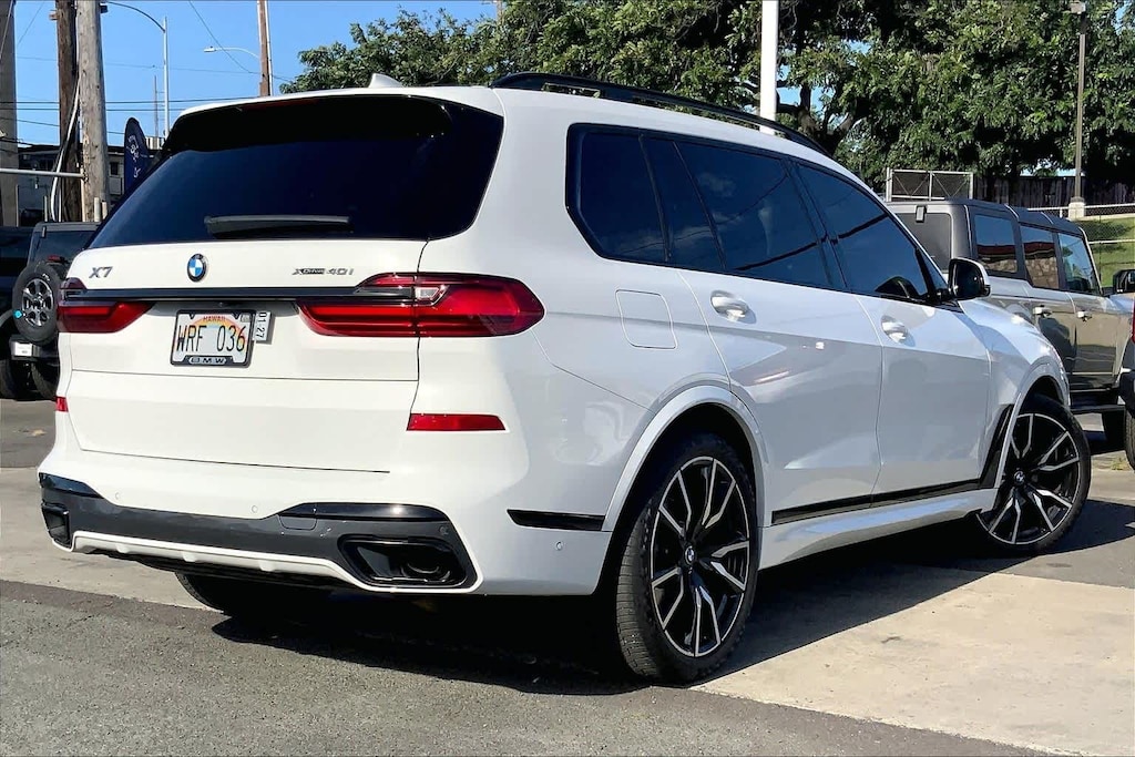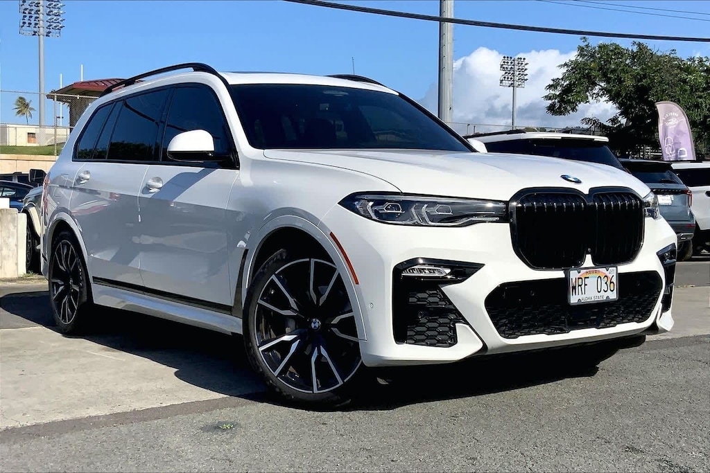 HONOLULU FORD! 808-532-1700, *DONT WAIT! CALL NOW!!, FINANCING AVAILABLE, GUARANTEED APPROVALS! LOW PAYMENTS! GREAT INTEREST RATES!, ***FORD CERTIFIED VEHICLE!! 172 POINT INSPECTION, OIL CHANGE, NEW WIPERS, NEW AIR FILTERS, FULL DET, WE SHIP TO NEIGHBOR ISLANDS!, 172 POINT INSPECTION BY FACTORY TRAINED TECHNICIANS!, STATE SAFETY INSPECTION COMPLETE!, APPLE CAR PLAY/ANDROID AUTO, BLUETOOTH HANDS FREE CALLING, ONE OWNER!!, ACCIDENT FREE CARFAX!, *LEATHER SEATS*, *HEATED SEATS, BACK-UP CAMERA, EXTRA CLEAN, WELL TAKEN CARE OF, EXCELLENT FUEL ECONOMY, PREMIUM WHEELS, EXCELLENT CONDITION!, EXCELLENT SERVICE HISTORY!!, NAVIGATION SYSTEM, READY FOR YOU TO DRIVE HOME TODAY!, ADAPTIVE CRUISE CONTROL, PARKING SENSORS, UPGRADED WHEELS, TOUCH SCREEN, 10 Speakers, 3.64 Axle Ratio, 3rd row seats: split-bench, 4-Wheel Disc Brakes, ABS brakes, Active Driving Assistant Pro, Aerodynamic Kit, Air Conditioning, Alloy wheels, AM/FM radio: SiriusXM with 360L, AM/FM Stereo, Anthracite Alcantara Headliner, Apple CarPlay & Android Auto Compatibility, Apple CarPlay Compatibility, Auto High-beam Headlights, Auto tilt-away steering wheel, Auto-dimming door mirrors, Auto-dimming Rear-View mirror, Auto-leveling suspension, Automatic temperature control, BMW Assist eCall, BMW TeleServices, Brake assist, Bumpers: body-color, Compass, Connected Package Pro, ConnectedDrive Services, Delay-off headlights, Drive Recorder, Driver door bin, Driver vanity mirror, Driving Assistance Professional Package, Dual front impact airbags, Dual front side impact airbags, Electronic Stability Control, Emergency communication system: BMW Assist eCall, Extended Shadowline Trim, Extended Traffic Jam Assistant, Exterior Parking Camera Rear, Four wheel independent suspension, Front anti-roll bar, Front Bucket Seats, Front Center Armrest, Front dual zone A/C, Front fog lights, Front reading lights, Fully automatic headlights, Garage door transmitter, Genuine wood console insert, Genuine wood dashboard insert, Genuine wood door panel insert, Head restraints memory, Heated door mirrors, Heated front seats, Heated Sport Seats, Heated steering wheel, Hi-Fi Sound System, High-Gloss Shadowline Roof Rails, Illuminated entry, Knee airbag, Leather Shift Knob, Live Cockpit Pro w/Navi, Low tire pressure warning, Lumbar Support, M Sport Package, M Sport Package (337), M Steering Wheel, Memory seat, Navigation System, Occupant sensing airbag, Outside temperature display, Overhead airbag, Panic alarm, Parking Assistance Package, Parking Assistant Plus, Passenger door bin, Passenger vanity mirror, Power adjustable front head restraints, Power door mirrors, Power driver seat, Power Front Seats, Power moonroof: Panorama, Power passenger seat, Power steering, Power windows, Radio data system, Rain sensing wipers, Rear air conditioning, Rear anti-roll bar, Rear dual zone A/C, Rear reading lights, Rear seat center armrest, Rear window defroster, Rear window wiper, Rear-View Camera, Reclining 3rd row seat, Remote keyless entry, Roof rack: rails only, Security system, SensaTec Upholstery, Shadowline Exterior Trim, SiriusXM w/360L, Speed control, Speed-sensing steering, Speed-Sensitive Wipers, Split folding rear seat, Spoiler, Sport steering wheel, Steering wheel memory, Steering wheel mounted audio controls, Surround View w/3D View, Tachometer, Telescoping steering wheel, Tilt steering wheel, Traction control, Trip computer, Turn signal indicator mirrors, Variably intermittent wipers, Vernasca Leather Upholstery, Wheels: 21 x 9.5 Double-Spoke Bi-Color Orbit Grey, Wheels: 21 x 9.5 Y-Spoke Bi-Color, Wheels: 22 x 9.5 Fr & 22 x 10.5 Rr Bi-Color, WiFi Hotspot, Wireless Charging, Without Lines Designation Outside, 4-Wheel Drive/All-Wheel Drive. Recent Arrival! CARFAX One-Owner. Clean CARFAX. Alpine White 2022 BMW X7 xDrive40i AWD 8-Speed Automatic Sport 3.0L I6 DOHC 24V