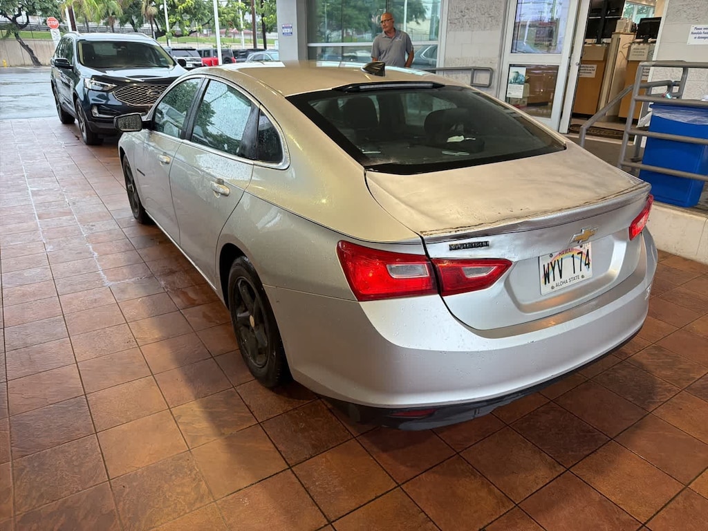 HONOLULU FORD! 808-532-1700, *DONT WAIT! CALL NOW!!, FINANCING AVAILABLE, GUARANTEED APPROVALS! LOW PAYMENTS! GREAT INTEREST RATES!, STATE SAFETY INSPECTION COMPLETE!, BLUETOOTH HANDS FREE CALLING, ACCIDENT FREE CARFAX!, POWER WINDOWS/LOCKS/MIRRORS, BACK-UP CAMERA, EXCELLENT FUEL ECONOMY, Jet Black Cloth, 16 Aluminum Wheels, 4-Wheel Disc Brakes, 6 Speakers, 6-Way Manual Driver Seat Adjuster, ABS brakes, Air Conditioning, All-Weather Floor Mats, Alloy wheels, AM/FM radio, Apple CarPlay/Android Auto, Brake assist, Bumpers: body-color, Compass, Delay-off headlights, Driver door bin, Driver vanity mirror, Dual front impact airbags, Dual front side impact airbags, Electronic Stability Control, Emergency communication system: OnStar, Exterior Parking Camera Rear, Four wheel independent suspension, Front anti-roll bar, Front Bucket Seats, Front Center Armrest w/Storage, Front License Plate Bracket, Front Passenger 6-Way Manual Seat Adjuster, Front reading lights, Fully automatic headlights, Illuminated entry, Knee airbag, Low tire pressure warning, Occupant sensing airbag, Outside temperature display, Overhead airbag, Overhead console, Panic alarm, Passenger door bin, Passenger vanity mirror, Power door mirrors, Power steering, Power windows, Preferred Equipment Group 1LS, Premium Cloth Seat Trim, Radio: AM/FM Stereo w/Seek-and-Scan/Digital Clock, Rear anti-roll bar, Rear seat center armrest, Rear side impact airbag, Rear window defroster, Remote keyless entry, Security system, Speed control, Split folding rear seat, Steering wheel mounted audio controls, Tachometer, Telescoping steering wheel, Tilt steering wheel, Traction control, Trip computer, Variably intermittent wipers, Jet Black Cloth. Recent Arrival! Clean CARFAX. Silver Ice Metallic 2016 Chevrolet Malibu LS 1LS FWD 6-Speed Automatic 1.5L DOHC