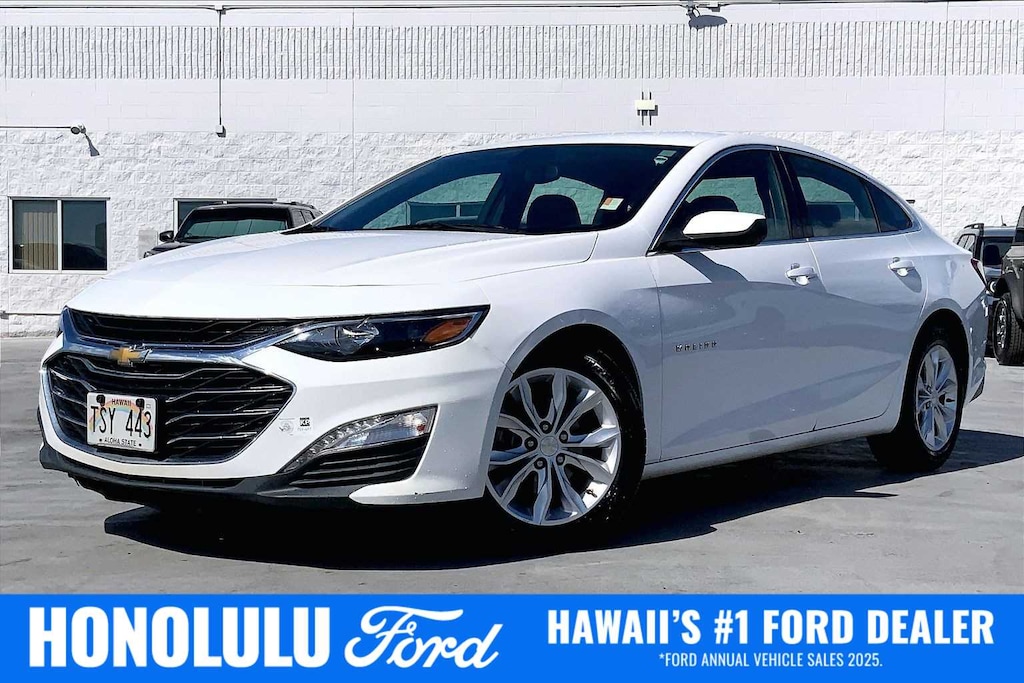 HONOLULU FORD! 808-532-1700, *DONT WAIT! CALL NOW!!, FINANCING AVAILABLE, GUARANTEED APPROVALS! LOW PAYMENTS! GREAT INTEREST RATES!, ***FORD CERTIFIED VEHICLE!! 172 POINT INSPECTION, OIL CHANGE, NEW WIPERS, NEW AIR FILTERS, FULL DET, WE SHIP TO NEIGHBOR ISLANDS!, 172 POINT INSPECTION BY FACTORY TRAINED TECHNICIANS!, STATE SAFETY INSPECTION COMPLETE!, BLUETOOTH HANDS FREE CALLING, ONE OWNER!!, ACCIDENT FREE CARFAX!, EXTRA CLEAN, WELL TAKEN CARE OF, EXCELLENT FUEL ECONOMY, EXCELLENT CONDITION!, EXCELLENT SERVICE HISTORY!!, READY FOR YOU TO DRIVE HOME TODAY!, ADAPTIVE CRUISE CONTROL, PARKING SENSORS, UPGRADED WHEELS, TOUCH SCREEN, Black Cloth, 17 Aluminum Wheels, 4-Wheel Disc Brakes, 6 Speakers, 6-Speaker Audio System Feature, 6-Way Manual Front Passenger Seat Adjuster, 8-Way Power Driver Seat Adjuster, ABS brakes, Air Conditioning, Alloy wheels, AM/FM radio: SiriusXM, Apple CarPlay/Android Auto, Automatic temperature control, Brake assist, Bumpers: body-color, Compass, Delay-off headlights, Driver door bin, Driver vanity mirror, Dual front impact airbags, Dual front side impact airbags, Electronic Stability Control, Emergency communication system: OnStar and Chevrolet connected services capable, Exterior Parking Camera Rear, Four wheel independent suspension, Front anti-roll bar, Front Bucket Seats, Front Center Armrest w/Storage, Front dual zone A/C, Front License Plate Bracket, Front reading lights, Fully automatic headlights, Heated door mirrors, Heated Driver & Front Passenger Seats, Heated front seats, Illuminated entry, Knee airbag, Low tire pressure warning, Occupant sensing airbag, Outside temperature display, Overhead airbag, Overhead console, Panic alarm, Passenger door bin, Passenger vanity mirror, Power door mirrors, Power Driver Lumbar Control Seat Adjuster, Power driver seat, Power steering, Power windows, Preferred Equipment Group 1LT, Premium Cloth Seat Trim, Radio data system, Radio: Chevrolet Infotainment 3 System, Rear anti-roll bar, Rear reading lights, Rear seat center armrest, Rear side impact airbag, Rear window defroster, Remote keyless entry, Security system, SiriusXM Radio, Speed control, Split folding rear seat, Steering wheel mounted audio controls, Tachometer, Telescoping steering wheel, Tilt steering wheel, Traction control, Trip computer, Variably intermittent wipers, Black Cloth. Recent Arrival! Clean CARFAX. Summit White 2019 Chevrolet Malibu LT FWD CVT 1.5L DOHC