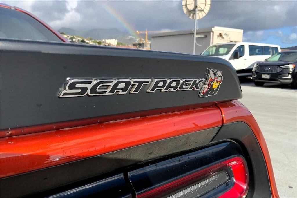 HONOLULU FORD! 808-532-1700, *DONT WAIT! CALL NOW!!, FINANCING AVAILABLE, GUARANTEED APPROVALS! LOW PAYMENTS! GREAT INTEREST RATES!, ***FORD CERTIFIED VEHICLE!! 172 POINT INSPECTION, OIL CHANGE, NEW WIPERS, NEW AIR FILTERS, FULL DET, WE SHIP TO NEIGHBOR ISLANDS!, 172 POINT INSPECTION BY FACTORY TRAINED TECHNICIANS!, STATE SAFETY INSPECTION COMPLETE!, APPLE CAR PLAY/ANDROID AUTO, BLUETOOTH HANDS FREE CALLING, ONE OWNER!!, ACCIDENT FREE CARFAX!, *LEATHER SEATS*, *HEATED SEATS, BACK-UP CAMERA, 360 SURROUND VISION CAMERA, EXTRA CLEAN, WELL TAKEN CARE OF, EXCELLENT FUEL ECONOMY, EXCELLENT CONDITION!, EXCELLENT SERVICE HISTORY!!, UPGRADED WHEELS, TOUCH SCREEN, 1-Yr SiriusXM Guardian Trial, 230MM Rear Axle, 3.09 Rear Axle Ratio, 4-Wheel Disc Brakes, 6 Speakers, ABS brakes, Air Conditioning, Alloy wheels, AM/FM radio: SiriusXM, Anti-whiplash front head restraints, Apple CarPlay, Apple CarPlay/Android Auto, Auto-dimming Rear-View mirror, Automatic temperature control, Brake assist, Bumpers: body-color, Compass, Delay-off headlights, Driver door bin, Driver vanity mirror, Dual front impact airbags, Dual front side impact airbags, Electronic Stability Control, Emergency communication system: SiriusXM Guardian, Four wheel independent suspension, Front anti-roll bar, Front Bucket Seats, Front Center Armrest, Front dual zone A/C, Front fog lights, Front License Plate Bracket, Front reading lights, Fully automatic headlights, Garage door transmitter, Google Android Auto, GPS Antenna Input, Heated door mirrors, Heated front seats, Heated steering wheel, Illuminated entry, Integrated Center Stack Radio, Integrated Voice Command w/Bluetooth, Leather Shift Knob, Low tire pressure warning, Media Hub (2 USB, AUX), Outside temperature display, Overhead airbag, Overhead console, Panic alarm, ParkView Rear Back-Up Camera, Passenger door bin, Passenger vanity mirror, Power door mirrors, Power driver seat, Power steering, Power windows, Quick Order Package 24G R/T Scat Pack, Radio data system, Radio: Uconnect 4C w/8.4 Display, Rear anti-roll bar, Rear reading lights, Rear seat center armrest, Rear window defroster, Remote keyless entry, Scat Pack Logo Houndstooth Seat, Security system, Shark Fin Antenna, SiriusXM Satellite Radio, Speed control, Speed-sensing steering, Split folding rear seat, Spoiler, Sport steering wheel, Steering wheel mounted audio controls, Tachometer, Telescoping steering wheel, Tilt steering wheel, Traction control, Trip computer, USB Host Flip, Variably intermittent wipers, Wheels: 20 x 9 Lo Gloss Granite Crystal. CARFAX One-Owner. Clean CARFAX. Sinamon Stick 2021 Dodge Challenger R/T Scat Pack RWD 8-Speed Automatic SRT HEMI 6.4L V8 MDS