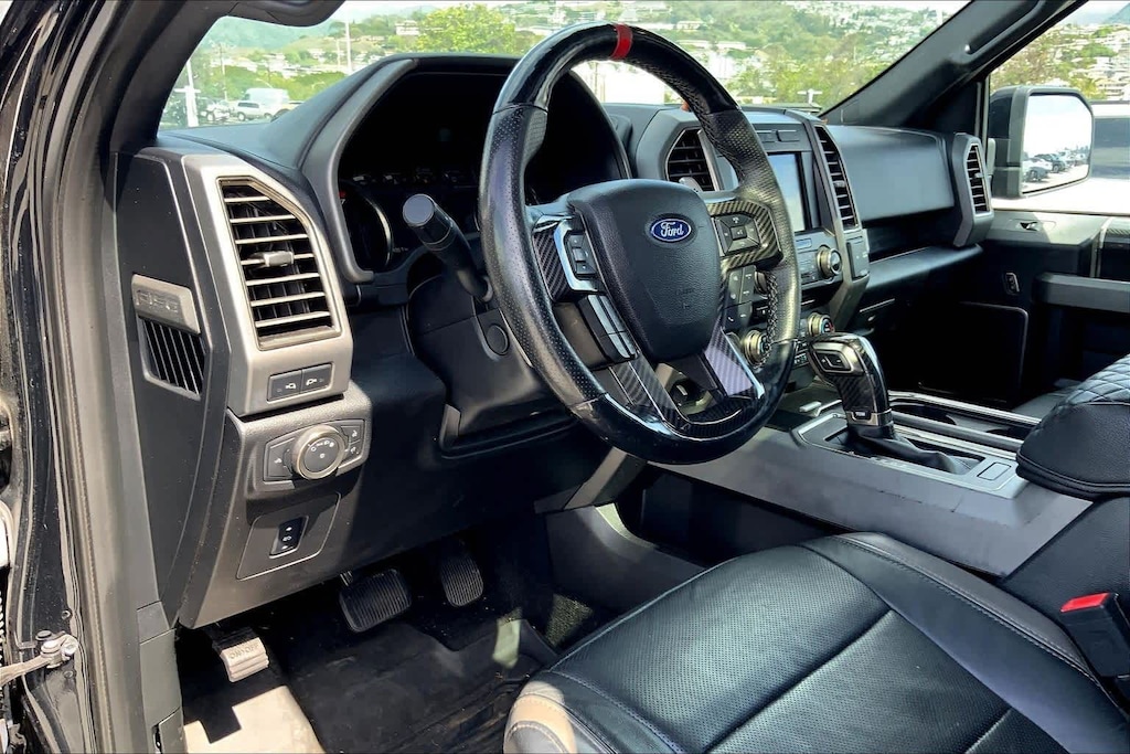 HONOLULU FORD! 808-532-1700, *DONT WAIT! CALL NOW!!, FINANCING AVAILABLE, GUARANTEED APPROVALS! LOW PAYMENTS! GREAT INTEREST RATES!, ***FORD CERTIFIED VEHICLE!! 172 POINT INSPECTION, OIL CHANGE, NEW WIPERS, NEW AIR FILTERS, FULL DET, WE SHIP TO NEIGHBOR ISLANDS!, 172 POINT INSPECTION BY FACTORY TRAINED TECHNICIANS!, STATE SAFETY INSPECTION COMPLETE!, APPLE CAR PLAY/ANDROID AUTO, BLUETOOTH HANDS FREE CALLING, ONE OWNER!!, ACCIDENT FREE CARFAX!, BACK-UP CAMERA, 360 SURROUND VISION CAMERA, EXTRA CLEAN, WELL TAKEN CARE OF, EXCELLENT FUEL ECONOMY, OFF ROAD WHEELS AND TIRES, EXCELLENT CONDITION!, EXCELLENT SERVICE HISTORY!!, BLIND SPOT MONITOR, READY FOR YOU TO DRIVE HOME TODAY!, ADAPTIVE CRUISE CONTROL, PARKING SENSORS, UPGRADED WHEELS, TOUCH SCREEN, 4WD, 10-Way Power Driver & Passenger Seats, 17 Cast Aluminum Wheels, 360 Degree Camera, 4-Wheel Disc Brakes, 4.10 Front Axle w/Torsen Differential, 7 Speakers, 8-Way Power Drivers Seat w/Power Lumbar, 8 Productivity Screen, ABS brakes, Adaptive Cruise Control w/Collision Mitigation, Advanced Security Pack, Air Conditioning, Alloy wheels, AM/FM radio: SiriusXM, Ambient Lighting - Ice Blue Color Only, Auto High Beam, Auto-dimming Rear-View mirror, BLIS Blind Spot Information System, Brake assist, CD player, Compass, Delay-off headlights, Driver door bin, Driver vanity mirror, Dual front impact airbags, Dual front side impact airbags, Dual-Zone Electronic Automatic Temperature Control, Electronic Locking w/4.10 Axle Ratio, Electronic Stability Control, Emergency communication system: 911 Assist, Equipment Group 802A Luxury, Exterior Parking Camera Rear, Foldable Pickup Box Bed Extender, Front anti-roll bar, Front Bucket Seats, Front Center Armrest, Front fog lights, Front reading lights, Front wheel independent suspension, Fully automatic headlights, GVWR: 6,650 lbs Payload Package, Hard Folding Tonneau Box Cover (Dealer Installed), Heated Leather 40/Console/40 Front Seats, Heated Steering Wheel, Illuminated entry, Integrated Trailer Brake Controller, Intelligent Access w/Push-Button Start, Lane-Keeping System, Leather steering wheel, LED Box Lighting, LED Sideview Mirror Spotlights, Low tire pressure warning, Memory System (Seat, Pedal, Exterior Mirror), Occupant sensing airbag, Outside temperature display, Overhead airbag, Overhead console, Panic alarm, Passenger door bin, Passenger vanity mirror, Power door mirrors, Power driver seat, Power Glass Heated Sideview Mirrors, Power Moonroof, Power steering, Power Tilt/Telescoping Steering Column w/Memory, Power windows, Power-Adjustable Pedals, Power-Sliding Rear Window, Pro Trailer Backup Assist, Radio data system, Radio: B&O Play Premium Audio System, Raptor Carbon Fiber Package, Raptor Technology Package, Rear Parking Sensors, Rear step bumper, Rear window defroster, Remote keyless entry, Remote Start System w/Remote Tailgate Release, Security system, Speed control, Speed-sensing steering, Split folding rear seat, Spray-In Bedliner (Pre-Installed), Steering wheel mounted audio controls, SYNC, SYNC 3, SYNC Connect, Tachometer, Tailgate Applique FORD, Tailgate Step w/Tailgate Lift Assist, Telescoping steering wheel, Tilt steering wheel, Traction control, Trip computer, Unique Carbon Fiber Shift Knob, Unique Cloth Trim Seats, Universal Garage Door Opener, Variably intermittent wipers, Voice-Activated Touchscreen Navigation System, 4WD. Recent Arrival! Shadow Black 2018 Ford F-150 Raptor 4WD 10-Speed Automatic 3.5L V6 EcoBoost