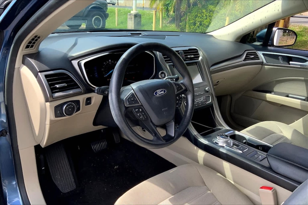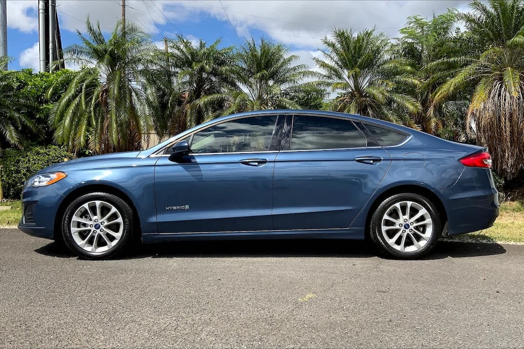 HONOLULU FORD! 808-532-1700, *DONT WAIT! CALL NOW!!, FINANCING AVAILABLE, GUARANTEED APPROVALS! LOW PAYMENTS! GREAT INTEREST RATES!, ***FORD CERTIFIED VEHICLE!! 172 POINT INSPECTION, OIL CHANGE, NEW WIPERS, NEW AIR FILTERS, FULL DET, WE SHIP TO NEIGHBOR ISLANDS!, 172 POINT INSPECTION BY FACTORY TRAINED TECHNICIANS!, STATE SAFETY INSPECTION COMPLETE!, BLUETOOTH HANDS FREE CALLING, ONE OWNER!!, BACK-UP CAMERA, EXTRA CLEAN, WELL TAKEN CARE OF, EXCELLENT FUEL ECONOMY, PREMIUM WHEELS, EXCELLENT CONDITION!, EXCELLENT SERVICE HISTORY!!, ADAPTIVE CRUISE CONTROL, PARKING SENSORS, UPGRADED WHEELS, TOUCH SCREEN, I4 Hybrid, 4-Wheel Disc Brakes, 9 Speakers, ABS brakes, Air Conditioning, Alloy wheels, AM/FM radio: SiriusXM, AppLink/Apple CarPlay and Android Auto, Auto High-beam Headlights, Auto-dimming Rear-View mirror, Automatic temperature control, Brake assist, Bumpers: body-color, Cloth Front Bucket Seats, Compass, Delay-off headlights, Driver door bin, Driver vanity mirror, Dual front impact airbags, Dual front side impact airbags, Electronic Stability Control, Emergency communication system: 911 Assist, Equipment Group 550A, Exterior Parking Camera Rear, Four wheel independent suspension, Front anti-roll bar, Front Bucket Seats, Front Center Armrest, Front dual zone A/C, Front License Plate Bracket, Front reading lights, Fully automatic headlights, Illuminated entry, Knee airbag, Lane Departure Warning System, Low tire pressure warning, Navigation System, Occupant sensing airbag, Outside temperature display, Overhead airbag, Overhead console, Panic alarm, Passenger door bin, Passenger vanity mirror, Power door mirrors, Power driver seat, Power passenger seat, Power steering, Power windows, Radio data system, Radio: AM/FM/MP3 Stereo, Rain sensing wipers, Rear anti-roll bar, Rear Parking Sensors, Rear reading lights, Rear seat center armrest, Rear window defroster, Remote keyless entry, Security system, Speed control, Speed-sensing steering, Speed-Sensitive Wipers, Split folding rear seat, Steering wheel mounted audio controls, SYNC 3 Communications & Entertainment System, Tachometer, Telescoping steering wheel, Tilt steering wheel, Traction control, Trip computer, Variably intermittent wipers, Wheels: 17 Sparkle Silver-Painted Aluminum, I4 Hybrid. Recent Arrival! Blue Metallic 2019 Ford Fusion Hybrid SE FWD eCVT I4 Hybrid