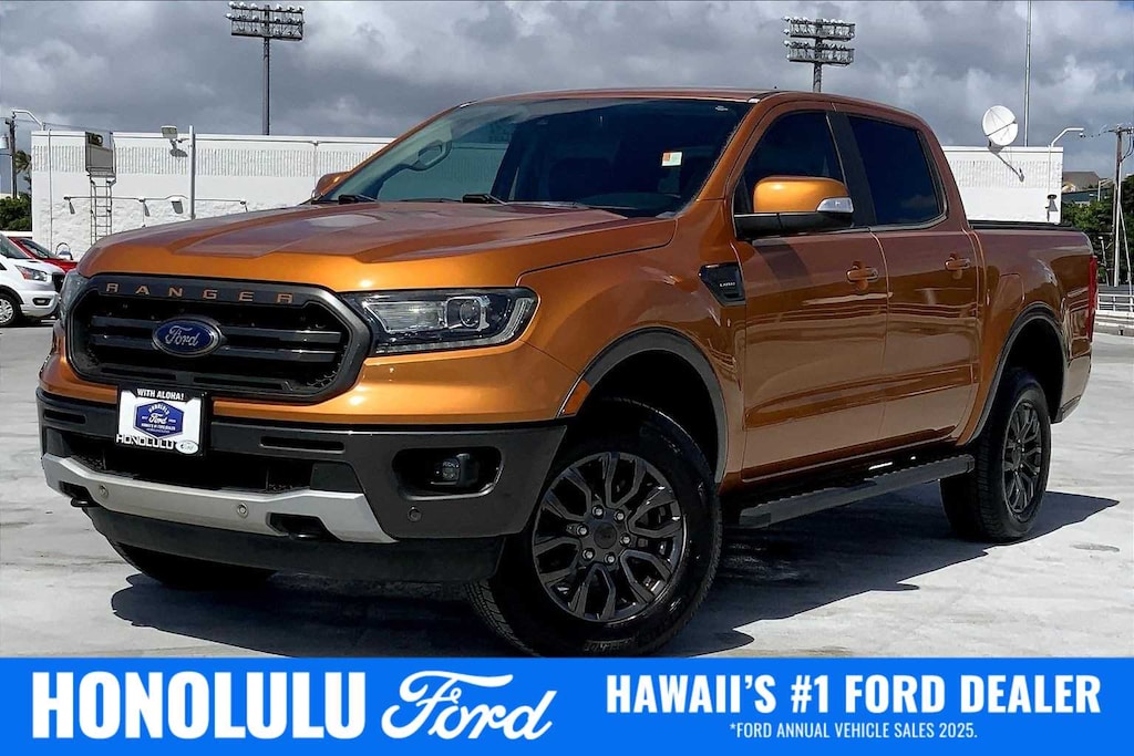 HONOLULU FORD! 808-532-1700, *DONT WAIT! CALL NOW!!, FINANCING AVAILABLE, GUARANTEED APPROVALS! LOW PAYMENTS! GREAT INTEREST RATES!, ***FORD CERTIFIED VEHICLE!! 172 POINT INSPECTION, OIL CHANGE, NEW WIPERS, NEW AIR FILTERS, FULL DET, WE SHIP TO NEIGHBOR ISLANDS!, 172 POINT INSPECTION BY FACTORY TRAINED TECHNICIANS!, STATE SAFETY INSPECTION COMPLETE!, APPLE CAR PLAY/ANDROID AUTO, BLUETOOTH HANDS FREE CALLING, ONE OWNER!!, ACCIDENT FREE CARFAX!, EXTRA CLEAN, WELL TAKEN CARE OF, EXCELLENT FUEL ECONOMY, EXCELLENT CONDITION!, EXCELLENT SERVICE HISTORY!!, BLIND SPOT MONITOR, READY FOR YOU TO DRIVE HOME TODAY!, PARKING SENSORS, UPGRADED WHEELS, TOUCH SCREEN, 4-Wheel Disc Brakes, 6 Speakers, ABS brakes, Air Conditioning, Brake assist, Compass, Delay-off headlights, Driver door bin, Dual front impact airbags, Dual front side impact airbags, Electronic Stability Control, Exterior Parking Camera Rear, Front anti-roll bar, Front Bucket Seats, Front Center Armrest, Front wheel independent suspension, Fully automatic headlights, Illuminated entry, Low tire pressure warning, Occupant sensing airbag, Overhead airbag, Passenger door bin, Power steering, Power windows, Radio: AM/FM Stereo w/6 Speakers, Rear seat center armrest, Rear step bumper, Speed-sensing steering, Steering wheel mounted audio controls, TBD Axle Ratio, Telescoping steering wheel, Tilt steering wheel, Traction control, Trailer Tow Package, Trip computer, Variably intermittent wipers, Voltmeter. Recent Arrival! CARFAX One-Owner. Clean CARFAX. Saber 2019 Ford Ranger Lariat RWD 10-Speed Automatic EcoBoost 2.3L I4 GTDi DOHC Turbocharged VCT