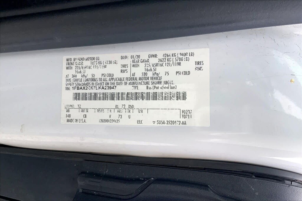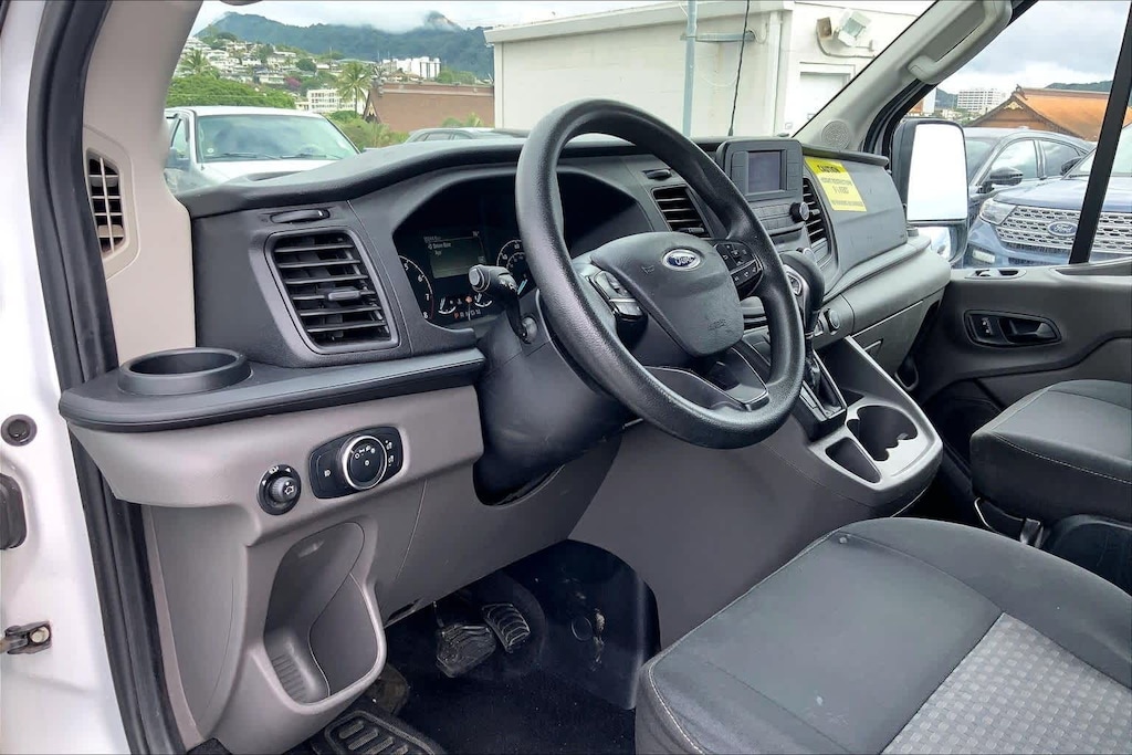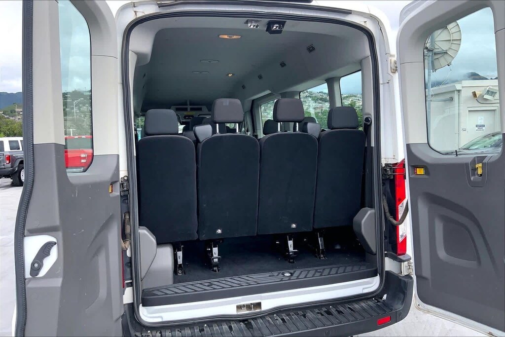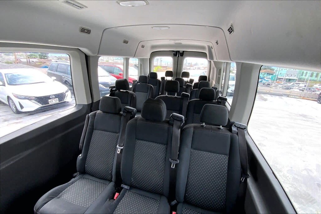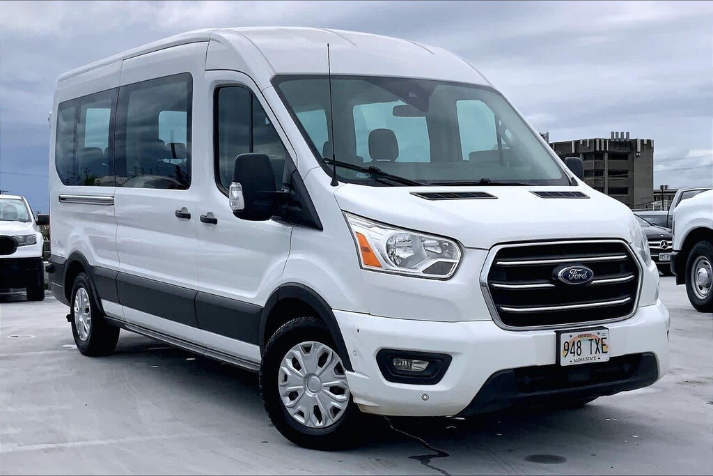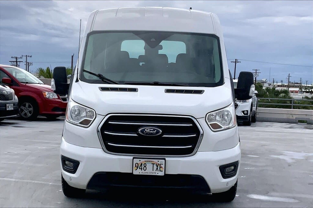 HONOLULU FORD! 808-532-1700, *DONT WAIT! CALL NOW!!, FINANCING AVAILABLE, GUARANTEED APPROVALS! LOW PAYMENTS! GREAT INTEREST RATES!, ***FORD CERTIFIED VEHICLE!! 172 POINT INSPECTION, OIL CHANGE, NEW WIPERS, NEW AIR FILTERS, FULL DET, WE SHIP TO NEIGHBOR ISLANDS!, 172 POINT INSPECTION BY FACTORY TRAINED TECHNICIANS!, STATE SAFETY INSPECTION COMPLETE!, APPLE CAR PLAY/ANDROID AUTO, BLUETOOTH HANDS FREE CALLING, ONE OWNER!!, ACCIDENT FREE CARFAX!, 15-Passenger Seats, 3.73 Axle Ratio, 3rd row seats: split-bench, 4-Wheel Disc Brakes, 4th-Row Bench Seat, 8 Speakers, 8 Speakers (4 Front/4 Rear), ABS brakes, Air Conditioning, AM/FM radio, Auto High-beam Headlights, Brake assist, Cloth Front Bucket Seats, Driver door bin, Drivers Seat Mounted Armrest, Dual front impact airbags, Dual front side impact airbags, Ebony Cloth Bucket Seats, Electronic Stability Control, Exterior Parking Camera Rear, Front anti-roll bar, Front Bucket Seats, Front Fog Lamps, Front License Plate Bracket, Front reading lights, Front wheel independent suspension, Fully automatic headlights, Illuminated entry, Large Center Console, Low tire pressure warning, Occupant sensing airbag, Overhead airbag, Overhead console, Panic alarm, Passenger door bin, Passenger seat mounted armrest, Power door mirrors, Power steering, Power windows, Radio: AM/FM Stereo w/SYNC 3, Rain sensing wipers, Rear air conditioning, Remote keyless entry, Reverse Sensing System, Side Sensing System, Steering wheel mounted audio controls, Tachometer, Telescoping steering wheel, Tilt steering wheel, Traction control, Variably intermittent wipers, Wheels: 16 Steel w/Full Silver Cover. CARFAX One-Owner. Clean CARFAX. Oxford White 2020 Ford Transit-350 XLT RWD 10-Speed Automatic with Overdrive V6
