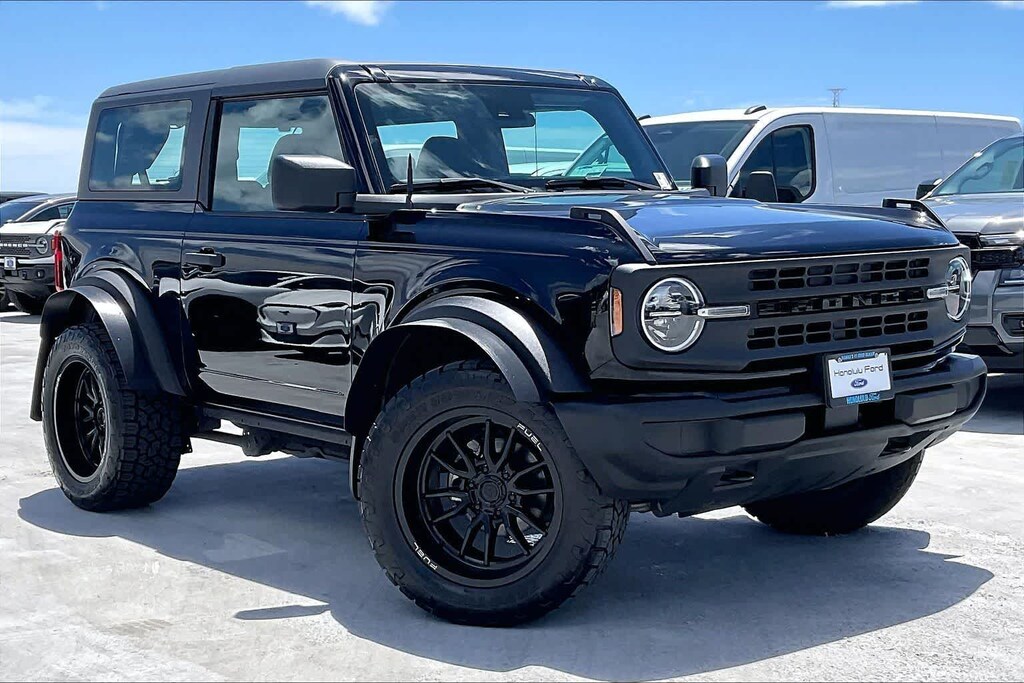 HONOLULU FORD! 808-532-1700, *DONT WAIT! CALL NOW!!, FINANCING AVAILABLE, GUARANTEED APPROVALS! LOW PAYMENTS! GREAT INTEREST RATES!, ***FORD CERTIFIED VEHICLE!! 172 POINT INSPECTION, OIL CHANGE, NEW WIPERS, NEW AIR FILTERS, FULL DET, WE SHIP TO NEIGHBOR ISLANDS!, 172 POINT INSPECTION BY FACTORY TRAINED TECHNICIANS!, STATE SAFETY INSPECTION COMPLETE!, APPLE CAR PLAY/ANDROID AUTO, ONE OWNER!!, ACCIDENT FREE CARFAX!, *DRIVER AWARENESS PACKAGE*, BACK-UP CAMERA, BOUGHT AND SERVICED HERE, EXTRA CLEAN, WELL TAKEN CARE OF, EXCELLENT FUEL ECONOMY, OFF ROAD WHEELS AND TIRES, EXCELLENT CONDITION!, EXCELLENT SERVICE HISTORY!!, READY FOR YOU TO DRIVE HOME TODAY!, ADAPTIVE CRUISE CONTROL, PARKING SENSORS, UPGRADED WHEELS, TOUCH SCREEN, 4-Wheel Disc Brakes, 6 Speakers, ABS brakes, Air Conditioning, AM/FM radio: SiriusXM with 360L, AM/FM Stereo, Auto High-beam Headlights, Brake assist, Compass, Convertible HardTop, Convertible roof lining, Delay-off headlights, Driver door bin, Driver vanity mirror, Dual front impact airbags, Dual front side impact airbags, Electronic Stability Control, Emergency communication system: 911 Assist, Exterior Parking Camera Rear, Front anti-roll bar, Front Bucket Seats, Front Center Armrest, Front reading lights, Front wheel independent suspension, Fully automatic headlights, Glass rear window, Heated door mirrors, Illuminated entry, Integrated roll-over protection, Low tire pressure warning, Occupant sensing airbag, Outside temperature display, Overhead airbag, Overhead console, Panic alarm, Passenger door bin, Passenger vanity mirror, Power door mirrors, Power steering, Power windows, Radio data system, Rear window defroster, Rear window wiper, Remote keyless entry, Security system, SiriusXM Radio w/360L, Speed control, Split folding rear seat, Steering wheel mounted audio controls, SYNC 4, Tachometer, Telescoping steering wheel, Tilt steering wheel, Traction control, Trip computer, Variably intermittent wipers, 4-Wheel Drive/All-Wheel Drive. Recent Arrival! CARFAX One-Owner. Shadow Black 2022 Ford Bronco Base 4WD 7-Speed Manual 2.3L EcoBoost I-4