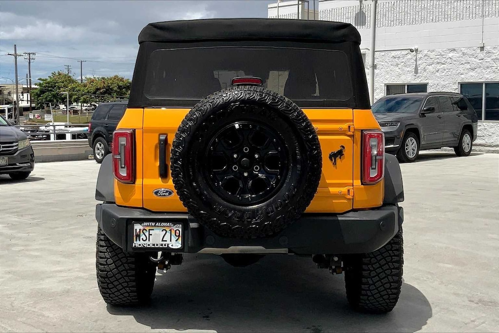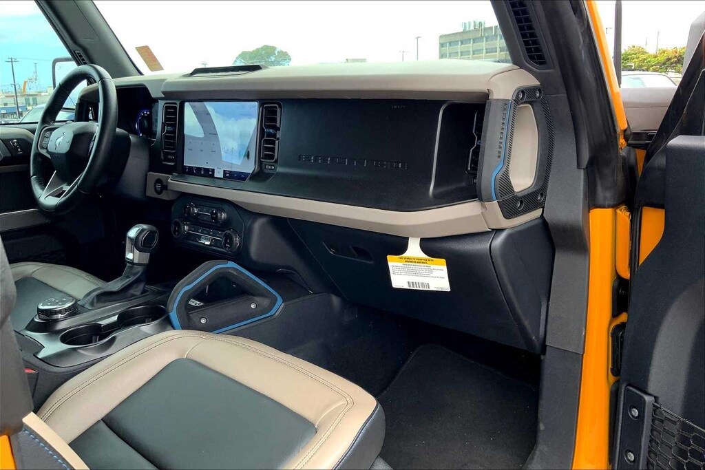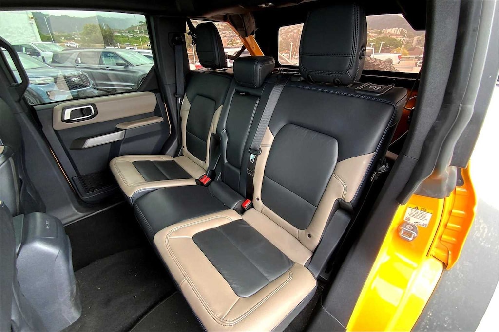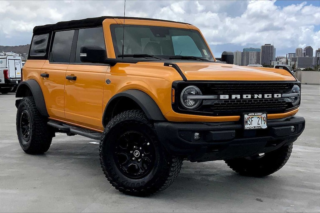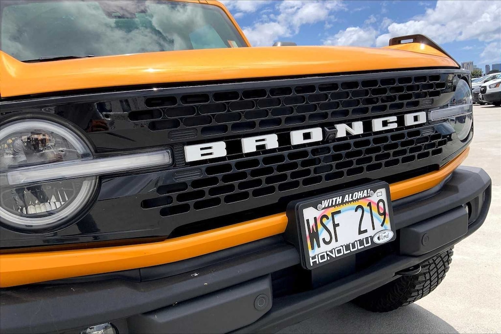 HONOLULU FORD! 808-532-1700, *DONT WAIT! CALL NOW!!, FINANCING AVAILABLE, GUARANTEED APPROVALS! LOW PAYMENTS! GREAT INTEREST RATES!, ***FORD CERTIFIED VEHICLE!! 172 POINT INSPECTION, OIL CHANGE, NEW WIPERS, NEW AIR FILTERS, FULL DET, WE SHIP TO NEIGHBOR ISLANDS!, 172 POINT INSPECTION BY FACTORY TRAINED TECHNICIANS!, STATE SAFETY INSPECTION COMPLETE!, APPLE CAR PLAY/ANDROID AUTO, BLUETOOTH HANDS FREE CALLING, ONE OWNER!!, ACCIDENT FREE CARFAX!, BACK-UP CAMERA, 360 SURROUND VISION CAMERA, BOUGHT AND SERVICED HERE, EXTRA CLEAN, WELL TAKEN CARE OF, OFF ROAD WHEELS AND TIRES, EXCELLENT CONDITION!, EXCELLENT SERVICE HISTORY!!, BLIND SPOT MONITOR, READY FOR YOU TO DRIVE HOME TODAY!, ADAPTIVE CRUISE CONTROL, PARKING SENSORS, TOUCH SCREEN, 4-Wheel Disc Brakes, 6 Speakers, ABS brakes, Air Conditioning, AM/FM radio: SiriusXM with 360L, AM/FM Stereo, Auto High-beam Headlights, Brake assist, Compass, Delay-off headlights, Driver door bin, Driver vanity mirror, Dual front impact airbags, Dual front side impact airbags, Electronic Stability Control, Emergency communication system: 911 Assist, Exterior Parking Camera Rear, Front anti-roll bar, Front Bucket Seats, Front Center Armrest, Front reading lights, Front wheel independent suspension, Fully automatic headlights, Heated door mirrors, Illuminated entry, Integrated roll-over protection, Low tire pressure warning, Occupant sensing airbag, Outside temperature display, Overhead airbag, Overhead console, Panic alarm, Passenger door bin, Passenger vanity mirror, Power door mirrors, Power steering, Power windows, Radio data system, Remote keyless entry, Security system, SiriusXM Radio w/360L, Speed control, Split folding rear seat, Steering wheel mounted audio controls, SYNC 4, Tachometer, Telescoping steering wheel, Tilt steering wheel, Traction control, Trip computer, Variably intermittent wipers, Wheels: 17 Black High Gloss-Painted Aluminum. Recent Arrival! CARFAX One-Owner. Cyber Orange Metallic Tricoat 2022 Ford Bronco Wildtrak 4WD 10-Speed Automatic 2.7L EcoBoost V6
