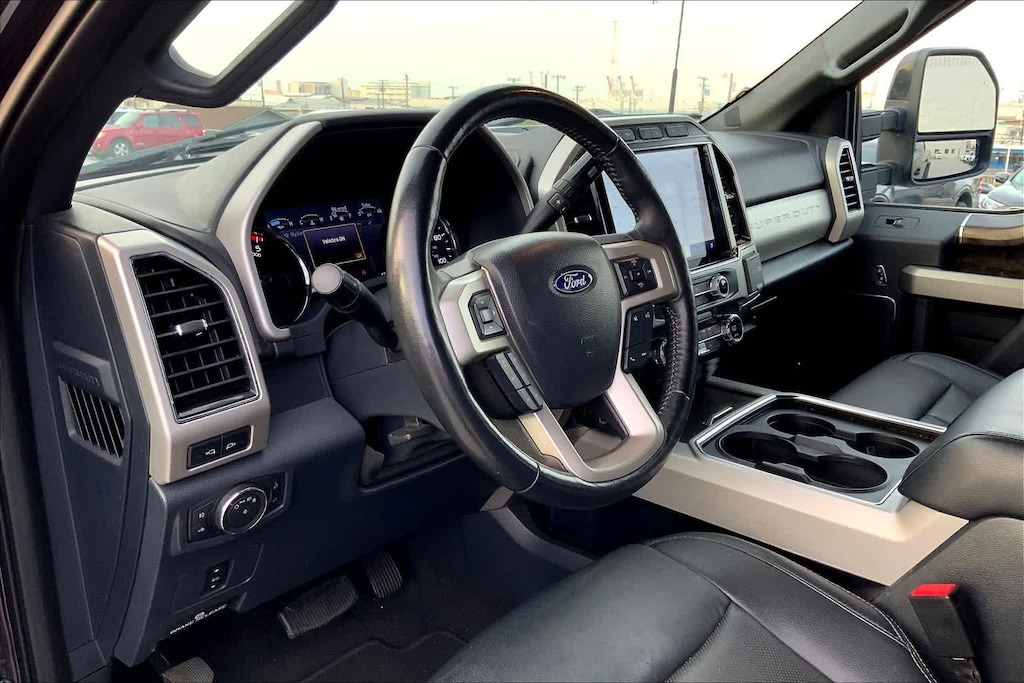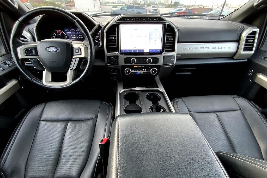 ENGINE: 6.7L 4V OHV POWER STROKE V8 TURBO DIESEL B20 manual push-button engine-exhaust braking and intelligent oil-life monitor, 240 Amp Alternator, 34 Gallon Fuel Tank, 3.31 Axle Ratio, Dual 78-AH 750 CCA Batteries, PRO TRAILER BACKUP ASSIST - HIGH CAPACITY Note: Salespersons Portfolio or Trailer Towing Guide should be consulted for specific trailer towing or camper limits and corresponding required equipment, axle ratios and model availability, See Supplemental Reference for vehicle height consideration, Ultimate Trailer Tow Camera System, rear view camera, 360 degree camera system, rear CHMSL camera, trailer reverse guidance and LED center high-mounted stop lamp, High Capacity Trailer Tow Package, increased GCW from 23,500 lbs, to 30,000 lbs and upgraded axle, Note: Salespersons Portfolio or Trailer Towing Guide should be consulted for specific trailer towing or camper limits and corresponding required equipment, axle ratios and model availability, See Supplemental Reference for vehicle height, TWIN PANEL POWER MOONROOF map lights and moonroof switches, WHEELS: 20 BRIGHT MACHINED CAST ALUMINUM magnetic painted pockets and bright hub covers/center ornaments, POWER-DEPLOYABLE RUNNING BOARDS, LARIAT VALUE PACKAGE Memory Power-Adjustable Pedals, Power Heated/Ventilated Driver Seat w/Memory, Remote Start System, PowerScope Trailer Tow Mirrors w/Memory, EASY ENTRY®/Exit Memory Drivers Seat Feature, LED Box Lighting, LED Center High-Mounted Stop Lamp (CHMSL), Power Heated/Ventilated Passenger Seat, ELECTRONIC-LOCKING W/3.55 AXLE RATIO, HEATED REAR SEATS, RAIN-SENSING WINDSHIELD WIPERS Heated Steering Wheel, UNIVERSAL GARAGE DOOR OPENER (UGDO), TRANSMISSION: TORQSHIFT 10-SPEED AUTOMATIC SelectShift and selectable drive modes: normal, tow/haul, eco, deep sand/snow and slippery, ADVANCED SECURITY PACK INCLINATION SENSOR REMOVAL Intrusion sensor removal, SecuriLock Passive Anti-Theft System (PATS). MP3 Player, Privacy Glass, Keyless Entry, Steering Wheel Controls, Child Safety Locks.