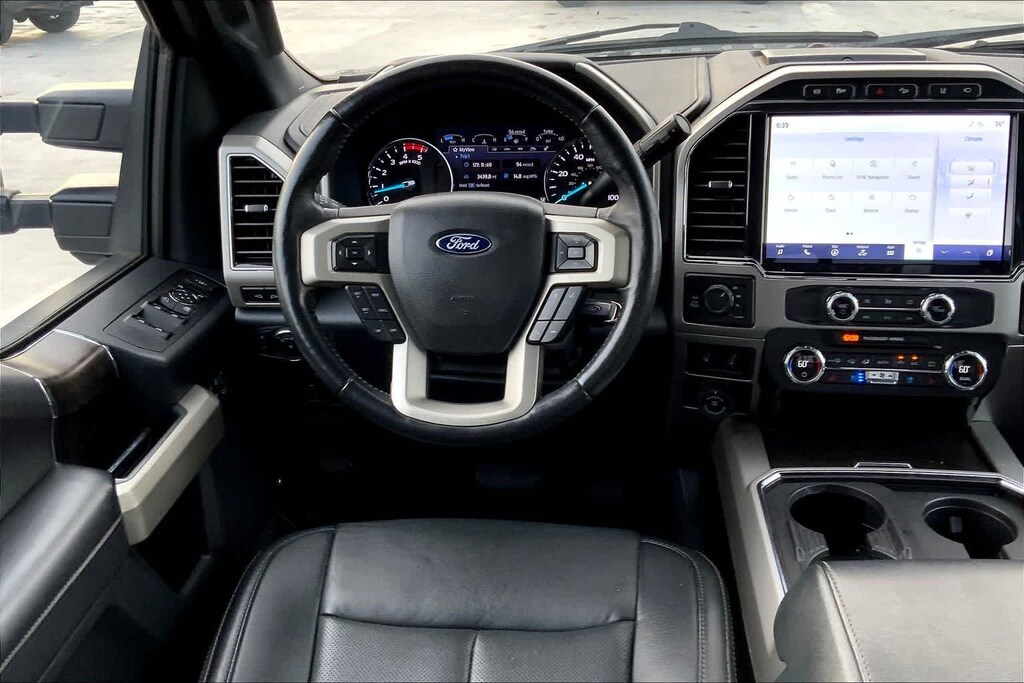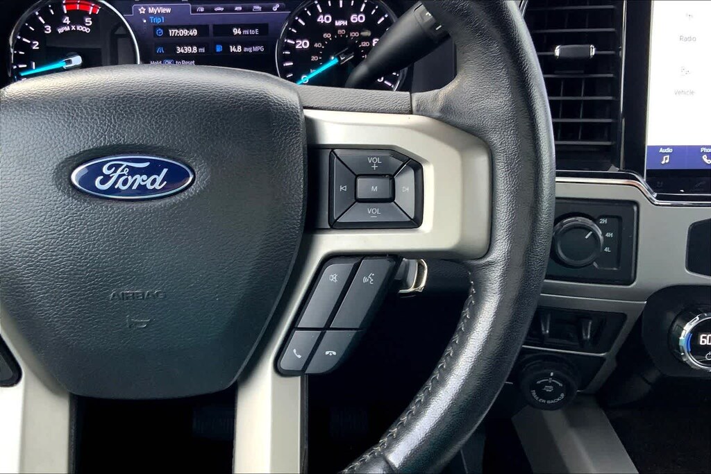 Leather Seats, Navigation, 4x4, Premium Sound System, Satellite Radio, iPod/MP3 Input, Onboard Communications System, Trailer Hitch, Dual Zone A/C, Apple CarPlay®, Cross-Traffic Alert, Blind Spot Monitor, WiFi Hotspot, Heated Leather Seats. Ford LARIAT with Agate Black exterior and Black interior features a 8 Cylinder Engine with 475 HP at 2600 RPM*.