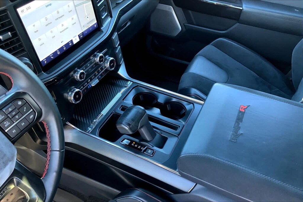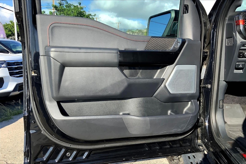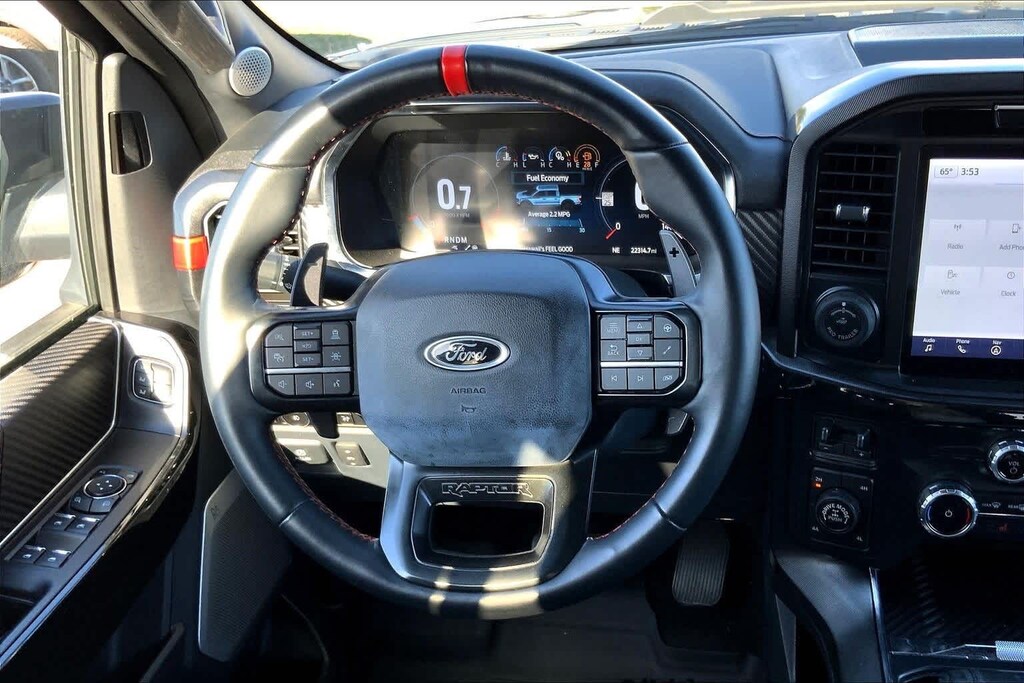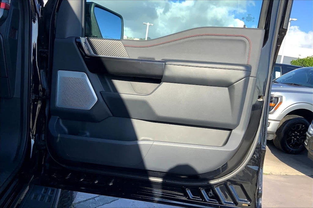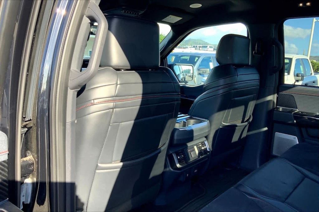 HONOLULU FORD! 808-532-1700, 4WD, 17 Cast Aluminum Wheels, 17 Forged Aluminum Bead-Lock Capable Wheels, 18 Speakers, 4-Wheel Disc Brakes, ABS brakes, Adaptive suspension, Adjustable pedals, Air Conditioning, Alloy wheels, AM/FM radio: SiriusXM with 360L, Auto High-beam Headlights, Auto Start-Stop Removal (DISC), Auto tilt-away steering wheel, Auto-dimming door mirrors, Auto-dimming Rear-View mirror, Automatic temperature control, Black Exterior Accents, Brake assist, Bumpers: body-color, Carbon Fiber Interior Appliques, Code Orange Stitching Doors & Instrument Panel, Code Orange Tow Hooks, Compass, Delay-off headlights, Driver door bin, Driver vanity mirror, Dual front impact airbags, Dual front side impact airbags, Electronic Locking w/4.10 Axle Ratio, Electronic Stability Control, Emergency communication system, Equipment Group 802A Raptor R, Exterior Parking Camera Rear, Front anti-roll bar, Front Bucket Seats, Front Center Armrest, Front dual zone A/C, Front fog lights, Front reading lights, Front wheel independent suspension, Fully automatic headlights, Garage door transmitter, GVWR: 7,300 lbs Payload Package, GVWR: 7,450 lbs Payload Package, Heated door mirrors, Heated front seats, Heated rear seats, Heated steering wheel, Illuminated entry, Inclination/Intrusion Sensor Removal, Interior Code Orange Raptor R Badging, Lane Departure Warning System, Leather Trim Seats w/Heated 2nd Row, Low tire pressure warning, Memory seat, Navigation system: Connected Navigation, Occupant sensing airbag, Outside temperature display, Overhead airbag, Overhead console, Panic alarm, Partitioned Lockable Fold-Flat Storage, Passenger door bin, Passenger vanity mirror, Pedal memory, Power door mirrors, Power driver seat, Power passenger seat, Power steering, Power windows, Radio data system, Radio: B&O Unleashed Sound System by Bang & Olufsen, Rain sensing wipers, Raptor 37 Graphics, Raptor 37 Graphics Delete, Raptor R Badge Tailgate Applique, Rear reading lights, Rear step bumper, Rear window defroster, Recaro Black w/Orange Stitching Front Seats, Remote keyless entry, Security system, Speed control, Speed-sensing steering, Split folding rear seat, Steering Wheel Heat Removal (DISC), Steering wheel memory, Steering wheel mounted audio controls, SYNC 4 w/Enhanced Voice Recognition, Tachometer, Telescoping steering wheel, Tilt steering wheel, Traction control, Trip computer, Turn signal indicator mirrors, Unique Hood Vent w/R Badge, Unique Raptor R Grille w/R Badge, Variably intermittent wipers, Ventilated front seats, Wheels: Unique 17 Forged Aluminum Bead-Lock Capable, 4WD. Recent Arrival! CARFAX One-Owner. Clean CARFAX. Agate Black Metallic 2023 Ford F-150 Raptor 4WD 10-Speed Automatic 5.2L V8