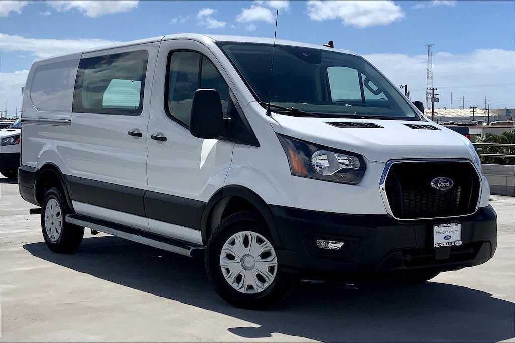 HONOLULU FORD! 808-532-1700, *DONT WAIT! CALL NOW!!, FINANCING AVAILABLE, GUARANTEED APPROVALS! LOW PAYMENTS! GREAT INTEREST RATES!, ***FORD CERTIFIED VEHICLE!! 172 POINT INSPECTION, OIL CHANGE, NEW WIPERS, NEW AIR FILTERS, FULL DET, WE SHIP TO NEIGHBOR ISLANDS!, 172 POINT INSPECTION BY FACTORY TRAINED TECHNICIANS!, STATE SAFETY INSPECTION COMPLETE!, ONE OWNER!!, ACCIDENT FREE CARFAX!, EXTRA CLEAN, WELL TAKEN CARE OF, EXCELLENT FUEL ECONOMY, EXCELLENT CONDITION!, EXCELLENT SERVICE HISTORY!!, ADAPTIVE CRUISE CONTROL, PARKING SENSORS, UPGRADED WHEELS, TOUCH SCREEN, 2 Additional Keys (4 Total), 3.73 Axle Ratio, 4 Speakers, 4-Wheel Disc Brakes, 6 Cargo Tie-Down Hooks, ABS brakes, Air Conditioning, AM/FM radio, AM/FM Stereo, Auto High-beam Headlights, Auto Start-Stop Delete, Brake assist, Chrome High-Intensity Discharge (HID) Headlamps, Cruise Control w/Adjustable Spd Limiting Device (ASLD), Dark Palazzo Gray Vinyl Bucket Seats, Delay-off headlights, Driver door bin, Drivers Seat Mounted Armrest, Dual front impact airbags, Dual front side impact airbags, Ebony Cloth Bucket Seats w/Armrests, Electronic Stability Control, Exterior Parking Camera Rear, Exterior Upgrade Package, Fixed Rr Cargo Door & 2nd Row Passenger-Side Glass, Front anti-roll bar, Front Bucket Seats, Front Fog Lamps, Front License Plate Bracket, Front reading lights, Front wheel independent suspension, Fully automatic headlights, Honeycomb Mesh Grille w/Chrome Surround, Illuminated entry, Low tire pressure warning, Occupant sensing airbag, Order Code 101A, Overhead airbag, Panic alarm, Passenger cancellable airbag, Passenger door bin, Passenger-Side B-Pillar Assist Handle, Power door mirrors, Power steering, Power windows, Radio: AM/FM Stereo w/SYNC 3, Rear-Window Defroster, Rearview Mirror, Remote keyless entry, Short-Arm Manual-Folding Power Adjust Mirrors, Steering wheel mounted audio controls, Tachometer, Telescoping steering wheel, Tilt steering wheel, Traction control, Variably intermittent wipers, Vinyl Front Bucket Seats, Wheels: 16 Silver Steel w/Black Hubcap, Wheels: 16 Steel w/Full Silver Cover, Wi-Fi 4G LTE Hotspot Delete, Wiper Activated Headlamps. Recent Arrival! CARFAX One-Owner. Clean CARFAX. Oxford White 2023 Ford Transit-250 Base RWD 10-Speed Automatic with Overdrive 3.5L V6 Flex Fuel