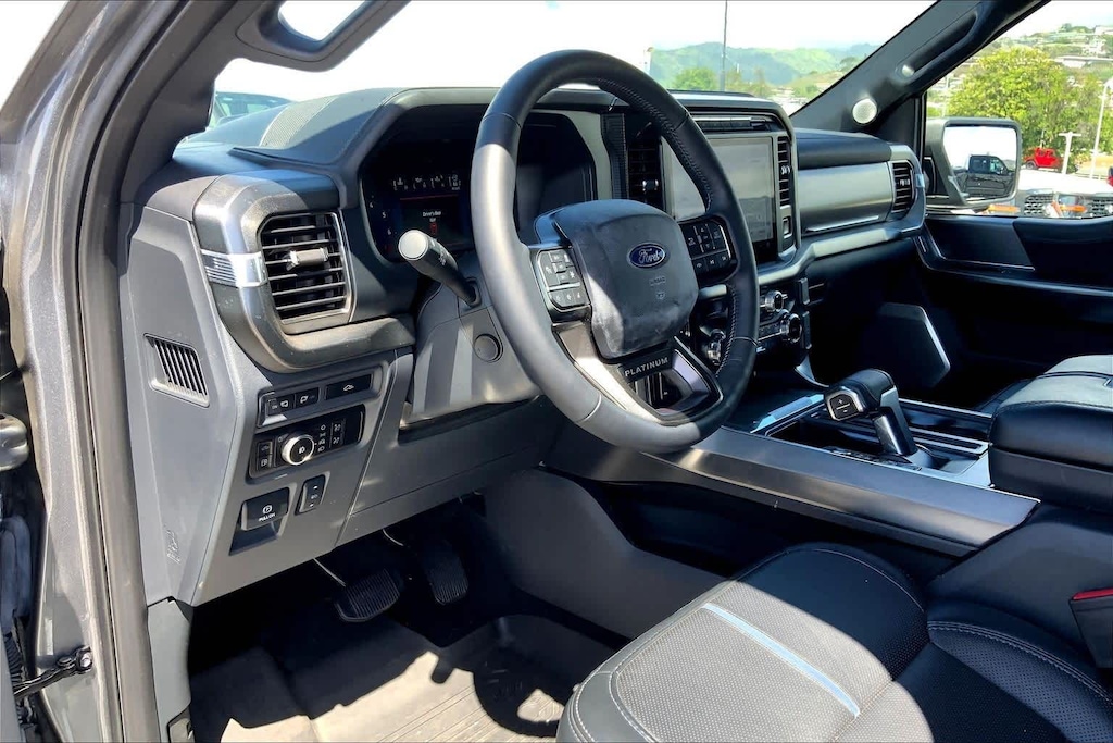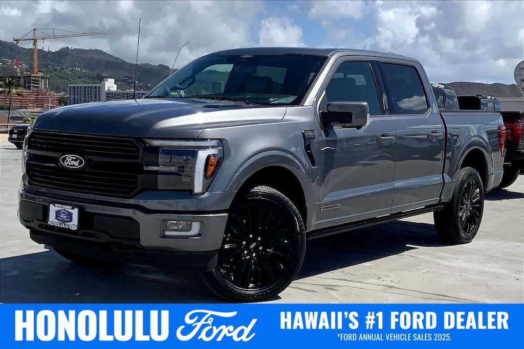 HONOLULU FORD! 808-532-1700, *DONT WAIT! CALL NOW!!, FINANCING AVAILABLE, GUARANTEED APPROVALS! LOW PAYMENTS! GREAT INTEREST RATES!, ***FORD CERTIFIED VEHICLE!! 172 POINT INSPECTION, OIL CHANGE, NEW WIPERS, NEW AIR FILTERS, FULL DET, WE SHIP TO NEIGHBOR ISLANDS!, 172 POINT INSPECTION BY FACTORY TRAINED TECHNICIANS!, STATE SAFETY INSPECTION COMPLETE!, APPLE CAR PLAY/ANDROID AUTO, BLUETOOTH HANDS FREE CALLING, ONE OWNER!!, ACCIDENT FREE CARFAX!, BACK-UP CAMERA, 360 SURROUND VISION CAMERA, EXTRA CLEAN, WELL TAKEN CARE OF, EXCELLENT CONDITION!, EXCELLENT SERVICE HISTORY!!, BLIND SPOT MONITOR, READY FOR YOU TO DRIVE HOME TODAY!, ADAPTIVE CRUISE CONTROL, PARKING SENSORS, UPGRADED WHEELS, TOUCH SCREEN, 3.5L PowerBoost Full-Hybrid V6, 4WD, 14 Speakers, 4-Wheel Disc Brakes, ABS brakes, Adjustable pedals, Air Conditioning, Alloy wheels, AM/FM radio: SiriusXM with 360L, Auto High-beam Headlights, Auto tilt-away steering wheel, Auto-dimming door mirrors, Auto-dimming Rear-View mirror, Automatic temperature control, Brake assist, Bumpers: body-color, Compass, Delay-off headlights, Driver door bin, Driver vanity mirror, Dual front impact airbags, Dual front side impact airbags, Electronic Locking w/3.55 Axle Ratio, Electronic Locking w/3.73 Axle Ratio, Electronic Stability Control, Emergency communication system: SYNC 4 911 Assist, Equipment Group 702A High, Front anti-roll bar, Front Bucket Seats, Front Center Armrest, Front dual zone A/C, Front fog lights, Front License Plate Bracket, Front reading lights, Front wheel independent suspension, Fully automatic headlights, Garage door transmitter, Heated door mirrors, Heated front seats, Heated rear seats, Heated steering wheel, Illuminated entry, Low tire pressure warning, Memory seat, Navigation system: Connected Navigation, Occupant sensing airbag, On-Board Scales w/Smart Hitch, Outside temperature display, Overhead airbag, Overhead console, Panic alarm, Passenger door bin, Passenger vanity mirror, Pedal memory, Power door mirrors, Power driver seat, Power passenger seat, Power steering, Power windows, Radio data system, Rain sensing wipers, Rear reading lights, Rear seat center armrest, Rear step bumper, Rear window defroster, Remote keyless entry, Retractable Rear Center Step, Retractable Tonneau Pickup Box Cover, Security system, Speed control, Split folding rear seat, Steering wheel memory, Steering wheel mounted audio controls, SYNC 4 w/Enhanced Voice Recognition, Tachometer, Telescoping steering wheel, Tilt steering wheel, Tough Bed Spray-In Bedliner, Traction control, Tray Style Floor Liner, Trip computer, Turn signal indicator mirrors, Unique Multi-Contour Leather Bucket Seats, Variably intermittent wipers, Ventilated front seats, Voltmeter, Wheel Well Liner, Wheels: 20 Painted Gloss Ebony Black, 3.5L PowerBoost Full-Hybrid V6, 4WD. Recent Arrival! CARFAX One-Owner. Clean CARFAX. Gray Metallic 2024 Ford F-150 Platinum 4WD 10-Speed Automatic 3.5L PowerBoost Full-Hybrid V6