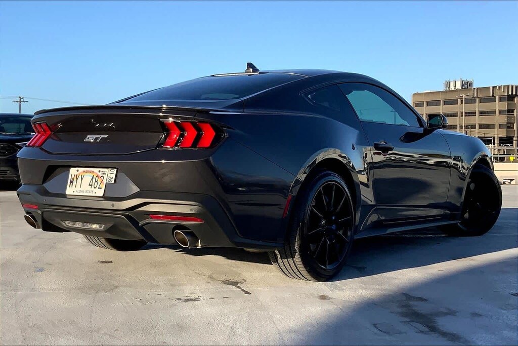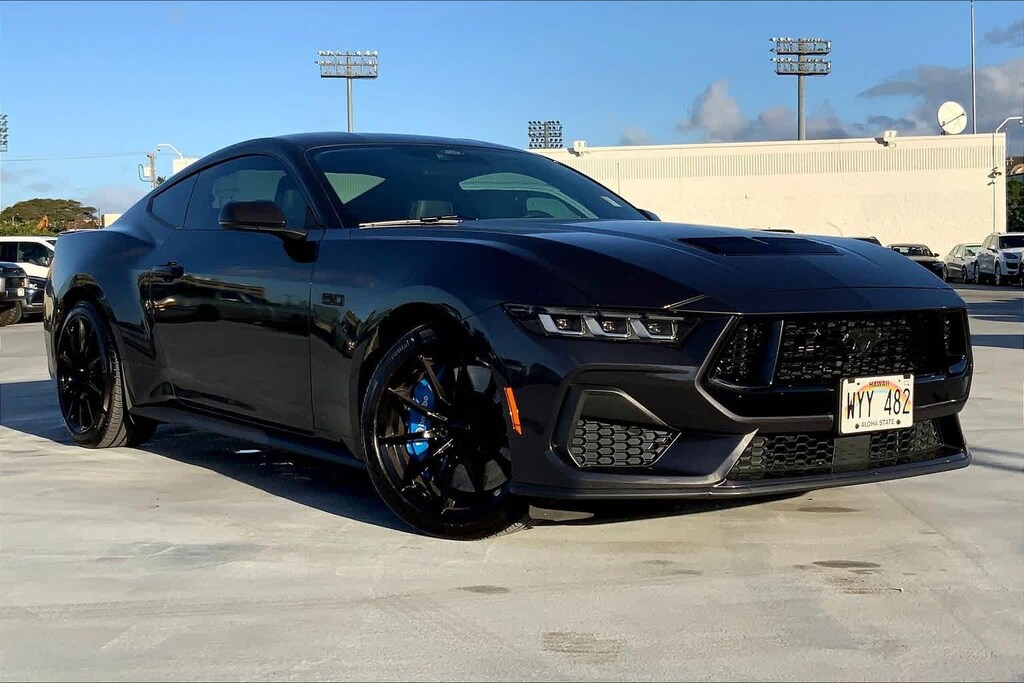HONOLULU FORD! 808-532-1700, *DONT WAIT! CALL NOW!!, FINANCING AVAILABLE, GUARANTEED APPROVALS! LOW PAYMENTS! GREAT INTEREST RATES!, ***FORD CERTIFIED VEHICLE!! 172 POINT INSPECTION, OIL CHANGE, NEW WIPERS, NEW AIR FILTERS, FULL DET, WE SHIP TO NEIGHBOR ISLANDS!, 172 POINT INSPECTION BY FACTORY TRAINED TECHNICIANS!, STATE SAFETY INSPECTION COMPLETE!, APPLE CAR PLAY/ANDROID AUTO, BLUETOOTH HANDS FREE CALLING, ONE OWNER!!, ACCIDENT FREE CARFAX!, EXTRA CLEAN, WELL TAKEN CARE OF, EXCELLENT FUEL ECONOMY, PREMIUM WHEELS, EXCELLENT CONDITION!, EXCELLENT SERVICE HISTORY!!, BLIND SPOT MONITOR, READY FOR YOU TO DRIVE HOME TODAY!, ADAPTIVE CRUISE CONTROL, PARKING SENSORS, UPGRADED WHEELS, TOUCH SCREEN, 19 Branded Brake System w/Performance Linings, 4-Wheel Disc Brakes, ABS brakes, Air Conditioning, Alloy wheels, AM/FM Stereo, Auto High-beam Headlights, Automatic temperature control, Brake assist, Bumpers: body-color, Compass, Delay-off headlights, Driver door bin, Driver vanity mirror, Dual front impact airbags, Dual front side impact airbags, Electronic Stability Control, Emergency communication system: 911 Assist, Equipment Group 401A High Package, Exterior Parking Camera Rear, Ford Co-Pilot360 Assist+, Four wheel independent suspension, Front anti-roll bar, Front Bucket Seats, Front Center Armrest, Front reading lights, Fully automatic headlights, Grabber Blue Brake Calipers w/White Logo, Illuminated Door-Sill Scuff Plates, Illuminated entry, Knee airbag, Leather Shift Knob, Leather steering wheel, Low tire pressure warning, Occupant sensing airbag, Outside temperature display, Overhead airbag, Overhead console, Panic alarm, Passenger door bin, Passenger vanity mirror, Power door mirrors, Power steering, Power windows, Premium Floor Liners Front & Rear (w/Carpet Mats), Radio data system, Rain sensing wipers, Rear anti-roll bar, Rear Parking Sensors, Rear window defroster, Remote keyless entry, Security Package, Speed control, Speed-sensing steering, Speed-Sensitive Wipers, Split folding rear seat, Spoiler, Sport steering wheel, Steering wheel mounted audio controls, SYNC 4.0 QNX, Tachometer, Telescoping steering wheel, Tilt steering wheel, Traction control, Trip computer, Variably intermittent wipers, Voltmeter, Wheels: 19 x 8.5 Shadow Silver-Painted Aluminum. Recent Arrival! Dark Matter Gray Metallic 2024 Ford Mustang GT Premium RWD 10-Speed Automatic 5.0L V8 Ti-VCT