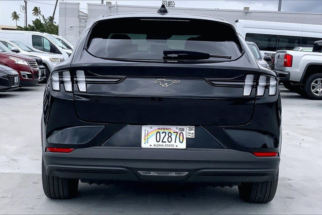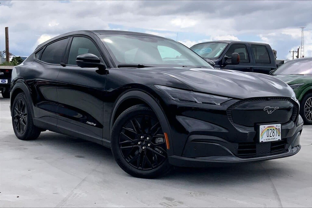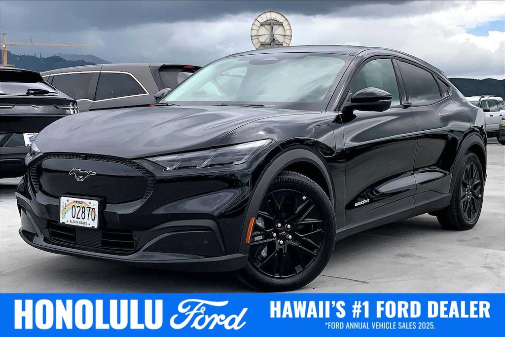 HONOLULU FORD! 808-532-1700, *DONT WAIT! CALL NOW!!, FINANCING AVAILABLE, GUARANTEED APPROVALS! LOW PAYMENTS! GREAT INTEREST RATES!, ***FORD CERTIFIED VEHICLE!! 172 POINT INSPECTION, OIL CHANGE, NEW WIPERS, NEW AIR FILTERS, FULL DET, WE SHIP TO NEIGHBOR ISLANDS!, 172 POINT INSPECTION BY FACTORY TRAINED TECHNICIANS!, STATE SAFETY INSPECTION COMPLETE!, APPLE CAR PLAY/ANDROID AUTO, BLUETOOTH HANDS FREE CALLING, ONE OWNER!!, ACCIDENT FREE CARFAX!, *LEATHER SEATS*, *HEATED SEATS, WELL TAKEN CARE OF, EXCELLENT FUEL ECONOMY, PREMIUM WHEELS, EXCELLENT CONDITION!, EXCELLENT SERVICE HISTORY!!, ADAPTIVE CRUISE CONTROL, PARKING SENSORS, UPGRADED WHEELS, TOUCH SCREEN, 4-Wheel Disc Brakes, 6 Speakers, ABS brakes, ActiveX Bucket Seats, Air Conditioning, Alloy wheels, AM/FM radio: SiriusXM with 360L, AM/FM Stereo, Apple CarPlay/Android Auto, Auto High-beam Headlights, Auto-dimming Rear-View mirror, Automatic temperature control, Brake assist, Bumpers: body-color, Compass, Delay-off headlights, Driver door bin, Driver vanity mirror, Dual front impact airbags, Dual front side impact airbags, Electronic Stability Control, Emergency communication system: 911 Assist, Equipment Group 100A Standard Package, Exterior Parking Camera Rear, Four wheel independent suspension, Front anti-roll bar, Front Bucket Seats, Front Center Armrest, Front dual zone A/C, Front License Plate Bracket, Front reading lights, Fully automatic headlights, Garage door transmitter, Heated door mirrors, Illuminated entry, Internet access capable: FordPass Connect, Knee airbag, Low tire pressure warning, Mobile Power Cord (120V/240V), Navigation system: Connected Navigation, Occupant sensing airbag, Outside temperature display, Overhead airbag, Overhead console, Panic alarm, Passenger door bin, Passenger vanity mirror, Power door mirrors, Power driver seat, Power steering, Power windows, Radio data system, Rain sensing wipers, Rear anti-roll bar, Rear seat center armrest, Rear side impact airbag, Rear window defroster, Rear window wiper, Remote keyless entry, Security system, SiriusXM w/360L, Speed control, Speed-sensing steering, Speed-Sensitive Wipers, Split folding rear seat, Spoiler, Steering wheel mounted audio controls, SYNC 4A w/Enhanced Voice Recognition, Telescoping steering wheel, Tilt steering wheel, Traction control, Trip computer, Turn signal indicator mirrors, Variably intermittent wipers, Wheels: 19 Machined-Face Aluminum, Wheels: 19 Monochromatic High Gloss Black-Painted. Recent Arrival! CARFAX One-Owner. Shadow Black 2025 Ford Mustang Mach-E Select RWD Single-Speed Automatic Electric Motor