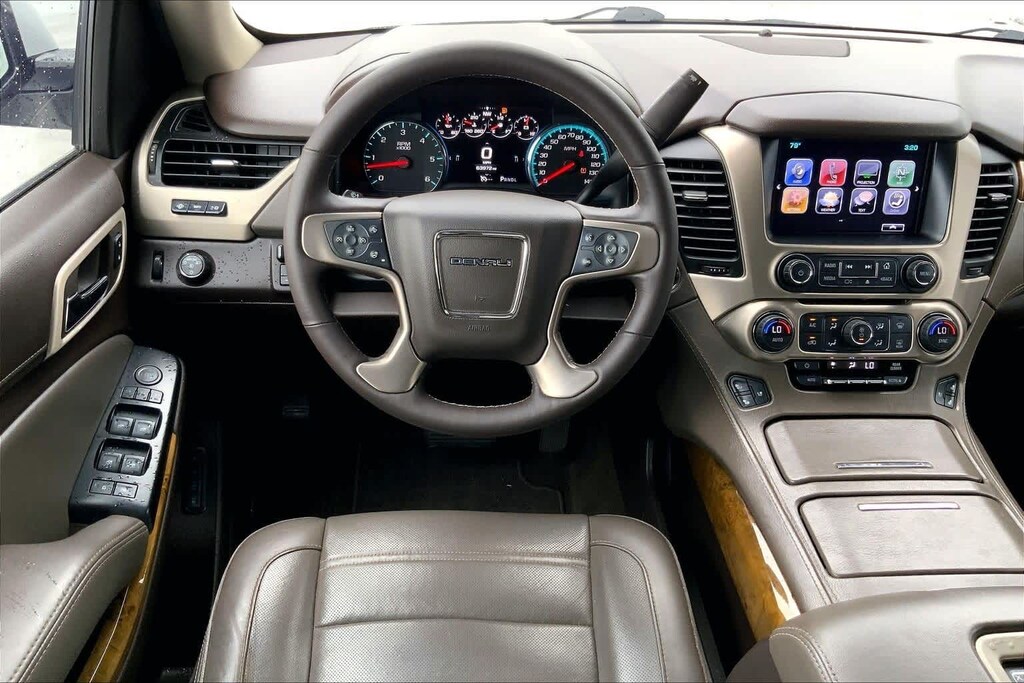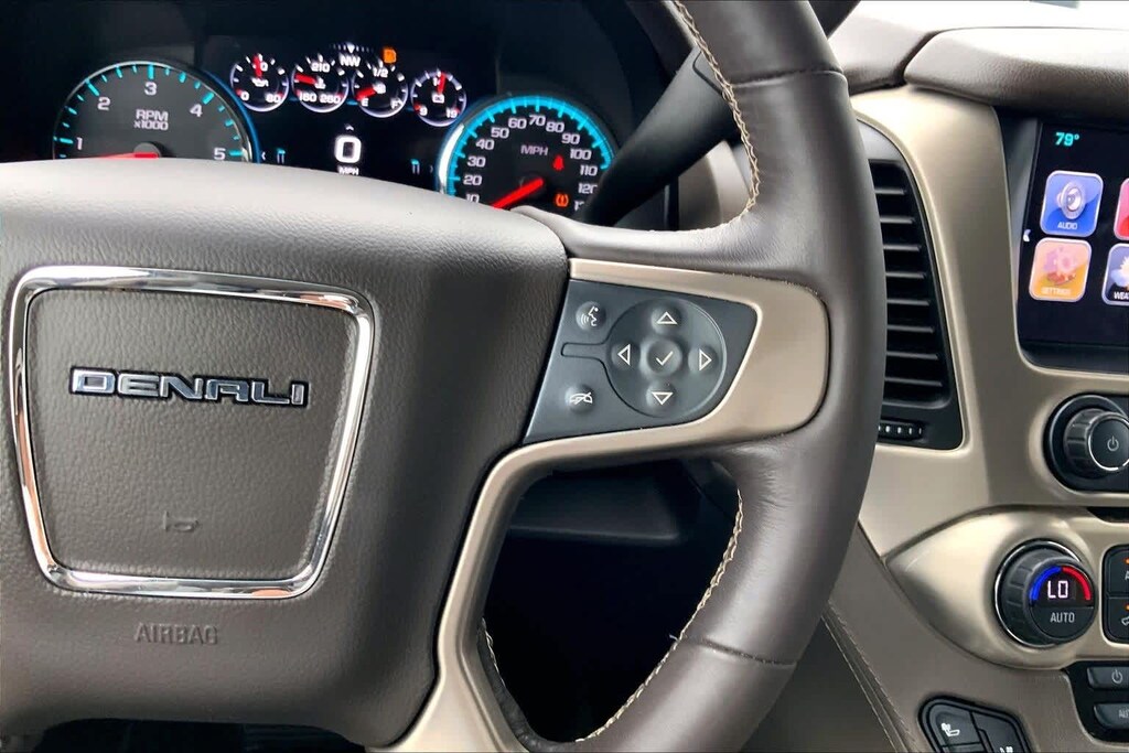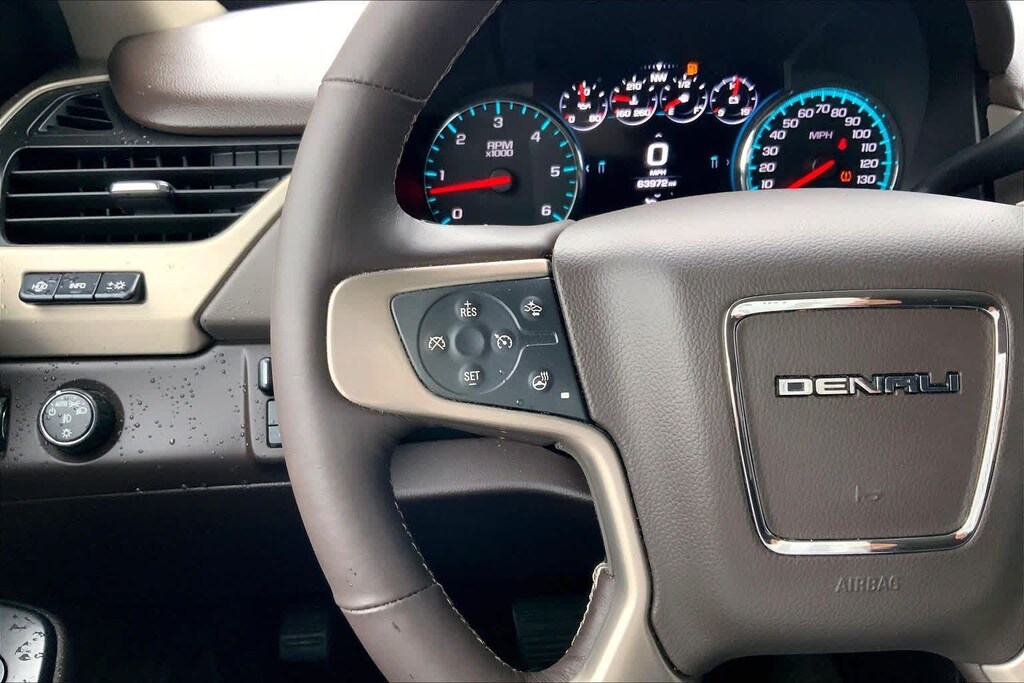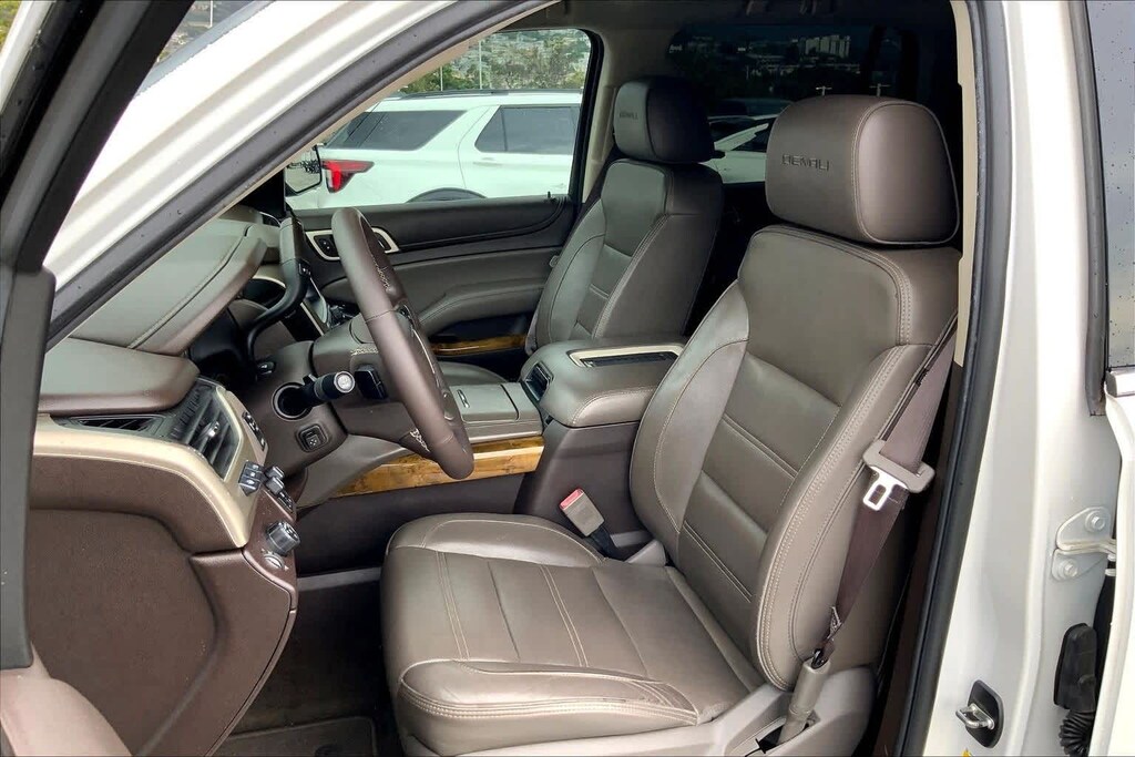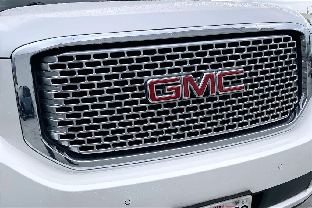 Leather Seats, Third Row Seat, Quad Bucket Seats, Power Liftgate, Rear Air, Heated Driver Seat, Heated Rear Seat, Cooled Driver Seat, Back-Up Camera, Running Boards, Premium Sound System, Onboard Communications System, Trailer Hitch, Remote Engine Start, Dual Zone A/C. GMC Denali with White Frost Tricoat exterior and Cocoa/Dark Atmosphere interior features a 8 Cylinder Engine with 420 HP at 5600 RPM*.