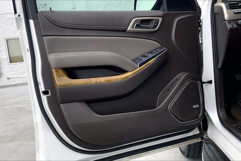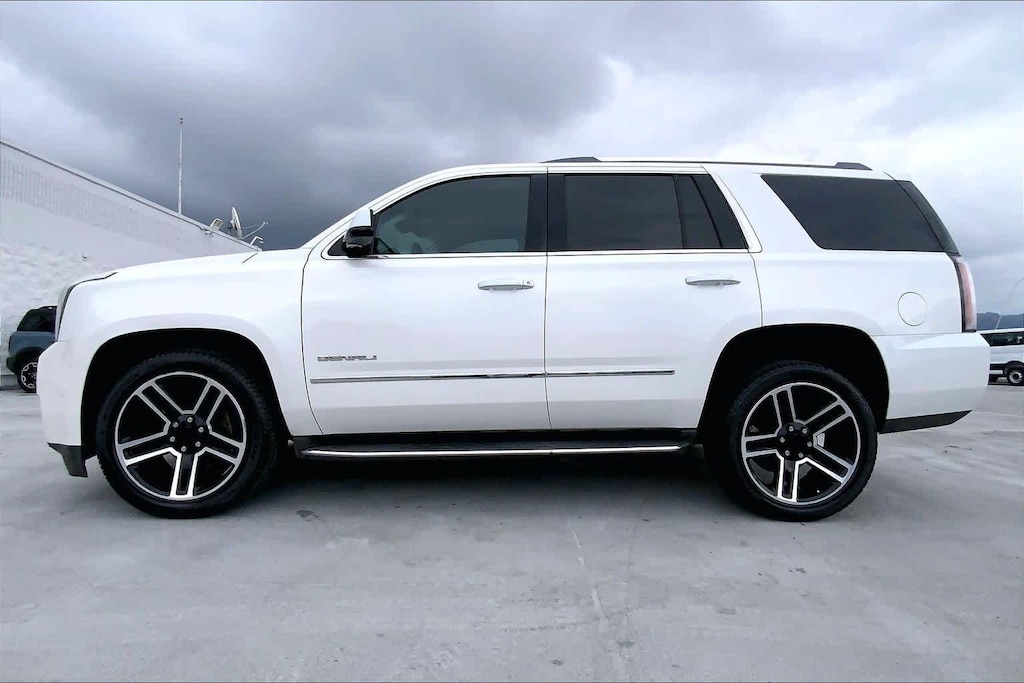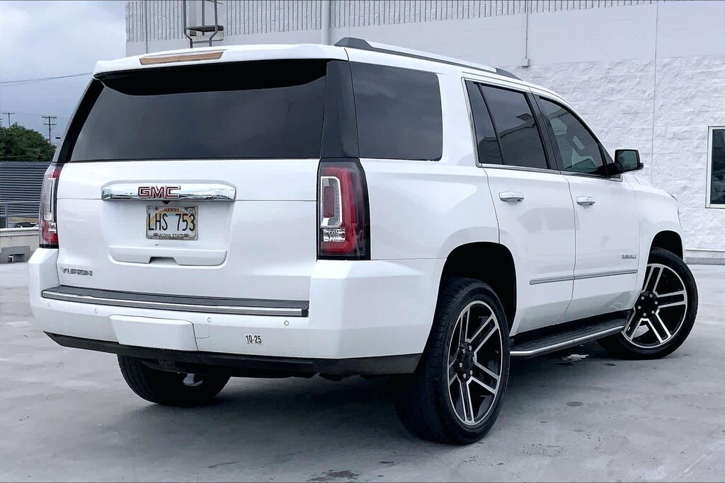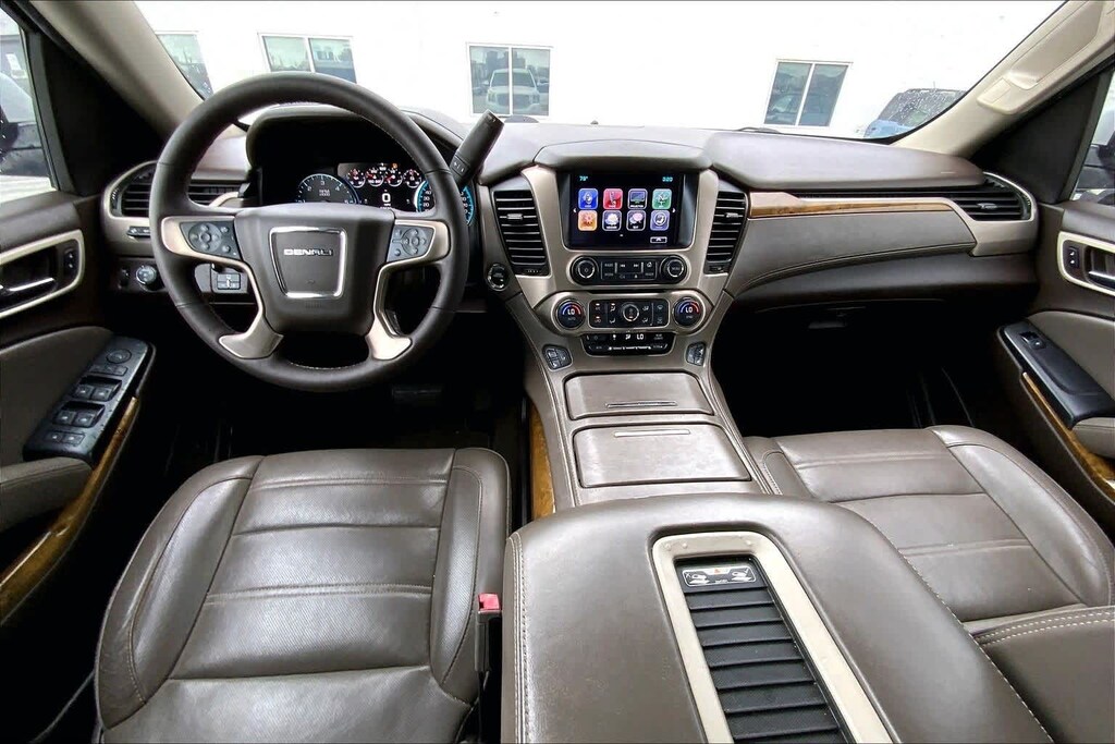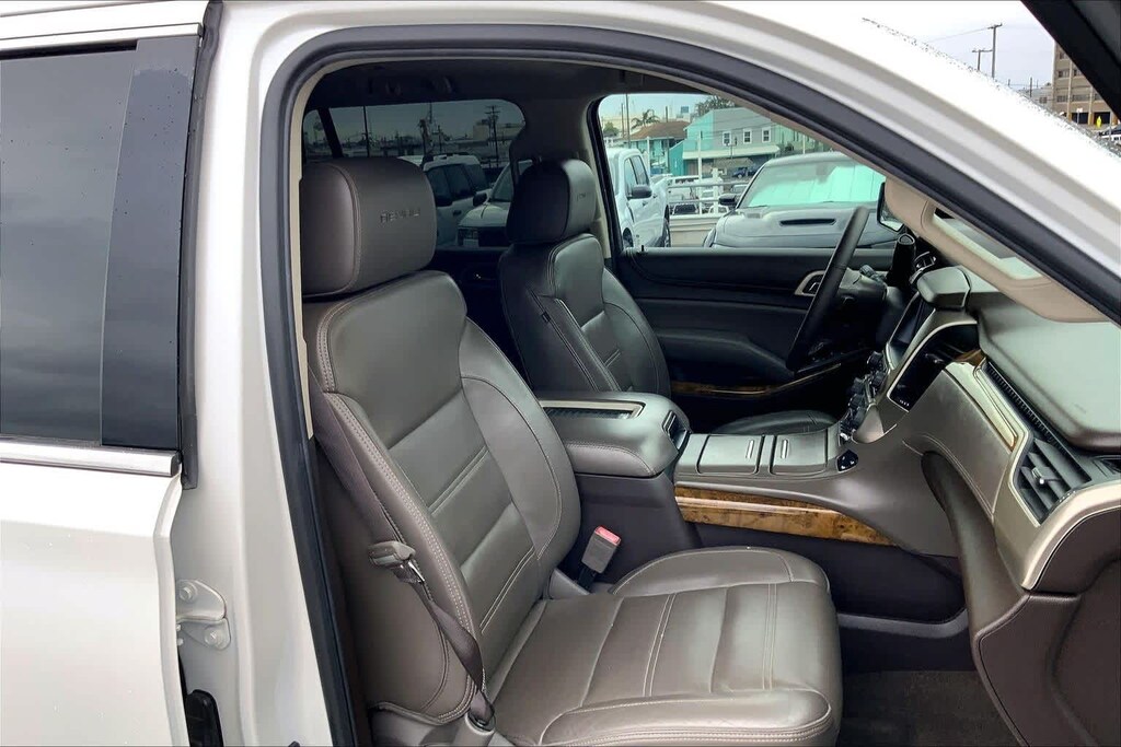 Leather Seats, Third Row Seat, Quad Bucket Seats, Power Liftgate, Rear Air, Heated Driver Seat, Heated Rear Seat, Cooled Driver Seat, Back-Up Camera, Running Boards, Premium Sound System, Onboard Communications System, Trailer Hitch, Remote Engine Start, Dual Zone A/C. GMC Denali with White Frost Tricoat exterior and Cocoa/Dark Atmosphere interior features a 8 Cylinder Engine with 420 HP at 5600 RPM*.