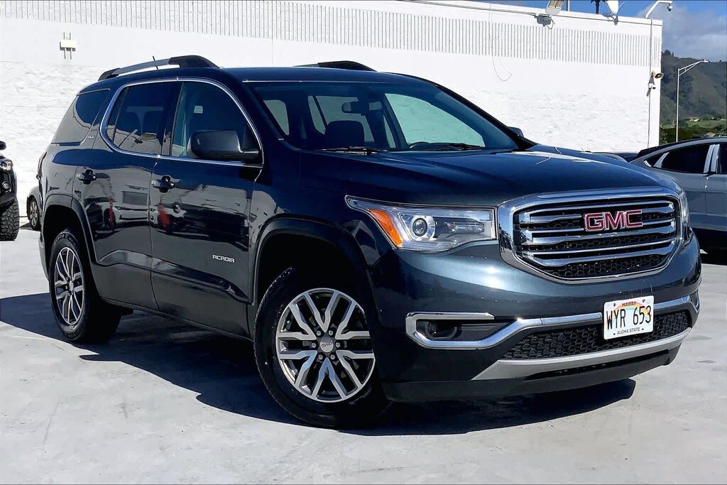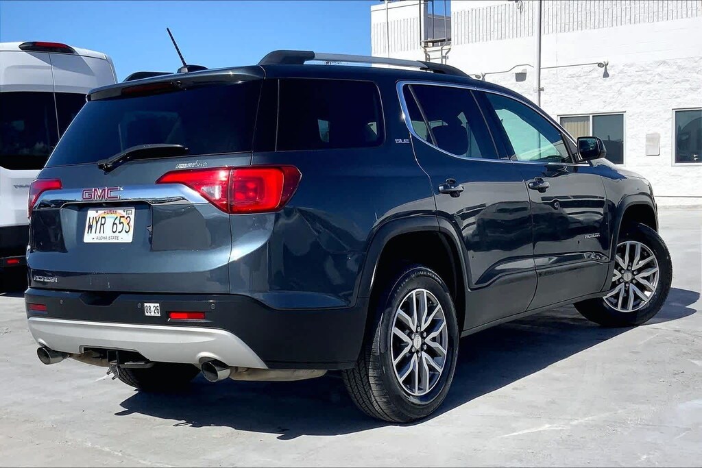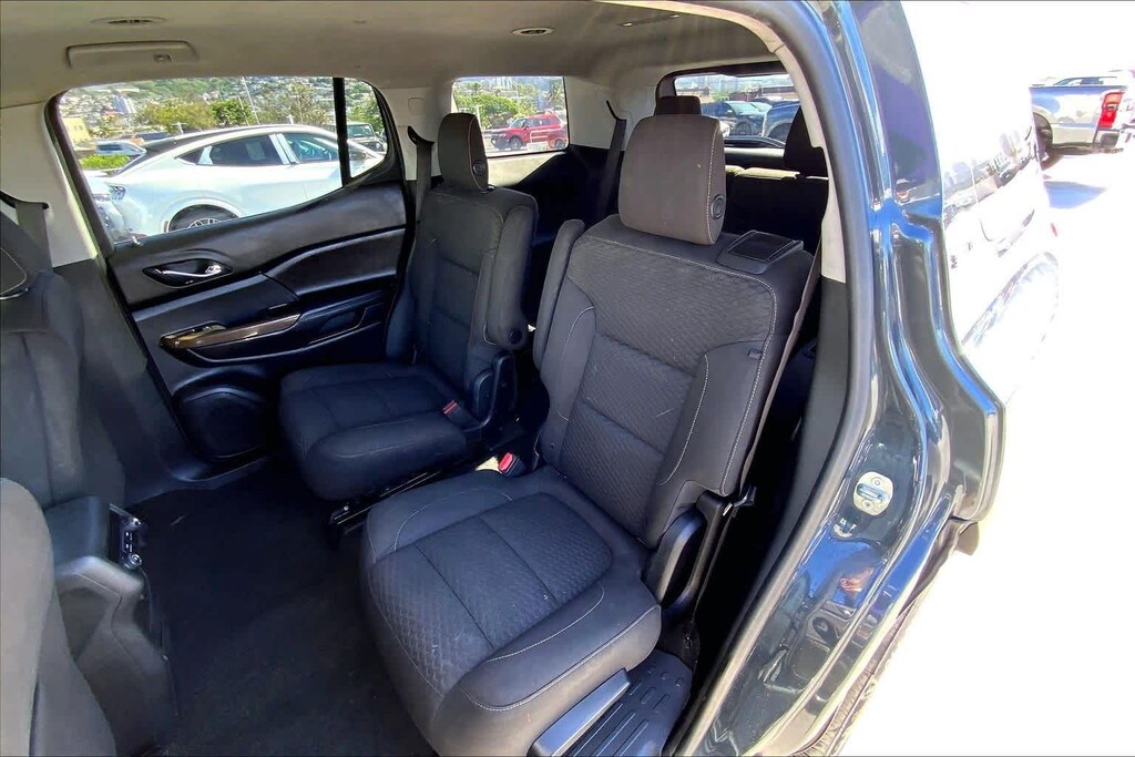 HONOLULU FORD! 808-532-1700, *DONT WAIT! CALL NOW!!, FINANCING AVAILABLE, GUARANTEED APPROVALS! LOW PAYMENTS! GREAT INTEREST RATES!, WE SHIP TO NEIGHBOR ISLANDS!, 172 POINT INSPECTION BY FACTORY TRAINED TECHNICIANS!, STATE SAFETY INSPECTION COMPLETE!, APPLE CAR PLAY/ANDROID AUTO, BLUETOOTH HANDS FREE CALLING, ACCIDENT FREE CARFAX!, BACK-UP CAMERA, EXTRA CLEAN, WELL TAKEN CARE OF, EXCELLENT FUEL ECONOMY, PREMIUM WHEELS, EXCELLENT CONDITION!, EXCELLENT SERVICE HISTORY!!, BLIND SPOT MONITOR, READY FOR YOU TO DRIVE HOME TODAY!, ADAPTIVE CRUISE CONTROL, PARKING SENSORS, UPGRADED WHEELS, TOUCH SCREEN, FWD, Jet Black Cloth, 155 Amp Alternator, 18 x 7.5 Aluminum (4) Wheels, 3rd row seats: split-bench, 4-Wheel Disc Brakes, 6 Speakers, 6-Passenger (2-2-2 Seating Configuration), 6-Speaker Audio System Feature, ABS brakes, Air Conditioning, Alloy wheels, AM/FM radio: SiriusXM, Apple CarPlay/Android Auto, Automatic temperature control, Brake assist, Bumpers: body-color, Compass, Delay-off headlights, Driver Alert Package I, Driver door bin, Driver vanity mirror, Dual front impact airbags, Dual front side impact airbags, Electronic Stability Control, Emergency communication system: OnStar and GMC connected services capable, Exterior Parking Camera Rear, Four wheel independent suspension, Front anti-roll bar, Front Bucket Seats, Front Center Armrest, Front dual zone A/C, Front fog lights, Front License Plate Bracket, Front reading lights, Fully automatic headlights, Heated door mirrors, Heated Driver & Front Passenger Seats, Heated front seats, Illuminated entry, Knee airbag, Lane Change Alert w/Side Blind Zone Alert, Low tire pressure warning, Occupant sensing airbag, Outside temperature display, Overhead airbag, Overhead console, Panic alarm, Passenger door bin, Passenger vanity mirror, Power door mirrors, Power driver seat, Power Liftgate, Power steering, Power windows, Preferred Equipment Group 3SB, Premium audio system: GMC Infotainment System, Premium Cloth Seat Trim, Radio data system, Radio: AM/FM w/7 Diagonal Color Touch Screen, Rear air conditioning, Rear anti-roll bar, Rear Cross Traffic Alert, Rear Park Assist, Rear reading lights, Rear window defroster, Rear window wiper, Remote keyless entry, Roof rack: rails only, Security system, SiriusXM Radio, Speed control, Speed-sensing steering, Spoiler, Steering wheel mounted audio controls, Stop-Start Engine Control System, Tachometer, Telescoping steering wheel, Tilt steering wheel, Traction control, Trip computer, Variably intermittent wipers, Voltmeter, FWD, Jet Black Cloth. Recent Arrival! Clean CARFAX. Dark Sky Metallic 2019 GMC Acadia SLE-2 FWD 6-Speed Automatic 3.6L V6 SIDI