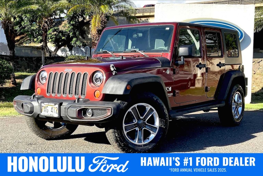 HONOLULU FORD! 808-532-1700, *DONT WAIT! CALL NOW!!, FINANCING AVAILABLE, GUARANTEED APPROVALS! LOW PAYMENTS! GREAT INTEREST RATES!, WE SHIP TO NEIGHBOR ISLANDS!, ACCIDENT FREE CARFAX!, EXTRA CLEAN, OFF ROAD WHEELS AND TIRES, AS-IS, WHOLESALE TO THE PUBLIC! MECHANICS SPECIAL!, EXCELLENT CONDITION!, EXCELLENT SERVICE HISTORY!!, UPGRADED WHEELS, 4WD, 16 x 7.0 Aluminum Wheels, 16 x 7.0 Luxury Styled Steel Wheels, 17 x 7.5 Aluminum Wheels, 4-Wheel Disc Brakes, 6 Speakers, ABS brakes, Air Conditioning, AM/FM 6 Disc DVD MP3, AM/FM CD/MP3 Radio, AM/FM radio, Anti-Spin Differential Rear Axle, Brake assist, CD player, Cigar Lighter, Class II Receiver Hitch, Cloth Low-Back Bucket Seats, Deep Tint Sunscreen Windows, Driver door bin, Dual front impact airbags, Easy Folding SoftTop, Electronic Stability Control, Fog Lamps, Front & Rear Floor Mats, Front anti-roll bar, Front Bucket Seats, Front Center Armrest, Heavy Duty Suspension w/Gas Shocks, Integrated roll-over protection, Leather Wrapped Steering Wheel, Manufacturers Statement of Origin, Normal Duty Suspension, Occupant sensing airbag, Passenger door bin, Power Convenience Group, Power Locks, Power steering, Power Windows w/Driver & Front Passenger 1-Touch, Quick Order Package 24S, Radio data system, Rear anti-roll bar, Remote Keyless Entry, Removable Ash Tray, Security Alarm, Smokers Group, Spare Tire Cover, Speed Control, Split folding rear seat, Tachometer, Temperature & Compass Gauge, Tilt steering wheel, Tow Hooks (2 front/1 rear), Traction control, Trailer Tow Group, Trailer Tow w/4-Pin Connector Wiring, Trip computer, Variably intermittent wipers, 4WD. Recent Arrival! Clean CARFAX. Red Rock Crystal Pearlcoat 2007 Jeep Wrangler Unlimited X 4WD 4-Speed Automatic VLP 3.8L V6 SMPI