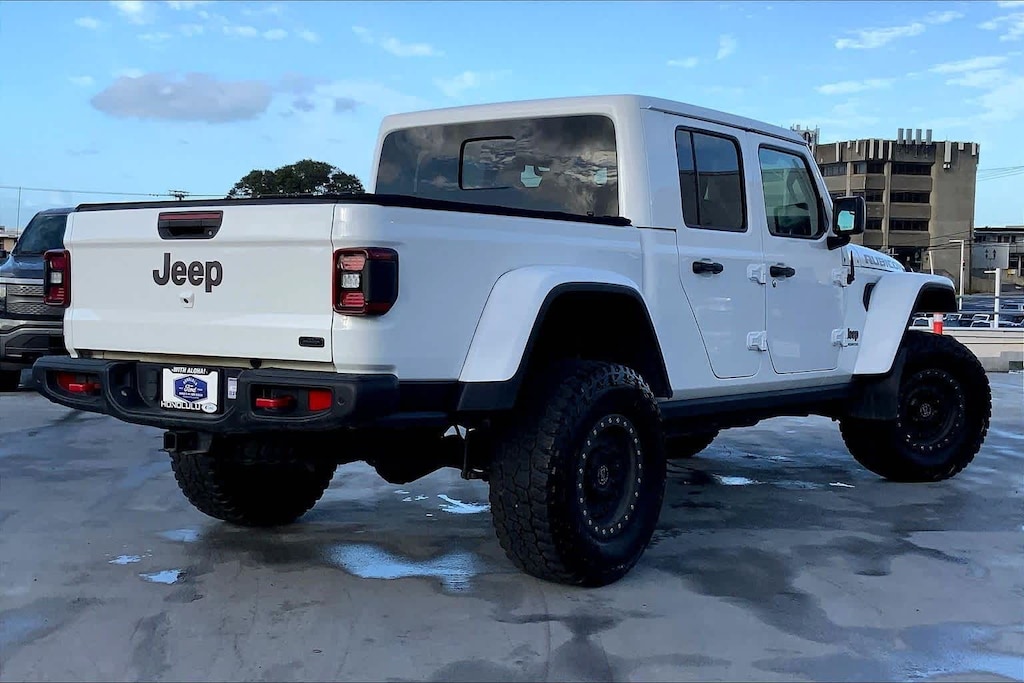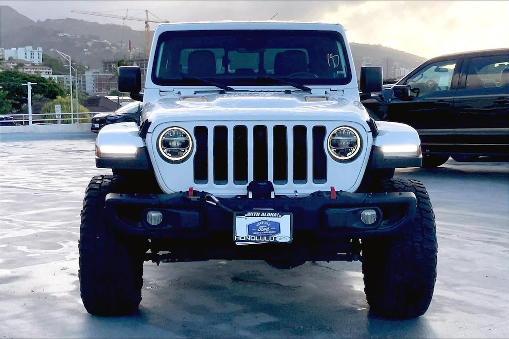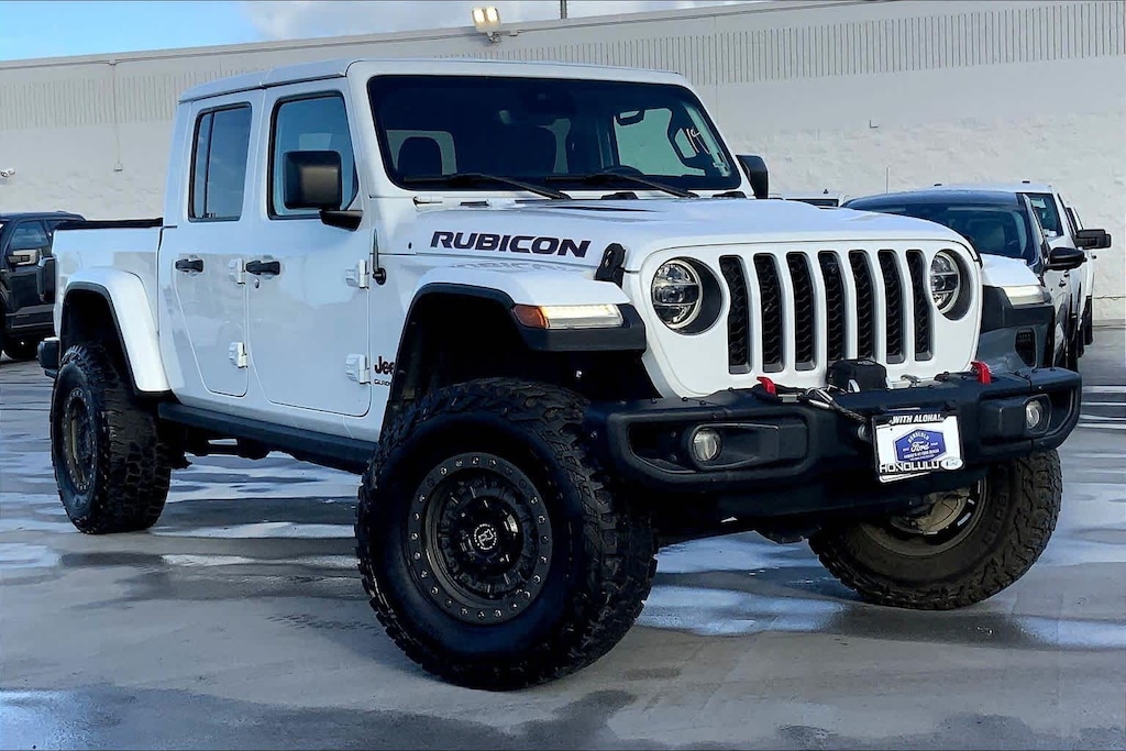 HONOLULU FORD! 808-532-1700, *DONT WAIT! CALL NOW!!, FINANCING AVAILABLE, GUARANTEED APPROVALS! LOW PAYMENTS! GREAT INTEREST RATES!, ***FORD CERTIFIED VEHICLE!! 172 POINT INSPECTION, OIL CHANGE, NEW WIPERS, NEW AIR FILTERS, FULL DET, WE SHIP TO NEIGHBOR ISLANDS!, 172 POINT INSPECTION BY FACTORY TRAINED TECHNICIANS!, STATE SAFETY INSPECTION COMPLETE!, APPLE CAR PLAY/ANDROID AUTO, BLUETOOTH HANDS FREE CALLING, ONE OWNER!!, ACCIDENT FREE CARFAX!, *DRIVER AWARENESS PACKAGE*, *LEATHER SEATS*, LIFTED/LIFT/LIFT KIT, BACK-UP CAMERA, EXTRA CLEAN, WELL TAKEN CARE OF, EXCELLENT FUEL ECONOMY, OFF ROAD WHEELS AND TIRES, EXCELLENT CONDITION!, EXCELLENT SERVICE HISTORY!!, ADAPTIVE CRUISE CONTROL, UPGRADED WHEELS, TOUCH SCREEN, 1-Year SiriusXM Guardian Trial, 240 Amp Alternator, 4-Wheel Disc Brakes, 4.10 Rear Axle Ratio, 5-Year SiriusXM Traffic Service, 5-Year SiriusXM Travel Link Service, 700 Amp Maintenance Free Battery, 8 Speakers, 8.4 Radio & Premium Audio Group, 97 mph Maximum Speed Calibration, ABS brakes, Advanced Brake Assist, Advanced Safety Group, Air Conditioning, Alloy wheels, Alpine Premium Audio System, AM/FM radio: SiriusXM, Apple CarPlay/Android Auto, Auto-Dimming Rear-View Mirror, Automatic temperature control, Auxiliary Switch Group, Auxiliary Switches, Blind Spot & Cross Path Detection, Bluetooth Wireless Speaker, Body Color 3-Piece Hard Top, Body Color Fender Flares (2-Piece), Brake assist, Cargo Group w/Trail Rail System, Class IV Hitch Receiver, Cold Weather Group, Compass, Daytime Running Lamps LED Accents, Delay-off headlights, Driver door bin, Driver vanity mirror, Dual front impact airbags, Dual front side impact airbags, Electronic Stability Control, Emergency/Assistance Call, Exterior 115V AC Outlet, For Details, Visit DriveUconnect.com, Freedom Panel Storage Bag, Front anti-roll bar, Front Bucket Seats, Front Center Armrest w/Storage, Front dual zone A/C, Front fog lights, Front LED Fog Lamps, Front reading lights, Full Speed Forward Collision Warning Plus, Fully automatic headlights, Garage door transmitter, Hardtop Headliner, HD Radio, Heated door mirrors, Heated Front Seats, Heated Steering Wheel, Heavy-Duty Engine Cooling, Illuminated entry, Integrated Off-Road Camera, Integrated roll-over protection, Leather steering wheel, LED Lighting Group, LED Park Turn Lamps, LED Reflector Headlamps, LED Taillamps, Lockable Rear Underseat Storage, Low tire pressure warning, No Soft Top, Occupant sensing airbag, Outside temperature display, Panic alarm, ParkSense Rear Park Assist System, ParkView Rear Back-Up Camera, Passenger door bin, Passenger vanity mirror, Performance Suspension, Power door mirrors, Power steering, Power windows, Premium Cloth Low-Back Bucket Seats, Radio data system, Radio: Uconnect 4 w/7 Display, Radio: Uconnect 4C Nav w/8.4 Display, Rear anti-roll bar, Rear reading lights, Rear Sliding Window, Rear Window Defroster, Remote keyless entry, Remote Proximity Keyless Entry, Remote Start System, Roll-Up Tonneau Cover, Safety Group, Security system, SiriusXM Traffic Plus, SiriusXM Travel Link, Speed control, Split folding rear seat, Spray In Bedliner, Steel Front Bumper, Steering wheel mounted audio controls, Tachometer, Telescoping steering wheel, Tilt steering wheel, Traction control, Trailer Hitch Zoom, Trailer Tow Package, Trip computer, Variably intermittent wipers, Voltmeter, Wheels: 17 x 7.5 Granite Crystal Aluminum. Clean CARFAX. Bright White Clearcoat 2020 Jeep Gladiator Rubicon 4WD 8-Speed Automatic 3.6L V6 24V VVT