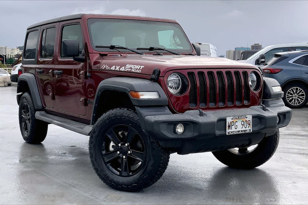 HONOLULU FORD! 808-532-1700, *DONT WAIT! CALL NOW!!, FINANCING AVAILABLE, GUARANTEED APPROVALS! LOW PAYMENTS! GREAT INTEREST RATES!, ***FORD CERTIFIED VEHICLE!! 172 POINT INSPECTION, OIL CHANGE, NEW WIPERS, NEW AIR FILTERS, FULL DET, WE SHIP TO NEIGHBOR ISLANDS!, 172 POINT INSPECTION BY FACTORY TRAINED TECHNICIANS!, STATE SAFETY INSPECTION COMPLETE!, APPLE CAR PLAY/ANDROID AUTO, BLUETOOTH HANDS FREE CALLING, ONE OWNER!!, ACCIDENT FREE CARFAX!, EXTRA CLEAN, WELL TAKEN CARE OF, EXCELLENT FUEL ECONOMY, OFF ROAD WHEELS AND TIRES, EXCELLENT CONDITION!, EXCELLENT SERVICE HISTORY!!, UPGRADED WHEELS, TOUCH SCREEN, 3.45 Rear Axle Ratio, 4-Wheel Disc Brakes, 7.0 Touchscreen Display, 8 Speakers, ABS brakes, Air Conditioning, Air Conditioning w/Auto Temperature Control, Air Filtering, Altitude Package, AM/FM radio, Apple CarPlay, Automatic Headlamps, Aux Battery, Black 3-Piece Hard Top, Black Interior Accents, Black Trail Rated Badge, Body Color Grille w/Gloss Black Rings, Brake assist, Cloth Low-Back Bucket Seats, Cluster 7.0 TFT Color Display, Compass, Continental TPM Sensor (DISC), Convenience Group, Deep Tint Sunscreen Windows, Delay-off headlights, Driver door bin, Driver vanity mirror, Dual front impact airbags, Dual front side impact airbags, Electronic Stability Control, For More Info, Call 800-643-2112, Freedom Panel Storage Bag, Front 1-Touch Down Power Windows, Front anti-roll bar, Front Bucket Seats, Front Center Armrest w/Storage, Front fog lights, Front reading lights, Google Android Auto, GPS Antenna Input, Heavy Duty Suspension w/Gas Shocks, Integrated Center Stack Radio, Integrated roll-over protection, Leather Wrapped Steering Wheel, Low tire pressure warning, Matte Black Jeep Badge, MOPAR Hardtop Headliner, No Soft Top, Non-Lock Fuel Cap w/o Discriminator, Normal Duty Suspension, Occupant sensing airbag, Outside temperature display, ParkView Rear Back-Up Camera, Passenger door bin, Passenger vanity mirror, Power Heated Mirrors, Power steering, Quick Order Package 22L Altitude, Radio data system, Radio: Uconnect 3 w/5 Display, Radio: Uconnect 4 w/7 Display, Rear anti-roll bar, Rear reading lights, Rear Window Defroster, Rear Window Wiper/Washer, Remote Keyless Entry, Security Alarm, Selec-Speed Control, SiriusXM Radio Service, SiriusXM Satellite Radio, Speed control, Speed Sensitive Power Locks, Split folding rear seat, Steering wheel mounted audio controls, Stop-Start Dual Battery System, Sun Visors w/Illuminated Vanity Mirrors, Tachometer, Technology Group, Telescoping steering wheel, Tilt steering wheel, Traction control, Trip computer, Universal Garage Door Opener, USB Host Flip, Variably intermittent wipers, Wheels: 17 x 7.5 Black Steel Styled, Wheels: 18 x 7.5 Gloss Black Aluminum, Wizard Black Instrument Panel Bezels, Wrangler Decal, 4-Wheel Drive/All-Wheel Drive. Recent Arrival! Clean CARFAX. Snazzberry Pearlcoat 2021 Jeep Wrangler Unlimited Sport Altitude 4WD 8-Speed Automatic 2.0L I4 DOHC