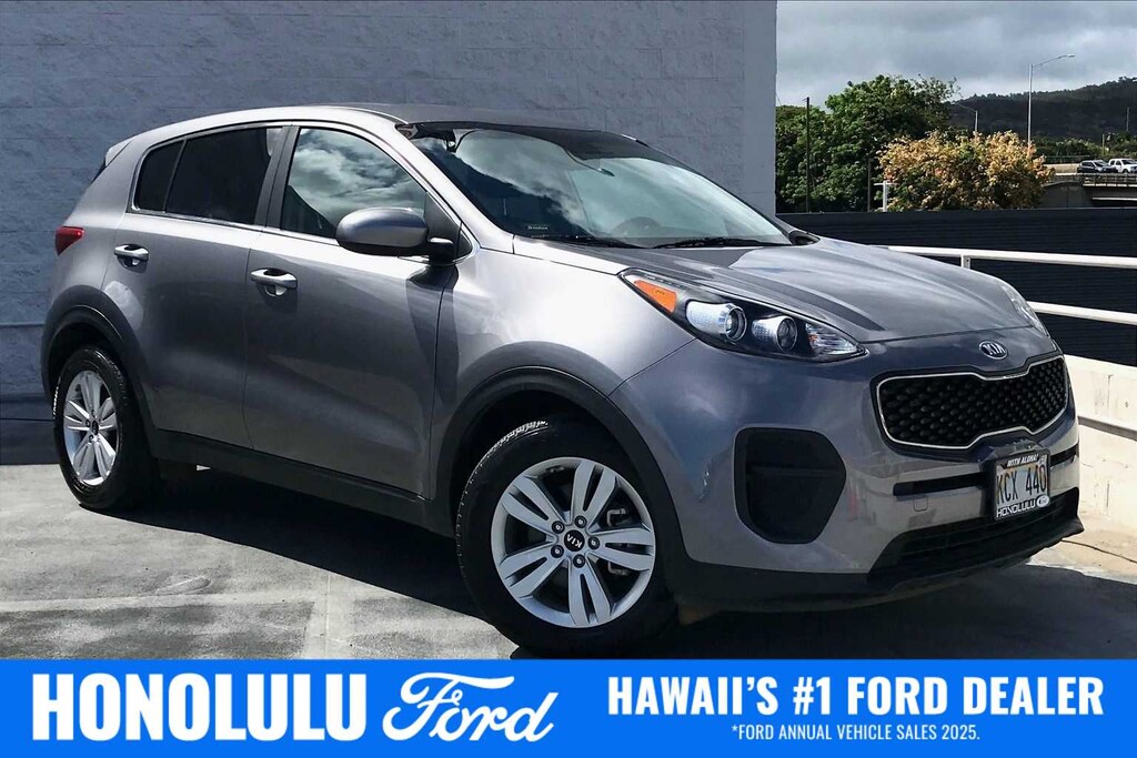 HONOLULU FORD! 808-532-1700, *DONT WAIT! CALL NOW!!, FINANCING AVAILABLE, GUARANTEED APPROVALS! LOW PAYMENTS! GREAT INTEREST RATES!, ***FORD CERTIFIED VEHICLE!! 172 POINT INSPECTION, OIL CHANGE, NEW WIPERS, NEW AIR FILTERS, FULL DET, WE SHIP TO NEIGHBOR ISLANDS!, 172 POINT INSPECTION BY FACTORY TRAINED TECHNICIANS!, STATE SAFETY INSPECTION COMPLETE!, BLUETOOTH HANDS FREE CALLING, ACCIDENT FREE CARFAX!, WELL TAKEN CARE OF, EXCELLENT FUEL ECONOMY, EXCELLENT CONDITION!, EXCELLENT SERVICE HISTORY!!, BLIND SPOT MONITOR, PARKING SENSORS, TOUCH SCREEN, 17 Alloy Wheels, 3.064 Axle Ratio, 4-Wheel Disc Brakes, 6 Speakers, ABS brakes, Air Conditioning, Alloy wheels, AM/FM radio: SiriusXM, Brake assist, Bumper Applique, Bumpers: body-color, Cargo Net, Carpet Floor Mats, CD player, Cloth Seat Trim, Delay-off headlights, Driver door bin, Driver vanity mirror, Dual front impact airbags, Dual front side impact airbags, Electronic Stability Control, Exterior Parking Camera Rear, Four wheel independent suspension, Front anti-roll bar, Front Bucket Seats, Front Center Armrest, Front reading lights, Fully automatic headlights, Illuminated entry, Low tire pressure warning, Occupant sensing airbag, Outside temperature display, Overhead airbag, Overhead console, Panic alarm, Passenger door bin, Passenger vanity mirror, Power door mirrors, Power steering, Power windows, Radio: AM/FM/CD/MP3/SiriusXM, Radio: AM/FM/SiriusXM, Rear anti-roll bar, Rear seat center armrest, Rear window defroster, Rear window wiper, Remote keyless entry, Security system, Speed control, Speed-sensing steering, Split folding rear seat, Spoiler, Steering wheel mounted audio controls, Tachometer, Telescoping steering wheel, Tilt steering wheel, Traction control, Trip computer, Variably intermittent wipers. Recent Arrival! Clean CARFAX. Mineral Silver 2017 Kia Sportage LX FWD 6-Speed Automatic 2.4L I4 DGI DOHC 16V