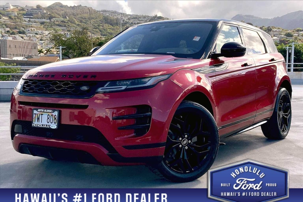 HONOLULU FORD! 808-532-1700, *DONT WAIT! CALL NOW!!, FINANCING AVAILABLE, GUARANTEED APPROVALS! LOW PAYMENTS! GREAT INTEREST RATES!, WE SHIP TO NEIGHBOR ISLANDS!, 172 POINT INSPECTION BY FACTORY TRAINED TECHNICIANS!, BLUETOOTH HANDS FREE CALLING, BACK-UP CAMERA, BOUGHT AND SERVICED HERE, EXTRA CLEAN, WELL TAKEN CARE OF, PREMIUM WHEELS, EXCELLENT CONDITION!, EXCELLENT SERVICE HISTORY!!, READY FOR YOU TO DRIVE HOME TODAY!, TOUCH SCREEN, 14-Way Front Bucket Seats w/Memory, 180 Watt Range Rover Sound System w/6-Speakers, 20 Wheels, 3.94 Axle Ratio, 4-Wheel Disc Brakes, 6 Speakers, ABS brakes, Air Conditioning, Alloy wheels, Android Auto, Apple CarPlay, Apple CarPlay & Android Auto, Auto High-beam Headlights, Auto-dimming door mirrors, Auto-dimming Rear-View mirror, Automatic temperature control, Brake assist, Bumpers: body-color, Compass, Delay-off headlights, Driver door bin, Driver vanity mirror, Dual front impact airbags, Dual front side impact airbags, Electronic Stability Control, Emergency communication system: InControl Protect, Exterior Parking Camera Rear, Four wheel independent suspension, Front anti-roll bar, Front Bucket Seats, Front Center Armrest, Front dual zone A/C, Front reading lights, Fully automatic headlights, Grained Leather Seat Trim, Heated door mirrors, Illuminated entry, Interactive Driver Display, Leather Shift Knob, Low tire pressure warning, Memory seat, Navigation system: InControl Navigation Pro, Occupant sensing airbag, Outside temperature display, Overhead airbag, Overhead console, Panic alarm, Passenger door bin, Passenger vanity mirror, Power door mirrors, Power driver seat, Power Liftgate, Power passenger seat, Power Socket Pack 1, Power steering, Power windows, Radio data system, Radio: Touch Pro Duo Infotainment w/Navigation, Rain sensing wipers, Rear anti-roll bar, Rear fog lights, Rear reading lights, Rear seat center armrest, Rear window defroster, Rear window wiper, Remote keyless entry, Security system, Speed control, Speed-sensing steering, Speed-Sensitive Wipers, Split folding rear seat, Spoiler, Steering wheel mounted audio controls, Tachometer, Telescoping steering wheel, Tilt steering wheel, Traction control, Trip computer, Turn signal indicator mirrors, Variably intermittent wipers, Wheels: 20 5 Split-Spoke (Style 5079). Recent Arrival! Red 2020 Land Rover Range Rover Evoque R-Dynamic SE AWD 9-Speed Automatic I4