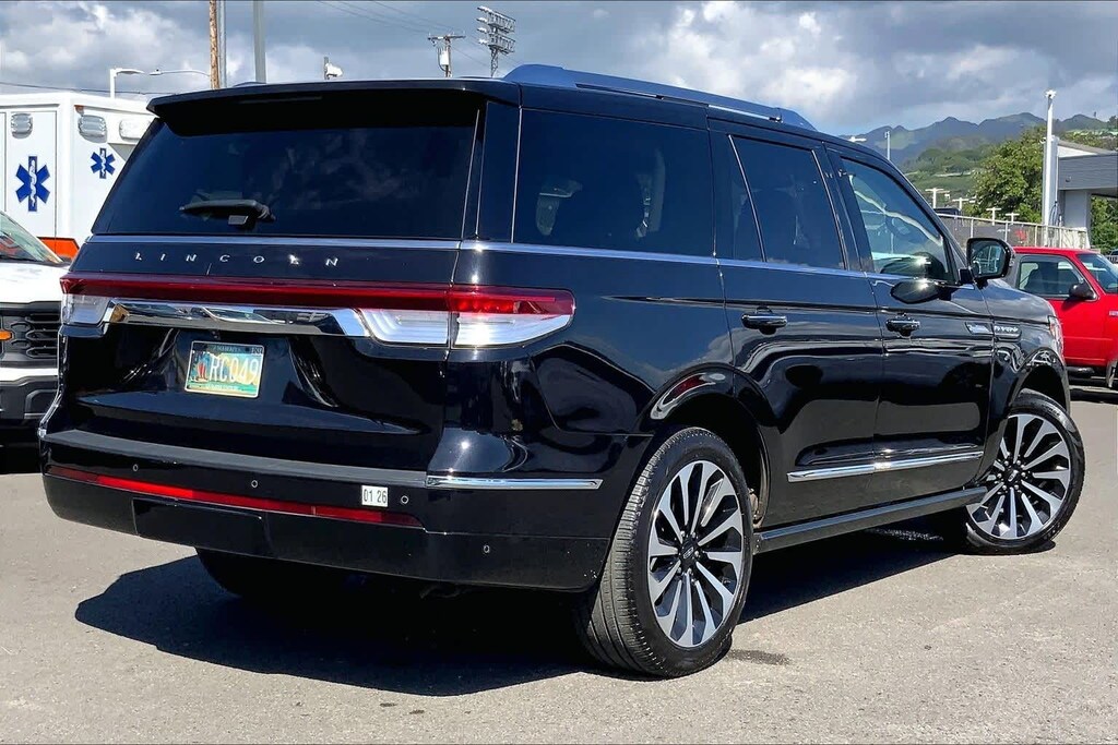 EQUIPMENT GROUP 201A RESERVE I Luxury Package, Perfect Position Seats (30-Way) w/Active Motion, power thigh extender, head restraints and auto heated/ventilated w/memory, Illuminated 1st & 2nd Row Seat Belts, ambient lighting w/LED, Lincoln Lit Star in Grille, Revel Ultima 3D Audio System w/28 Speakers, subwoofer (featuring QuantumLogic 3D Surround technology), WHEELS: 22 12-SPOKE BRIGHT-MACHINED ALUMINUM ebony black painted pockets, HEAVY-DUTY TRAILER TOW PACKAGE additional Lincoln Co-Pilot360 2.0 towing technology, Tiered Cargo Area Management System, 4-way configurable partition, Trailer Brake Controller, Trailer Sway Control, Pro-Trailer Backup Assist 2.0, Class IV w/4-Pin & 7-Pin Connectors, 2-Speed Transfer Case, Slow Climb Drive Mode, Front Tow Hooks, Smart Trailer Tow, 2ND ROW HTD/VENT ENHANCED MASSAGE SEATS W/CONSOLE 5.8 LCD touchscreen and multimedia audio controls, ALL-WEATHER FLOOR LINERS W/CARPET FLOOR MATS Front and rear, TRANSMISSION: 10-SPEED AUTOMATIC W/SELECTSHIFT paddle activation (STD), ENGINE: 3.5L TWIN-TURBOCHARGED V6 (STD). Rear Spoiler, MP3 Player, Remote Trunk Release, Privacy Glass, Keyless Entry.
