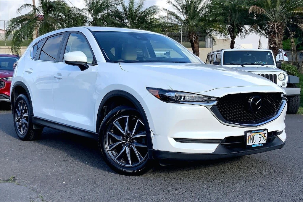 HONOLULU FORD! 808-532-1700, *DONT WAIT! CALL NOW!!, FINANCING AVAILABLE, GUARANTEED APPROVALS! LOW PAYMENTS! GREAT INTEREST RATES!, ***FORD CERTIFIED VEHICLE!! 172 POINT INSPECTION, OIL CHANGE, NEW WIPERS, NEW AIR FILTERS, FULL DET, WE SHIP TO NEIGHBOR ISLANDS!, 172 POINT INSPECTION BY FACTORY TRAINED TECHNICIANS!, STATE SAFETY INSPECTION COMPLETE!, APPLE CAR PLAY/ANDROID AUTO, BLUETOOTH HANDS FREE CALLING, ACCIDENT FREE CARFAX!, BACK-UP CAMERA, EXTRA CLEAN, WELL TAKEN CARE OF, EXCELLENT FUEL ECONOMY, PREMIUM WHEELS, EXCELLENT CONDITION!, EXCELLENT SERVICE HISTORY!!, READY FOR YOU TO DRIVE HOME TODAY!, ADAPTIVE CRUISE CONTROL, PARKING SENSORS, UPGRADED WHEELS, TOUCH SCREEN, 19 x 7J Aluminum Alloy Wheels, 4-Wheel Disc Brakes, 4.325 Axle Ratio, 6 Speakers, ABS brakes, Air Conditioning, Alloy wheels, AM/FM radio, Auto Dimming Rearview Mirror w/HomeLink, Auto High-beam Headlights, Automatic temperature control, Bose 10-Speaker Audio Sound System, Brake assist, Bumpers: body-color, Delay-off headlights, Driver door bin, Driver vanity mirror, Dual front impact airbags, Dual front side impact airbags, Electronic Stability Control, Emergency communication system, Exterior Parking Camera Rear, Four wheel independent suspension, Front anti-roll bar, Front Bucket Seats, Front Center Armrest, Front dual zone A/C, Front reading lights, Fully automatic headlights, Heated front seats, Heated Front Sport Shape Seats, Illuminated entry, Leather Shift Knob, Leatherette Seat Trim, Low tire pressure warning, Mazda Navigation System, Occupant sensing airbag, Outside temperature display, Overhead airbag, Overhead console, Panic alarm, Passenger door bin, Passenger vanity mirror, Power door mirrors, Power driver seat, Power Rear Liftgate, Power Sliding-Glass Moonroof w/Interior Sunshade, Power steering, Power windows, Preferred Equipment Package, Radio data system, Radio: AM/FM/HD Audio System, Rain sensing wipers, Rear anti-roll bar, Rear reading lights, Rear seat center armrest, Rear window defroster, Rear window wiper, Remote keyless entry, Slowflake White Pearl Mica Paint, Speed control, Speed-sensing steering, Split folding rear seat, Spoiler, Steering wheel mounted audio controls, Tachometer, Telescoping steering wheel, Tilt steering wheel, Traction control, Trip computer, Turn signal indicator mirrors, Variably intermittent wipers. Recent Arrival! Clean CARFAX. Snowflake White Pearl Mica 2018 Mazda CX-5 Touring FWD 6-Speed Automatic SKYACTIVî 2.5L 4-Cylinder DOHC 16V