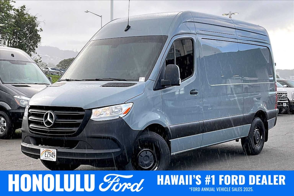 HONOLULU FORD! 808-532-1700, *DONT WAIT! CALL NOW!!, FINANCING AVAILABLE, GUARANTEED APPROVALS! LOW PAYMENTS! GREAT INTEREST RATES!, ***FORD CERTIFIED VEHICLE!! 172 POINT INSPECTION, OIL CHANGE, NEW WIPERS, NEW AIR FILTERS, FULL DET, WE SHIP TO NEIGHBOR ISLANDS!, 172 POINT INSPECTION BY FACTORY TRAINED TECHNICIANS!, STATE SAFETY INSPECTION COMPLETE!, APPLE CAR PLAY/ANDROID AUTO, BLUETOOTH HANDS FREE CALLING, *LEATHER SEATS*, BACK-UP CAMERA, EXTRA CLEAN, WELL TAKEN CARE OF, EXCELLENT FUEL ECONOMY, EXCELLENT CONDITION!, EXCELLENT SERVICE HISTORY!!, ADAPTIVE CRUISE CONTROL, PARKING SENSORS, UPGRADED WHEELS, TOUCH SCREEN, 4-Wheel Disc Brakes, 5 Speakers, 6.5J x 16 Steel Wheels, ABS brakes, Air Conditioning, AM/FM radio, Armrest For Drivers Seat, Armrest For Front Passengers Seat, Bodyside moldings, Brake assist, Driver door bin, Drivers Seat Mounted Armrest, Drivers Seat Occupancy Sensor, Dual front impact airbags, Dual front side impact airbags, Electronic Stability Control, Emergency communication system, Exterior Parking Camera Rear, Front anti-roll bar, Front Bucket Seats, Front wheel independent suspension, Fully automatic headlights, Heated door mirrors, Heated Drivers Seat, Heated front seats, Illuminated entry, Instrument Cluster w/Color Display, Low tire pressure warning, Maturin Fabric Upholstery, Outside temperature display, Overhead airbag, Overhead console, Passenger door bin, Passenger seat mounted armrest, Power door mirrors, Power steering, Power windows, Radio: Standard, Rear anti-roll bar, Remote keyless entry, Speed control, Standard Driver Seat, Standard Front Passenger Seat, Steering wheel mounted audio controls, Tachometer, Tilt steering wheel, Traction control. CARFAX One-Owner. Clean CARFAX. Vanda Blue 2024 Mercedes-Benz Sprinter 2500 Cargo 144 WB RWD 9-Speed Automatic HO