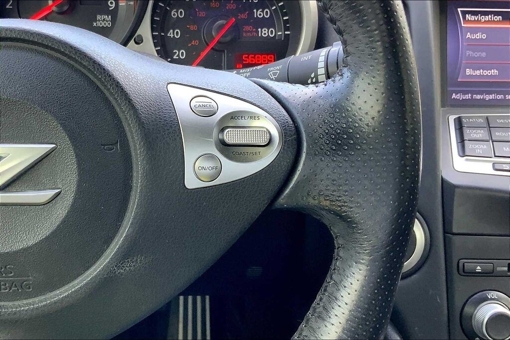 SPORT PACKAGE Wheels: 19x 9 Fr / 19x 10 Rr Rays Forged Alloy, Rear Spoiler, Front Chin Deflector, SynchroRev Match, Nissan Sport Brakes, Tires: Front P245/40R19 & Rear P275/35R19, Euro-Tuned Sport Shocks, Viscous Limited Slip Differential, NAVIGATION PACKAGE integrated interface system for iPod, streaming audio via Bluetooth® and NavTraffic and NavWeather capability, Rearview Monitor, Hard Drive-Based Navigation System, 6 Disc In-Dash CD Delete, 7 VGA Touch-Sensitive Display, USB Connectivity. Keyless Entry, Steering Wheel Controls, Heated Mirrors, Electronic Stability Control, Bucket Seats.