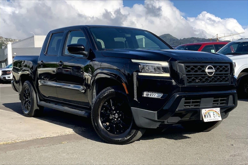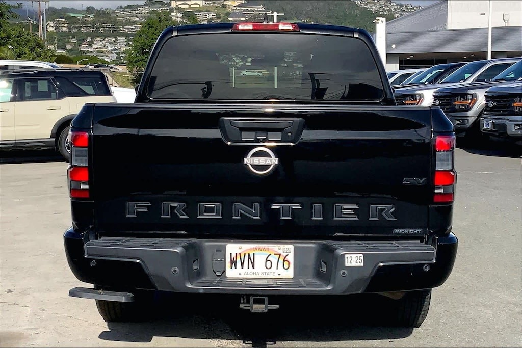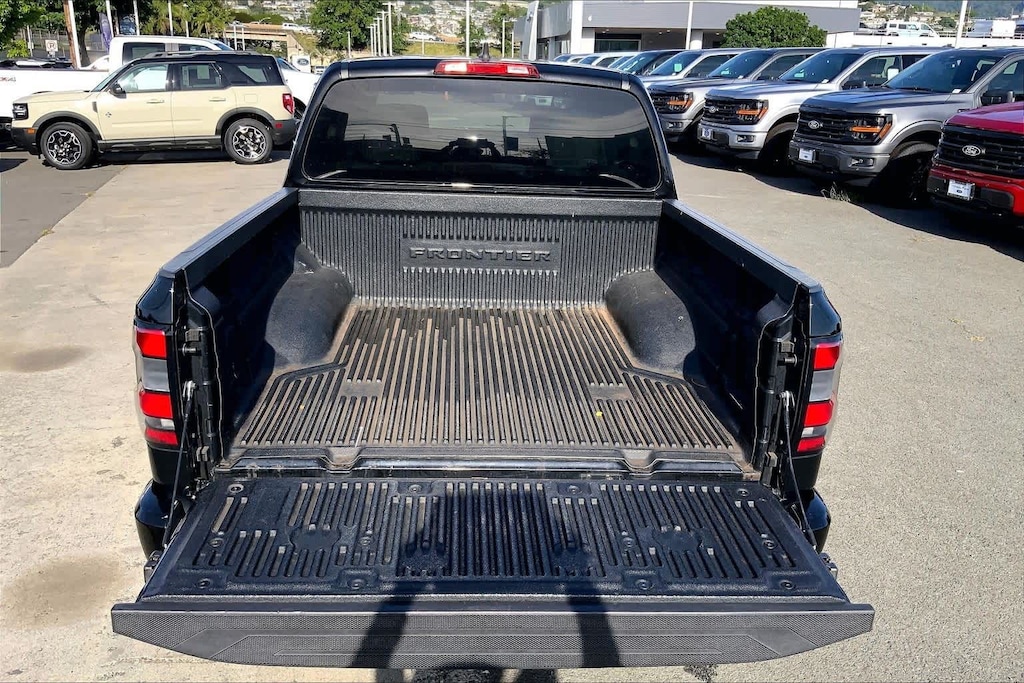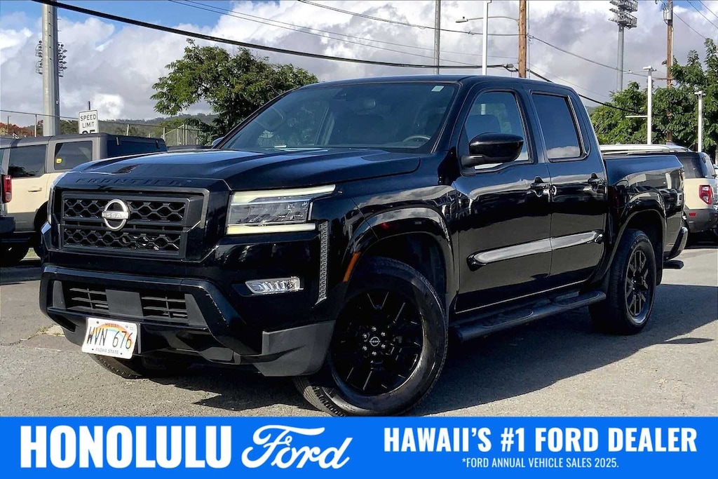 HONOLULU FORD! 808-532-1700, *DONT WAIT! CALL NOW!!, FINANCING AVAILABLE, GUARANTEED APPROVALS! LOW PAYMENTS! GREAT INTEREST RATES!, ***FORD CERTIFIED VEHICLE!! 172 POINT INSPECTION, OIL CHANGE, NEW WIPERS, NEW AIR FILTERS, FULL DET, WE SHIP TO NEIGHBOR ISLANDS!, 172 POINT INSPECTION BY FACTORY TRAINED TECHNICIANS!, STATE SAFETY INSPECTION COMPLETE!, APPLE CAR PLAY/ANDROID AUTO, BLUETOOTH HANDS FREE CALLING, ONE OWNER!!, ACCIDENT FREE CARFAX!, BACK-UP CAMERA, EXTRA CLEAN, WELL TAKEN CARE OF, EXCELLENT FUEL ECONOMY, PREMIUM WHEELS, EXCELLENT CONDITION!, EXCELLENT SERVICE HISTORY!!, READY FOR YOU TO DRIVE HOME TODAY!, ADAPTIVE CRUISE CONTROL, PARKING SENSORS, UPGRADED WHEELS, TOUCH SCREEN, 17 Alloy Wheels, 3.692 Axle Ratio, 4-Wheel Disc Brakes, 6 Speakers, ABS brakes, Air Conditioning, Alloy wheels, AM/FM radio: SiriusXM, Anti-whiplash front head restraints, Apple CarPlay/Android Auto, Black Exterior Badging, Black Interior Accenting & Headliner, Black Outside Mirrors, Black Tube Step, Blind Spot Warning, Brake assist, Bumpers: body-color, Carpeted Floor Mats, Delay-off headlights, Door Sill Plate, Driver door bin, Driver vanity mirror, Drop-In Bed Liner & Bumper Step, Dual front impact airbags, Dual front side impact airbags, Electronic Stability Control, Front anti-roll bar, Front Bucket Seats, Front Center Armrest, Front LED Fog Lights, Front reading lights, Front wheel independent suspension, Fully automatic headlights, High Beam Assist (HBA), Illuminated entry, Intelligent Cruise Control, Knee airbag, Lane Departure Warning System, LED Daytime Running Lights, LED Headlamps, Low tire pressure warning, Lower Fascia & Grille, Midnight Edition Package, Occupant sensing airbag, Overhead airbag, Panic alarm, Passenger door bin, Passenger vanity mirror, Power door mirrors, Power driver seat, Power steering, Power windows, Premium Cloth Seat Trim, Radio data system, Radio: SXM/AM/FM/AUX/USB Audio System w/6 Speakers, Rear anti-roll bar, Rear Automatic Braking (RAB), Rear Cross Traffic Alert (RCTA), Rear Emblem, Rear seat center armrest, Rear Sonar System, Rear step bumper, Remote keyless entry, Security system, Speed control, Speed-sensing steering, Splash Guards, Split folding rear seat, Steering wheel mounted audio controls, Tachometer, Technology Package, Tilt steering wheel, Tow Package, Tow/Haul Mode Switch, Traction control, Trip computer, Variably intermittent wipers, Voltmeter, Wheels: 17 Black Painted Alloy. Recent Arrival! CARFAX One-Owner. Clean CARFAX. Super Black 2023 Nissan Frontier SV RWD 9-Speed Automatic 3.8L DI DOHC 24V V6
