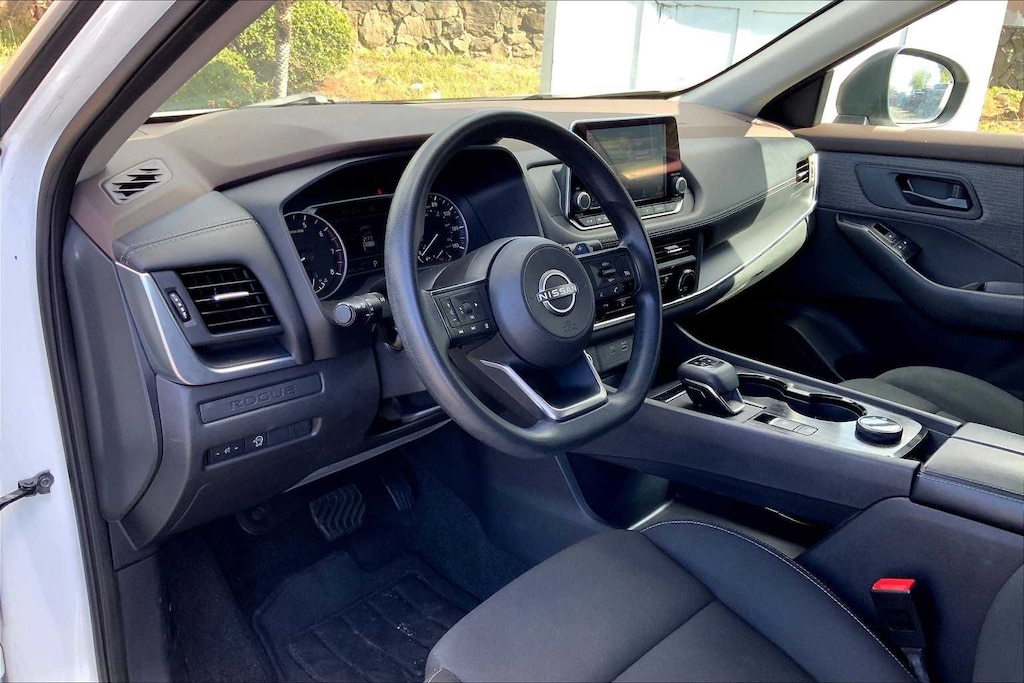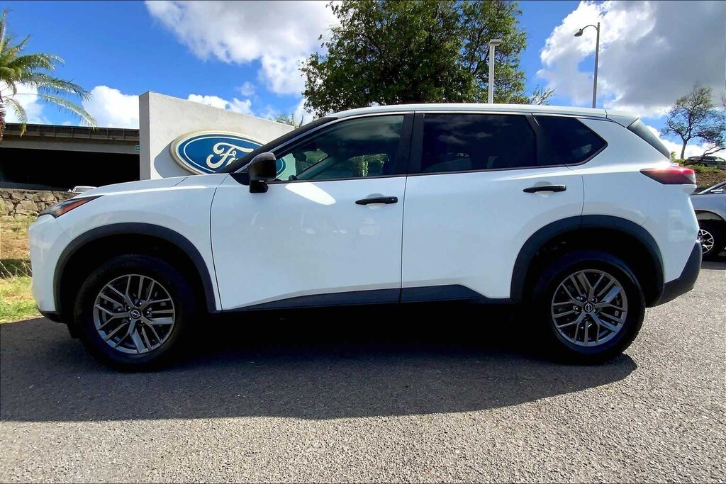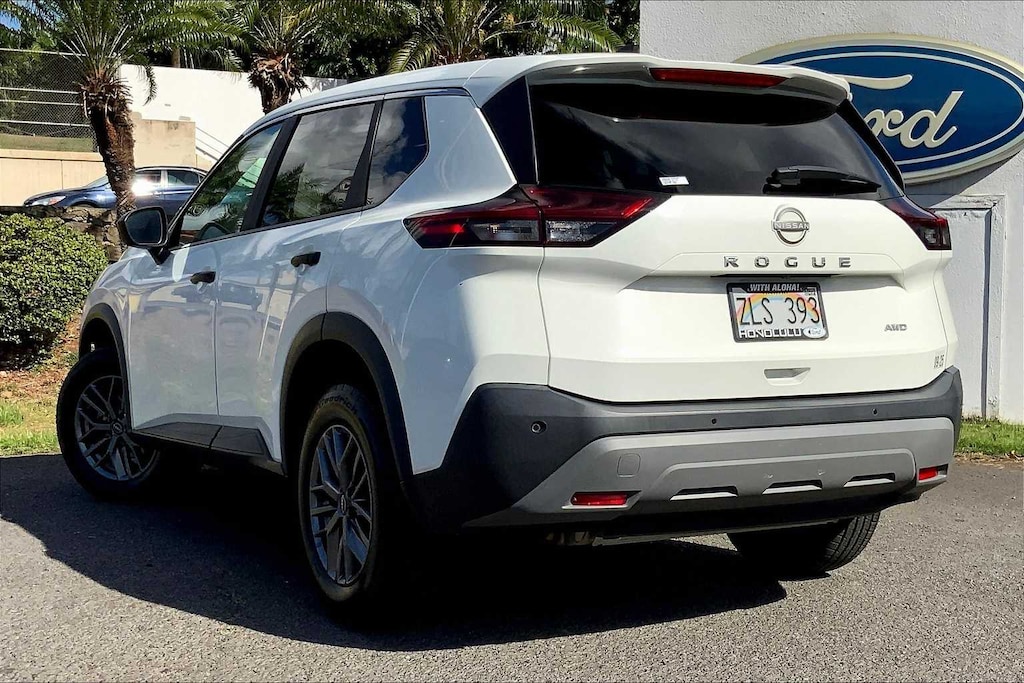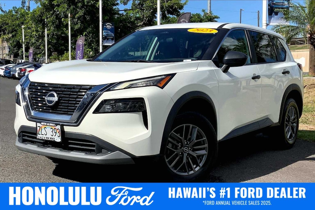 HONOLULU FORD! 808-532-1700, *DONT WAIT! CALL NOW!!, FINANCING AVAILABLE, GUARANTEED APPROVALS! LOW PAYMENTS! GREAT INTEREST RATES!, ***FORD CERTIFIED VEHICLE!! 172 POINT INSPECTION, OIL CHANGE, NEW WIPERS, NEW AIR FILTERS, FULL DET, WE SHIP TO NEIGHBOR ISLANDS!, 172 POINT INSPECTION BY FACTORY TRAINED TECHNICIANS!, STATE SAFETY INSPECTION COMPLETE!, APPLE CAR PLAY/ANDROID AUTO, BLUETOOTH HANDS FREE CALLING, ONE OWNER!!, ACCIDENT FREE CARFAX!, BACK-UP CAMERA, EXTRA CLEAN, EXCELLENT FUEL ECONOMY, PREMIUM WHEELS, EXCELLENT CONDITION!, EXCELLENT SERVICE HISTORY!!, REMOTE START, BLIND SPOT MONITOR, READY FOR YOU TO DRIVE HOME TODAY!, UPGRADED WHEELS, TOUCH SCREEN, AWD, 17 Aluminum Alloy Wheels, 4 Speakers, 4-Wheel Disc Brakes, 5.604 Axle Ratio, ABS brakes, Air Conditioning, Alloy wheels, AM/FM Radio, AM/FM radio: SiriusXM, Auto High-beam Headlights, Blind Spot Warning, Brake assist, Bumpers: body-color, Cloth Seat Trim, Delay-off headlights, Driver door bin, Driver vanity mirror, Dual front impact airbags, Dual front side impact airbags, Electronic Stability Control, First Aid Kit, Floor Mats w/1-Piece Cargo Area Protector, Four wheel independent suspension, Front anti-roll bar, Front Bucket Seats, Front Center Armrest, Front reading lights, Fully automatic headlights, Illuminated entry, Knee airbag, Low tire pressure warning, NissanConnect featuring Apple CarPlay and Android Auto, Occupant sensing airbag, Outside temperature display, Overhead airbag, Overhead console, Panic alarm, Passenger door bin, Passenger vanity mirror, Power door mirrors, Power steering, Power windows, Radio data system, Rear anti-roll bar, Rear Parking Sensors, Rear seat center armrest, Rear side impact airbag, Rear window defroster, Rear window wiper, Remote keyless entry, Speed control, Speed-Sensitive Wipers, Split folding rear seat, Spoiler, Steering wheel mounted audio controls, Tachometer, Telescoping steering wheel, Tilt steering wheel, Traction control, Trip computer, Variably intermittent wipers, AWD. CARFAX One-Owner. Glacier White 2023 Nissan Rogue S AWD CVT with Xtronic 1.5L I3 Turbocharged DOHC 12V LEV3-ULEV50 201hp