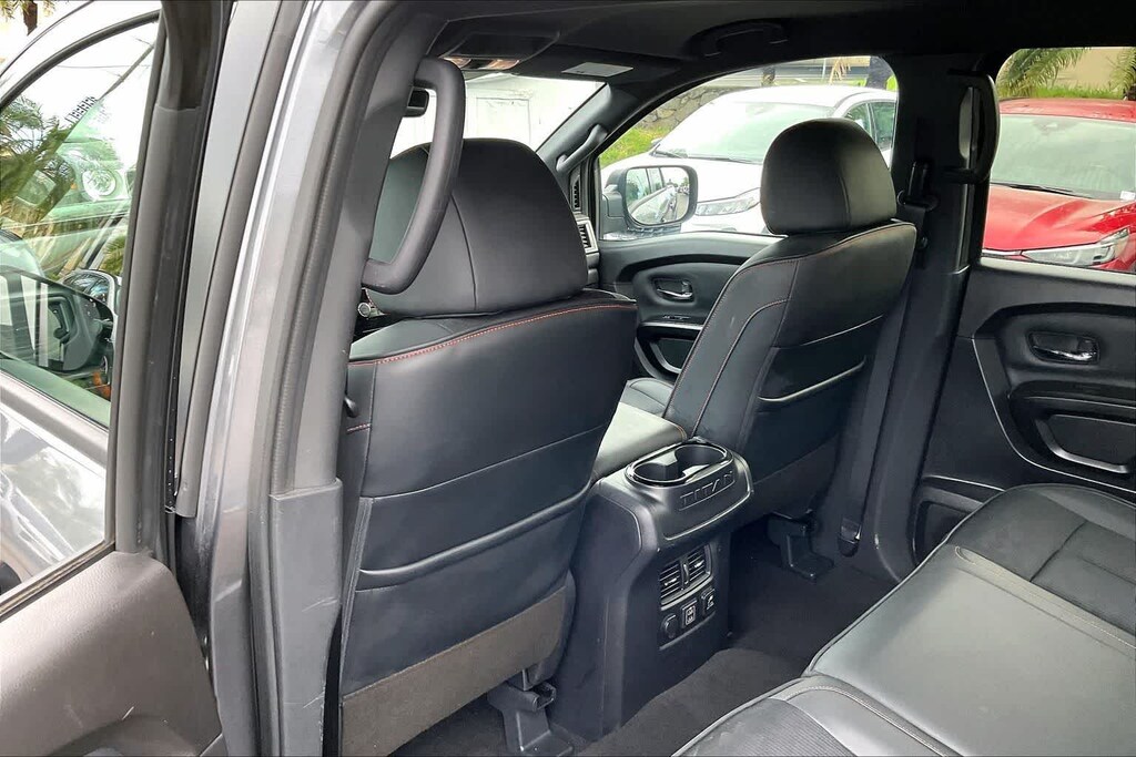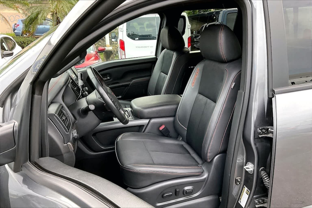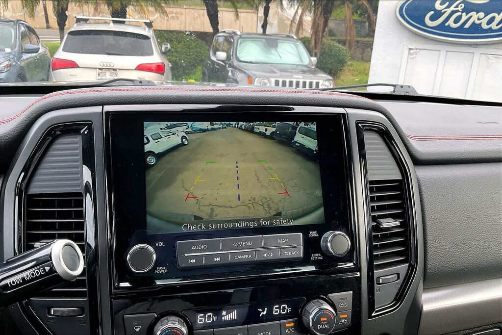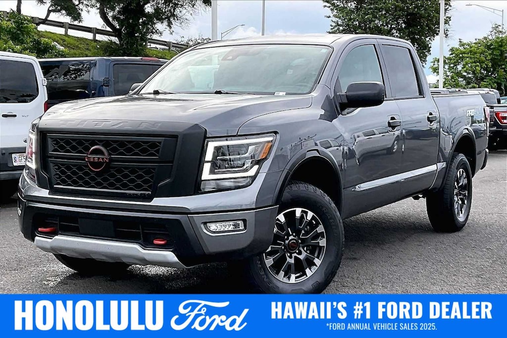 HONOLULU FORD! 808-532-1700, *DONT WAIT! CALL NOW!!, FINANCING AVAILABLE, GUARANTEED APPROVALS! LOW PAYMENTS! GREAT INTEREST RATES!, ***FORD CERTIFIED VEHICLE!! 172 POINT INSPECTION, OIL CHANGE, NEW WIPERS, NEW AIR FILTERS, FULL DET, WE SHIP TO NEIGHBOR ISLANDS!, 172 POINT INSPECTION BY FACTORY TRAINED TECHNICIANS!, STATE SAFETY INSPECTION COMPLETE!, APPLE CAR PLAY/ANDROID AUTO, BLUETOOTH HANDS FREE CALLING, ONE OWNER!!, ACCIDENT FREE CARFAX!, *LEATHER SEATS*, *HEATED SEATS, BACK-UP CAMERA, EXTRA CLEAN, PREMIUM WHEELS, EXCELLENT CONDITION!, EXCELLENT SERVICE HISTORY!!, ADAPTIVE CRUISE CONTROL, PARKING SENSORS, UPGRADED WHEELS, TOUCH SCREEN, 4WD, 3.692 Axle Ratio, 4-Wheel Disc Brakes, 6 Speakers, ABS brakes, Air Conditioning, Alloy wheels, AM/FM radio: SiriusXM, Apple CarPlay/Android Auto, Auto High-beam Headlights, Auto-dimming Rear-View mirror, Auto-leveling suspension, Automatic temperature control, Blind Spot Warning, Brake assist, Cloth Seat Trim w/Vinyl Bolsters, Compass, Delay-off headlights, Driver door bin, Driver vanity mirror, Dual front impact airbags, Dual front side impact airbags, Electronic Stability Control, Emergency communication system: NissanConnect Services, Front anti-roll bar, Front Bucket Seats, Front Captains Seats, Front Center Armrest, Front dual zone A/C, Front fog lights, Front reading lights, Front wheel independent suspension, Fully automatic headlights, Garage door transmitter: HomeLink, Heated door mirrors, Illuminated entry, Knee airbag, Leather steering wheel, Low tire pressure warning, Navigation system: NissanConnect with Navigation and Services, Occupant sensing airbag, Outside temperature display, Overhead airbag, Overhead console, Panic alarm, Passenger door bin, Passenger vanity mirror, Power door mirrors, Power driver seat, Power steering, Power windows, PRO-4X Badged Floor Mats, Radio data system, Radio: NissanConnect w/Navigation, Rain sensing wipers, Rear anti-roll bar, Rear Parking Sensors, Rear reading lights, Rear seat center armrest, Rear step bumper, Rear Underseat Storage, Rear window defroster, Remote keyless entry, Security system, Speed control, Speed-sensing steering, Speed-Sensitive Wipers, Split folding rear seat, Steering wheel mounted audio controls, Tachometer, Telescoping steering wheel, Tilt steering wheel, Traction control, Trip computer, Variably intermittent wipers, Voltmeter, Wheels: 18 x 8 Painted Dark Finish Alloy, 4-Wheel Drive/All-Wheel Drive, 4WD. CARFAX One-Owner. Clean CARFAX. Gun Metallic 2024 Nissan Titan PRO-4X 4WD 9-Speed Automatic 5.6L V8 DOHC 32V LEV3-ULEV70 400hp