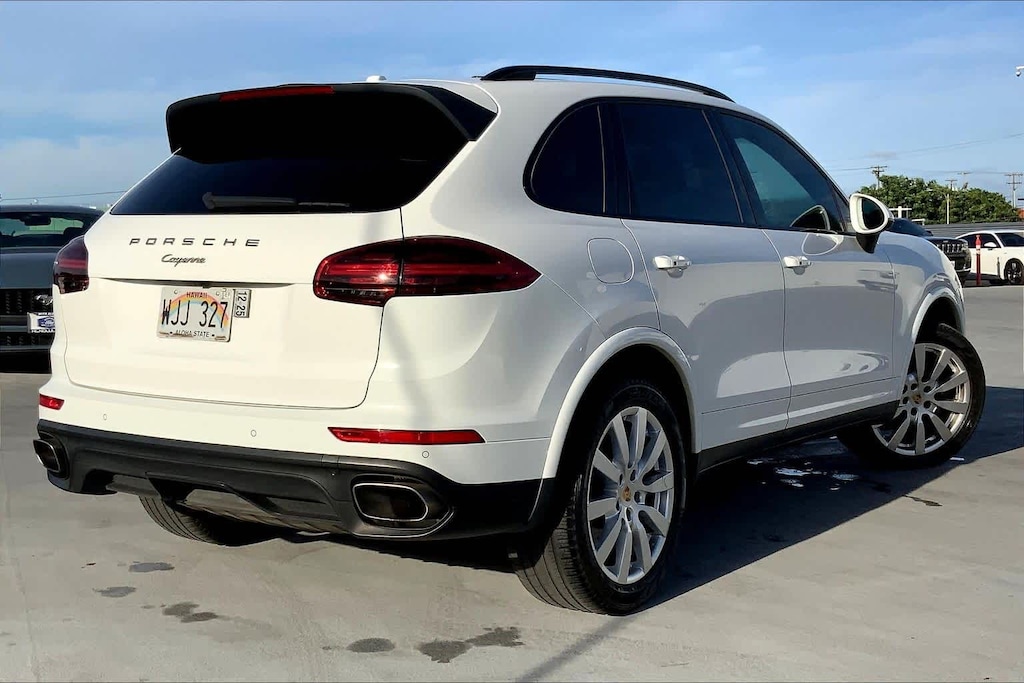 HONOLULU FORD! 808-532-1700, *DONT WAIT! CALL NOW!!, FINANCING AVAILABLE, GUARANTEED APPROVALS! LOW PAYMENTS! GREAT INTEREST RATES!, WE SHIP TO NEIGHBOR ISLANDS!, 172 POINT INSPECTION BY FACTORY TRAINED TECHNICIANS!, STATE SAFETY INSPECTION COMPLETE!, BLUETOOTH HANDS FREE CALLING, ACCIDENT FREE CARFAX!, *LEATHER SEATS*, *HEATED SEATS, SUNROOF/MOONROOF, BACK-UP CAMERA, EXTRA CLEAN, WELL TAKEN CARE OF, EXCELLENT FUEL ECONOMY, EXCELLENT CONDITION!, EXCELLENT SERVICE HISTORY!!, BLIND SPOT MONITOR, READY FOR YOU TO DRIVE HOME TODAY!, ADAPTIVE CRUISE CONTROL, PARKING SENSORS, UPGRADED WHEELS, TOUCH SCREEN, Black w/Leather Seat Trim w/Leather Interior, 14 Speakers, 4-Wheel Disc Brakes, 8-Way Power Sport Seats, ABS brakes, Air Conditioning, Alloy wheels, AM/FM radio: SiriusXM, Apple CarPlay, Auto-dimming door mirrors, Auto-dimming Rear-View mirror, Automatic temperature control, Axle Ratio: 3.27, Brake assist, Bumpers: body-color, CD player, Delay-off headlights, Driver door bin, Driver vanity mirror, Dual front impact airbags, Dual front side impact airbags, DVD-Audio, Electronic Stability Control, Four wheel independent suspension, Front anti-roll bar, Front Bucket Seats, Front Center Armrest, Front dual zone A/C, Front fog lights, Front reading lights, Fully automatic headlights, Garage door transmitter: HomeLink, Heated door mirrors, Heated front seats, High intensity discharge headlights: Bi-Xenon, Illuminated entry, Knee airbag, Leather Shift Knob, Low tire pressure warning, Navigation System, Occupant sensing airbag, Outside temperature display, Overhead airbag, Overhead console, Panic alarm, Partial Leather Seat Trim w/Alcantara Seat Centers, Passenger door bin, Passenger vanity mirror, Porsche Communication Management, Power door mirrors, Power driver seat, Power Liftgate, Power passenger seat, Power steering, Power windows, Radio data system, Rain sensing wipers, Rear anti-roll bar, Rear fog lights, Rear reading lights, Rear seat center armrest, Rear side impact airbag, Rear window defroster, Rear window wiper, Remote keyless entry, Security system, Speed control, Speed-sensing steering, Split folding rear seat, Spoiler, Sport steering wheel, Steering wheel mounted audio controls, Tachometer, Telescoping steering wheel, Tilt steering wheel, Traction control, Trip computer, Variably intermittent wipers, Wheels: 18 Cayenne, Wheels: 20 RS Spyder Design in Satin Platinum, Black w/Leather Seat Trim w/Leather Interior. Recent Arrival! Clean CARFAX. White 2018 Porsche Cayenne Platinum Edition AWD 8-Speed Automatic with Tiptronic 3.6L V6