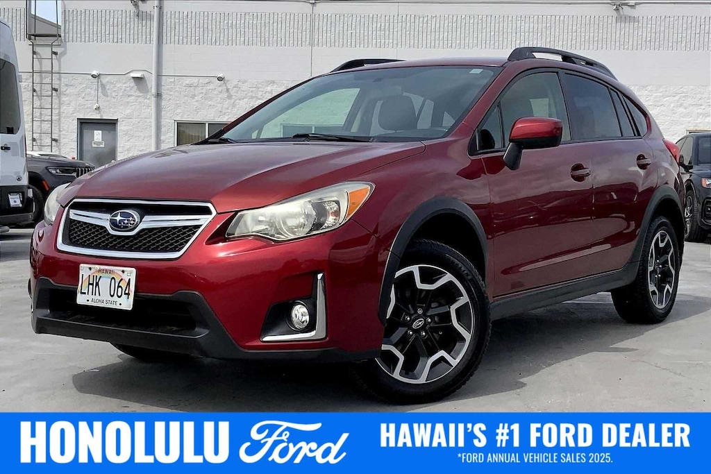 HONOLULU FORD! 808-532-1700, *DONT WAIT! CALL NOW!!, FINANCING AVAILABLE, GUARANTEED APPROVALS! LOW PAYMENTS! GREAT INTEREST RATES!, ***FORD CERTIFIED VEHICLE!! 172 POINT INSPECTION, OIL CHANGE, NEW WIPERS, NEW AIR FILTERS, FULL DET, WE SHIP TO NEIGHBOR ISLANDS!, 172 POINT INSPECTION BY FACTORY TRAINED TECHNICIANS!, STATE SAFETY INSPECTION COMPLETE!, BLUETOOTH HANDS FREE CALLING, ONE OWNER!!, ACCIDENT FREE CARFAX!, WELL TAKEN CARE OF, EXCELLENT FUEL ECONOMY, PREMIUM WHEELS, EXCELLENT CONDITION!, EXCELLENT SERVICE HISTORY!!, BLIND SPOT MONITOR, READY FOR YOU TO DRIVE HOME TODAY!, UPGRADED WHEELS, TOUCH SCREEN, 17 x 7.0J Aluminum Alloy Wheels, 3.70 Axle Ratio, 4-Wheel Disc Brakes, 6 Speakers, ABS brakes, Air Conditioning, Alloy wheels, AM/FM radio, Brake assist, Bumpers: body-color, CD player, Cloth Upholstery, Driver door bin, Driver vanity mirror, Dual front impact airbags, Dual front side impact airbags, Electronic Stability Control, Emergency communication system, Exterior Parking Camera Rear, Four wheel independent suspension, Front anti-roll bar, Front Bucket Seats, Front Center Armrest, Front fog lights, Front reading lights, Heated door mirrors, Heated Front Bucket Seats, Heated front seats, Illuminated entry, Knee airbag, Leather Shift Knob, Low tire pressure warning, Occupant sensing airbag, Outside temperature display, Overhead airbag, Panic alarm, Passenger door bin, Passenger vanity mirror, Power door mirrors, Power steering, Power windows, Radio data system, Radio: Subaru Starlink 6.2 Multimedia System, Rear anti-roll bar, Rear Vision Camera, Rear window defroster, Rear window wiper, Remote keyless entry, Roof rack: rails only, Security system, Speed control, Speed-sensing steering, Split folding rear seat, Spoiler, Standard Model w/CVT, Steering wheel mounted audio controls, Tachometer, Telescoping steering wheel, Tilt steering wheel, Traction control, Trip computer, Variably intermittent wipers. Clean CARFAX. Venetian Red Pearl 2017 Subaru Crosstrek 2.0i Premium AWD Lineartronic CVT 2.0L 16V DOHC