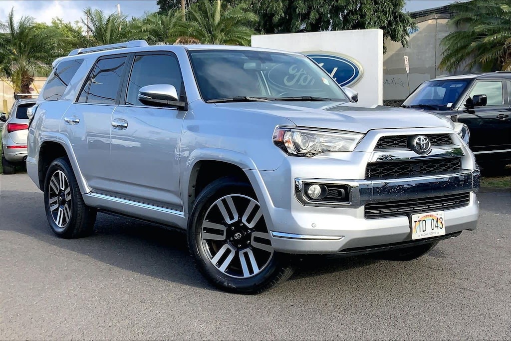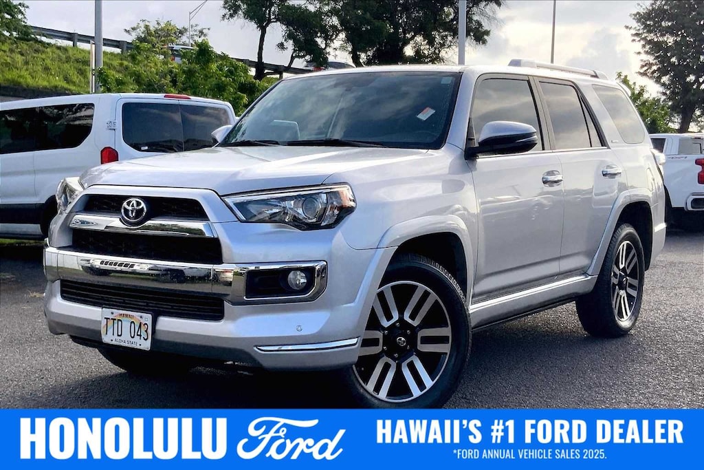 HONOLULU FORD! 808-532-1700, *DONT WAIT! CALL NOW!!, FINANCING AVAILABLE, GUARANTEED APPROVALS! LOW PAYMENTS! GREAT INTEREST RATES!, ***FORD CERTIFIED VEHICLE!! 172 POINT INSPECTION, OIL CHANGE, NEW WIPERS, NEW AIR FILTERS, FULL DET, WE SHIP TO NEIGHBOR ISLANDS!, 172 POINT INSPECTION BY FACTORY TRAINED TECHNICIANS!, STATE SAFETY INSPECTION COMPLETE!, APPLE CAR PLAY/ANDROID AUTO, BLUETOOTH HANDS FREE CALLING, ONE OWNER!!, ACCIDENT FREE CARFAX!, *LEATHER SEATS*, *HEATED SEATS, *VENTILATED/AC/COOLED SEATS, BACK-UP CAMERA, WELL TAKEN CARE OF, EXCELLENT FUEL ECONOMY, PREMIUM WHEELS, EXCELLENT CONDITION!, EXCELLENT SERVICE HISTORY!!, THIRD ROW SEATING, ADAPTIVE CRUISE CONTROL, PARKING SENSORS, TOUCH SCREEN, 4-Wheel Drive/All-Wheel Drive, 4WD, Black Graphite w/Leather Seat Trim, 20 x 7.5 Unique Dual 6-Spoke Alloy Wheels, ABS brakes, Alloy wheels, Body Color Heated Mirrors, Compass, Electronic Stability Control, Front dual zone A/C, Heated door mirrors, Heated front seats, Heated/Ventilated Front Bucket Seats, Illuminated entry, Leather Seat Trim, Low tire pressure warning, Power moonroof, Remote keyless entry, Traction control. Recent Arrival! Clean CARFAX. Classic Silver Metallic 2019 Toyota 4Runner Limited 4WD 5-Speed Automatic with Overdrive 4.0L V6 SMPI DOHC