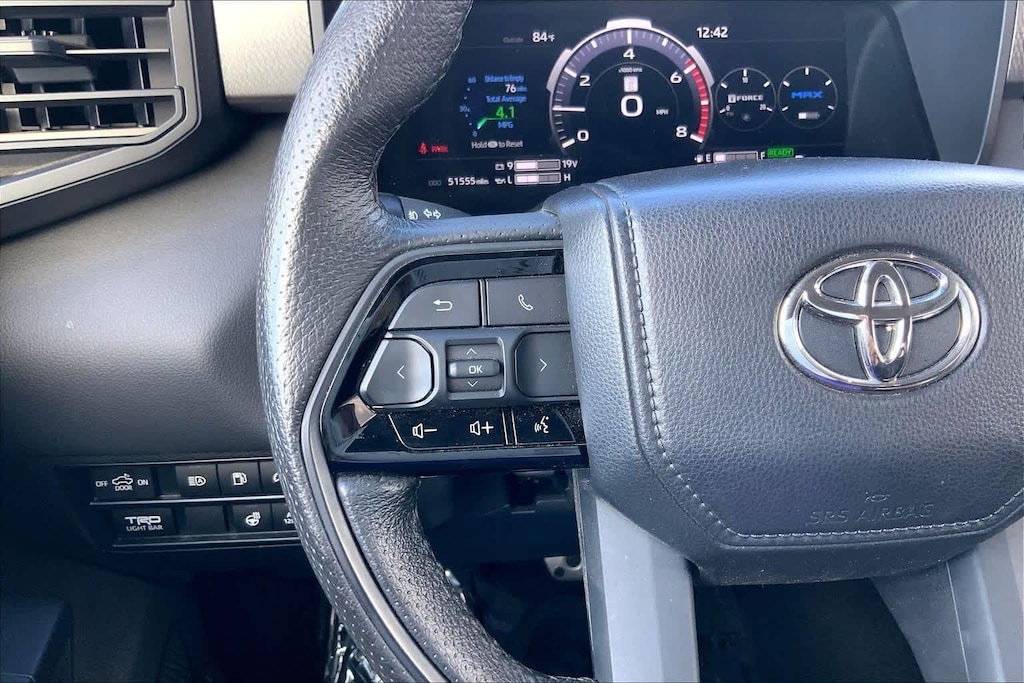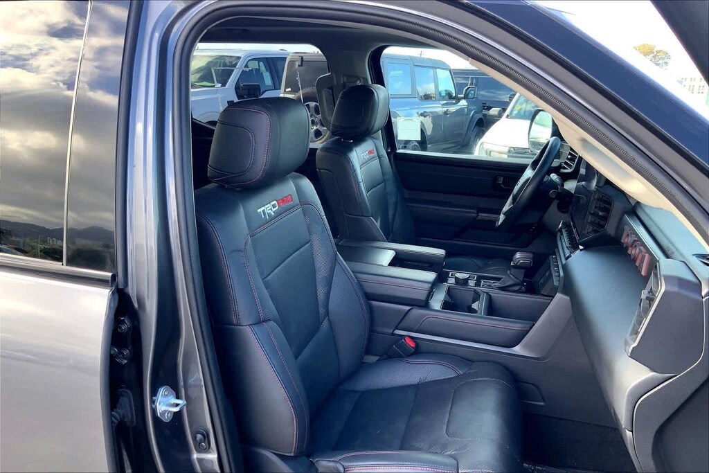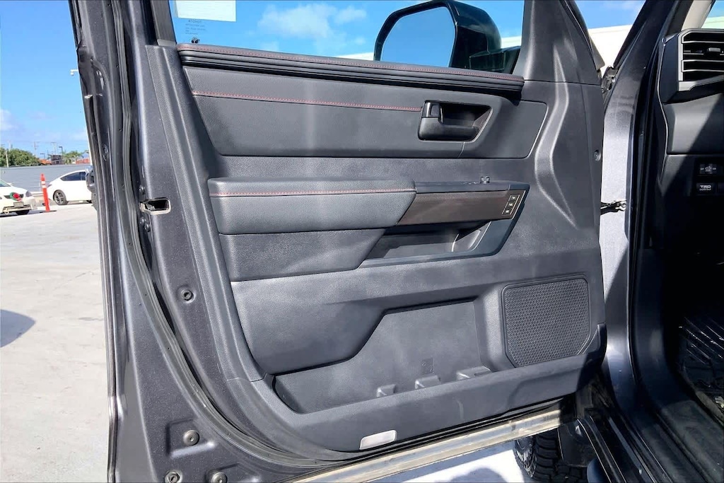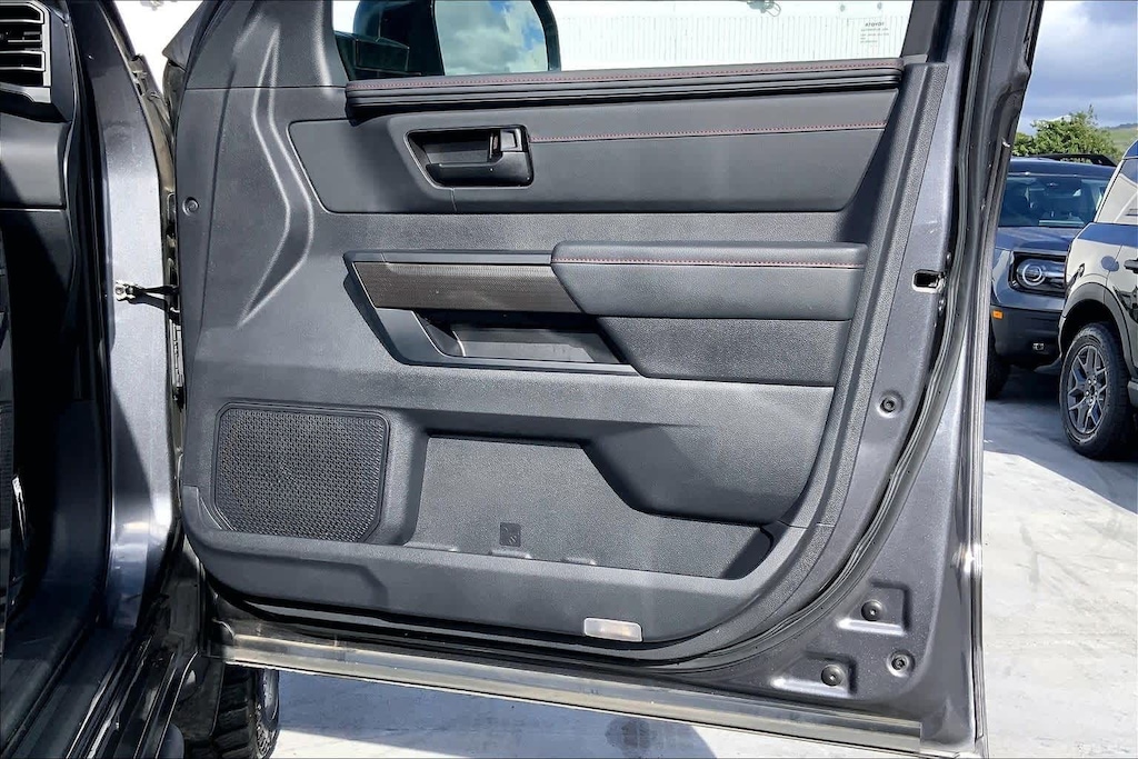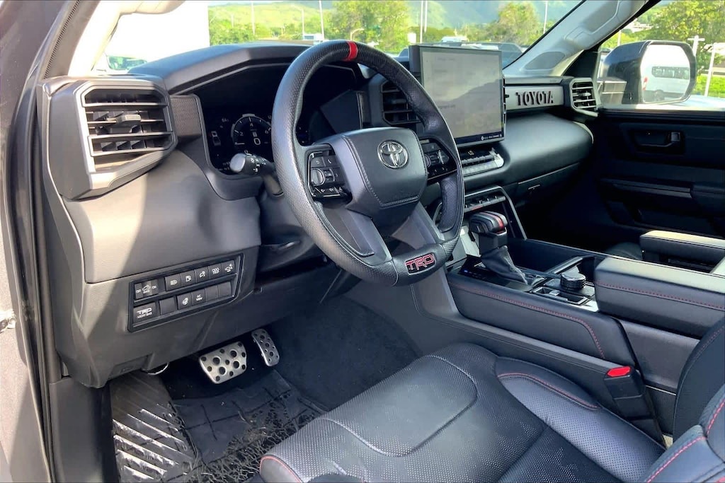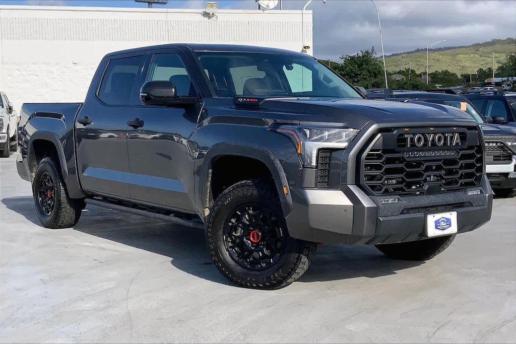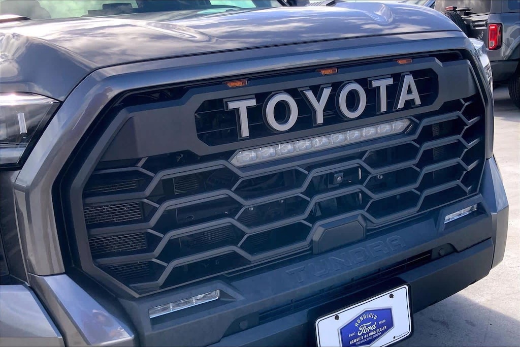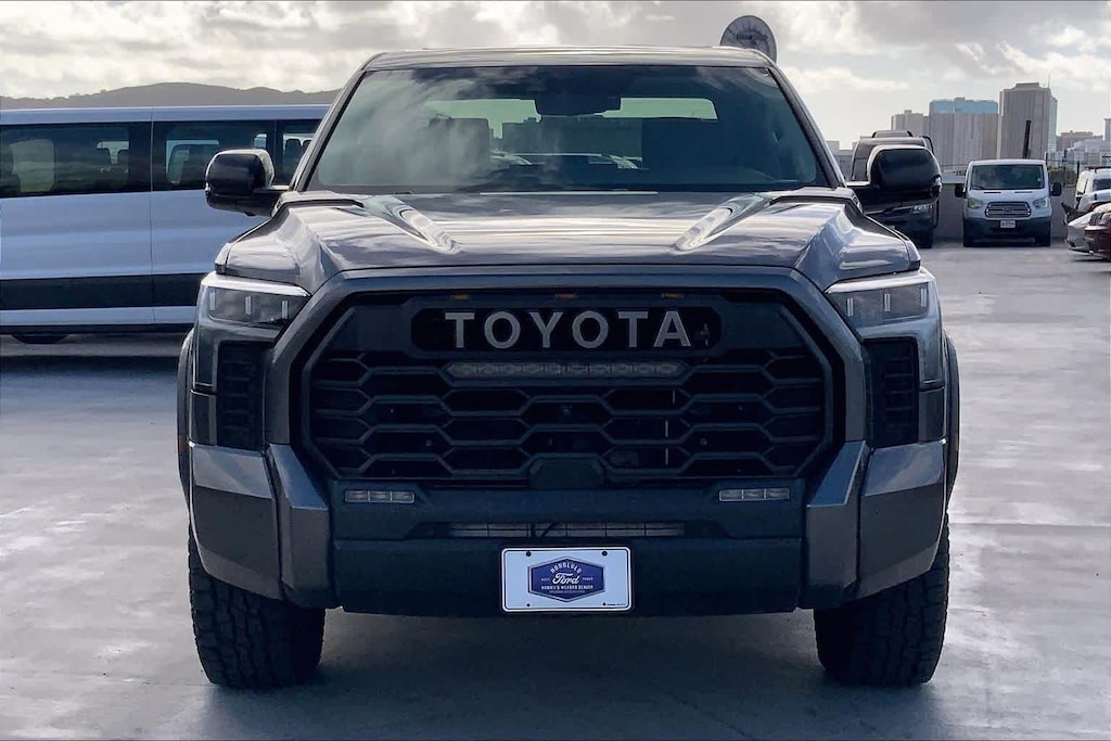 HONOLULU FORD! 808-532-1700, *DONT WAIT! CALL NOW!!, FINANCING AVAILABLE, GUARANTEED APPROVALS! LOW PAYMENTS! GREAT INTEREST RATES!, ***FORD CERTIFIED VEHICLE!! 172 POINT INSPECTION, OIL CHANGE, NEW WIPERS, NEW AIR FILTERS, FULL DET, WE SHIP TO NEIGHBOR ISLANDS!, 172 POINT INSPECTION BY FACTORY TRAINED TECHNICIANS!, STATE SAFETY INSPECTION COMPLETE!, APPLE CAR PLAY/ANDROID AUTO, BLUETOOTH HANDS FREE CALLING, ONE OWNER!!, ACCIDENT FREE CARFAX!, *LEATHER SEATS*, *HEATED SEATS, *VENTILATED/AC/COOLED SEATS, LIFTED/LIFT/LIFT KIT, WELL TAKEN CARE OF, EXCELLENT FUEL ECONOMY, EXCELLENT CONDITION!, EXCELLENT SERVICE HISTORY!!, BLIND SPOT MONITOR, READY FOR YOU TO DRIVE HOME TODAY!, PARKING SENSORS, UPGRADED WHEELS, TOUCH SCREEN, 3.4L V6, 12 Speakers, 3.31 Axle Ratio, 4-Wheel Disc Brakes, 400W/120V AC Rear Seat & Bed Power Supply, ABS brakes, Air Conditioning, Alloy wheels, AM/FM radio: SiriusXM, Apple CarPlay/Android Auto, Auto High-beam Headlights, Auto-dimming door mirrors, Auto-dimming Rear-View mirror, Automatic temperature control, Black Dual Exhaust Tips w/Debossed TRD Pro Logo, Brake assist, Bumpers: body-color, Delay-off headlights, Driver door bin, Driver vanity mirror, Dual front impact airbags, Dual front side impact airbags, Electronic Stability Control, Emergency communication system: Safety Connect (10-year trial), Front & Rear Mud Guards, Front anti-roll bar, Front Bucket Seats, Front Center Armrest, Front dual zone A/C, Front fog lights, Front reading lights, Front wheel independent suspension, Fully automatic headlights, Garage door transmitter: HomeLink, Heated & Ventilated Front Bucket Seats, Heated Color-Keyed Outside Mirrors, Heated door mirrors, Heated front seats, Heated steering wheel, Illuminated entry, Knee airbag, Leather Shift Knob, LED Lightbar w/Fog & Marker Lights, Low tire pressure warning, Memory seat, Multi-Terrain Back Monitor, Navigation System, Occupant sensing airbag, Outside temperature display, Overhead airbag, Overhead console, Panic alarm, Passenger door bin, Passenger vanity mirror, Power door mirrors, Power driver seat, Power moonroof, Power Panoramic Roof, Power passenger seat, Power steering, Power windows, Qi-Compatible Wireless Smartphone Charger, Radio data system, Radio: Premium Audio w/JBL, Rear reading lights, Rear seat center armrest, Rear step bumper, Rear window defroster, Remote keyless entry, Security system, Smoked-Finish Premium LED Headlights & DRL, SofTex Seat Trim, Speed control, Speed-sensing steering, Split folding rear seat, Sport steering wheel, Steering wheel mounted audio controls, Tachometer, Telescoping steering wheel, Tilt steering wheel, Towing Technology Package, Traction control, TRD Pro Heated Leather-Trimmed Steering Wheel, Trip computer, Turn signal indicator mirrors, Variably intermittent wipers, Ventilated front seats, Voltmeter, Wheels: 18 x 8 Black BBS Forged Aluminum, 4-Wheel Drive/All-Wheel Drive, 3.4L V6. CARFAX One-Owner. Magnetic Gray Metallic 2023 Toyota Tundra Hybrid TRD Pro 4WD 10-Speed Automatic 3.4L V6