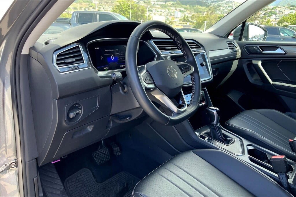 Third Row Seat, Power Liftgate, Heated Driver Seat, Back-Up Camera, Turbocharged, Satellite Radio, iPod/MP3 Input, Onboard Communications System, Aluminum Wheels, Remote Engine Start, Dual Zone A/C, Blind Spot Monitor, Cross-Traffic Alert, Lane Keeping Assist, WiFi Hotspot. Volkswagen SE with PLATINUM GRAY METALLIC exterior and BLACK LEATHERETTE interior features a 4 Cylinder Engine with 184 HP at 6000 RPM*.